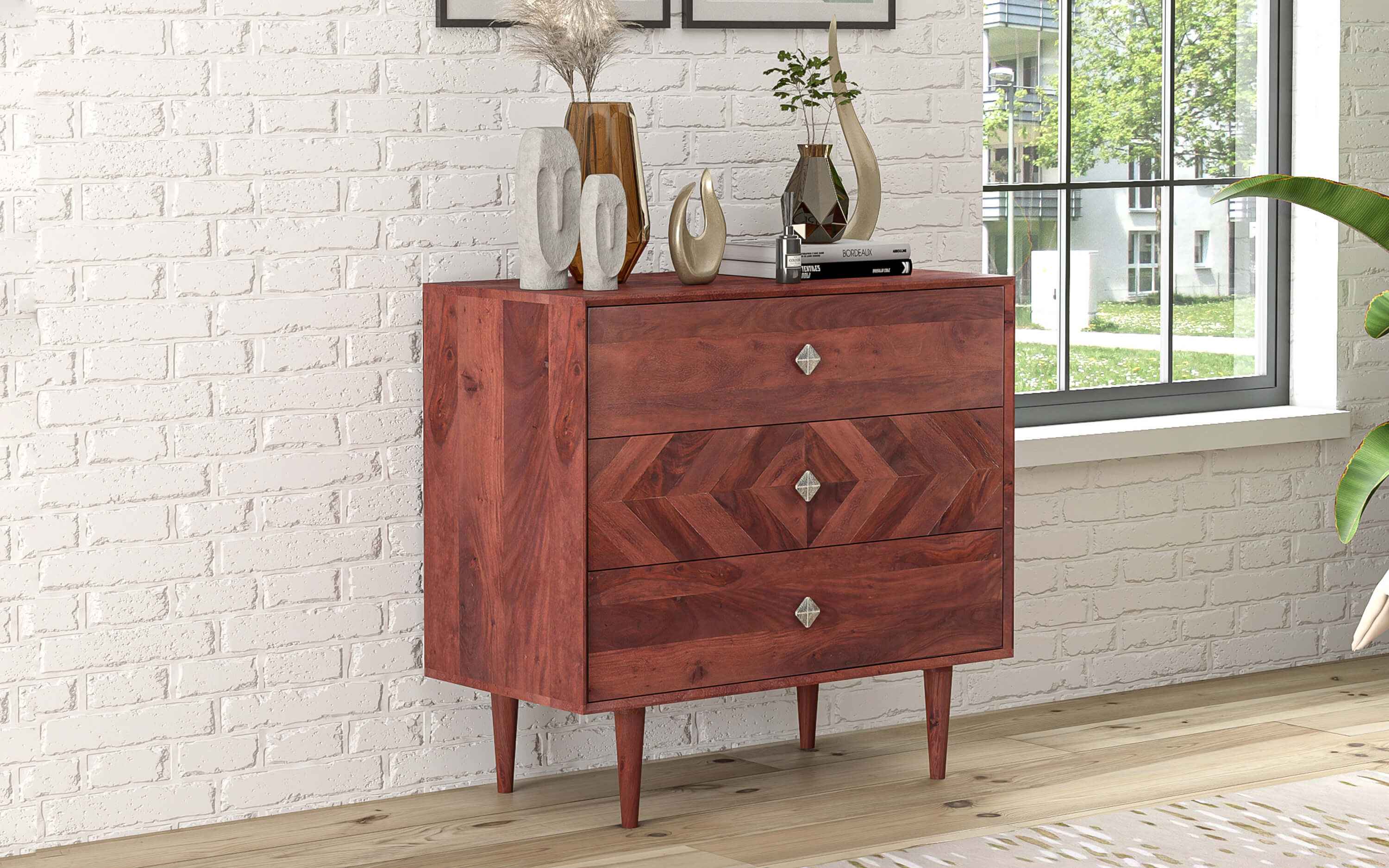 Dado collection ensues a visual treat by creating patterns using the grains of sheesham wood. The symmetry thus formed is achieved with meticulous precision. The wood used is sheesham wood with Autumn Brown finish. Taking minimalism a step ahead is Orangetree’s inspiration with this collection. The Dado Bedside Table is a beautiful, modern looking side table for a bed with a marble top that compliments any bedroom decor. With this perfect addition to your bed, you are sure to be sure to enjoy the beauty of some new furniture for your bedroom! "Depending on your screen settings and resolution on your device there may be a slight variance in fabric color and wood polish of the image and actual product. Wood grains will vary from product to product in case of solid wood furniture."