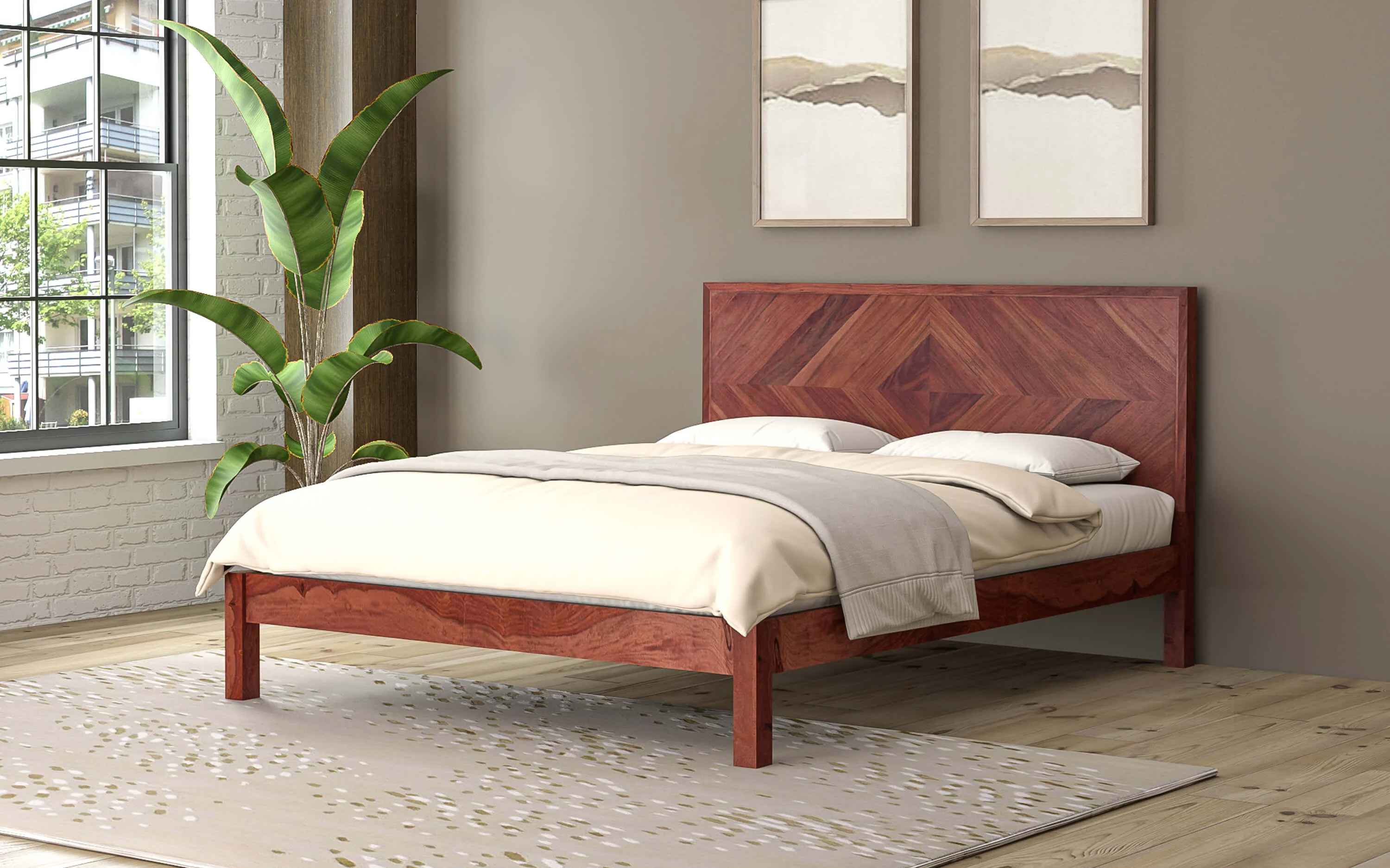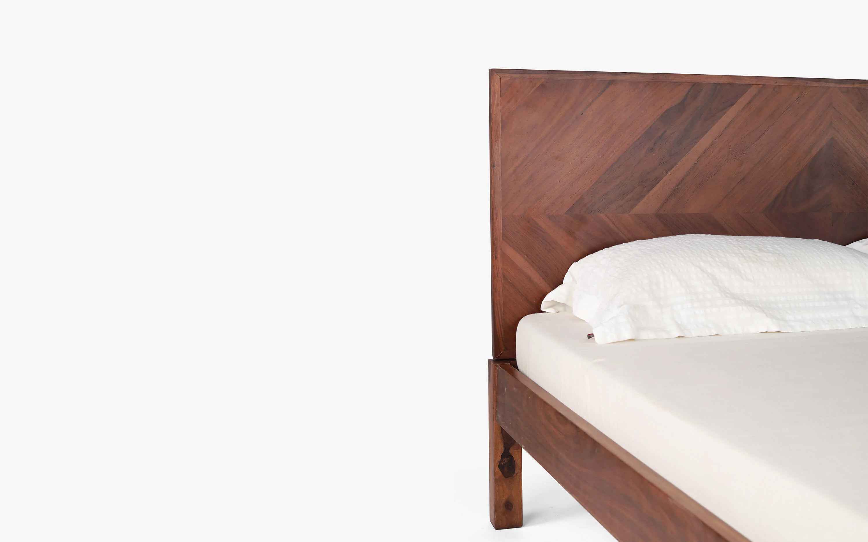 Dado collection ensues a visual treat by creating patterns using the grains of sheesham wood. The symmetry thus formed is achieved with meticulous precision. The wood used is sheesham wood with Autumn Brown finish. Taking minimalism a step ahead is Orangetree’s inspiration with this collection. No harmful chemicals or toxins are used in our furniture. Natural eco-friendly lacquers are used that helps in sustaining a healthy lifestyle. The headboard of this collection is interchangeable and can be replaced with other headboards we offer. Easy to assemble. "Depending on your screen settings and resolution on your device there may be a slight variance in fabric color and wood polish of the image and actual product. Wood grains will vary from product to product in case of solid wood furniture."