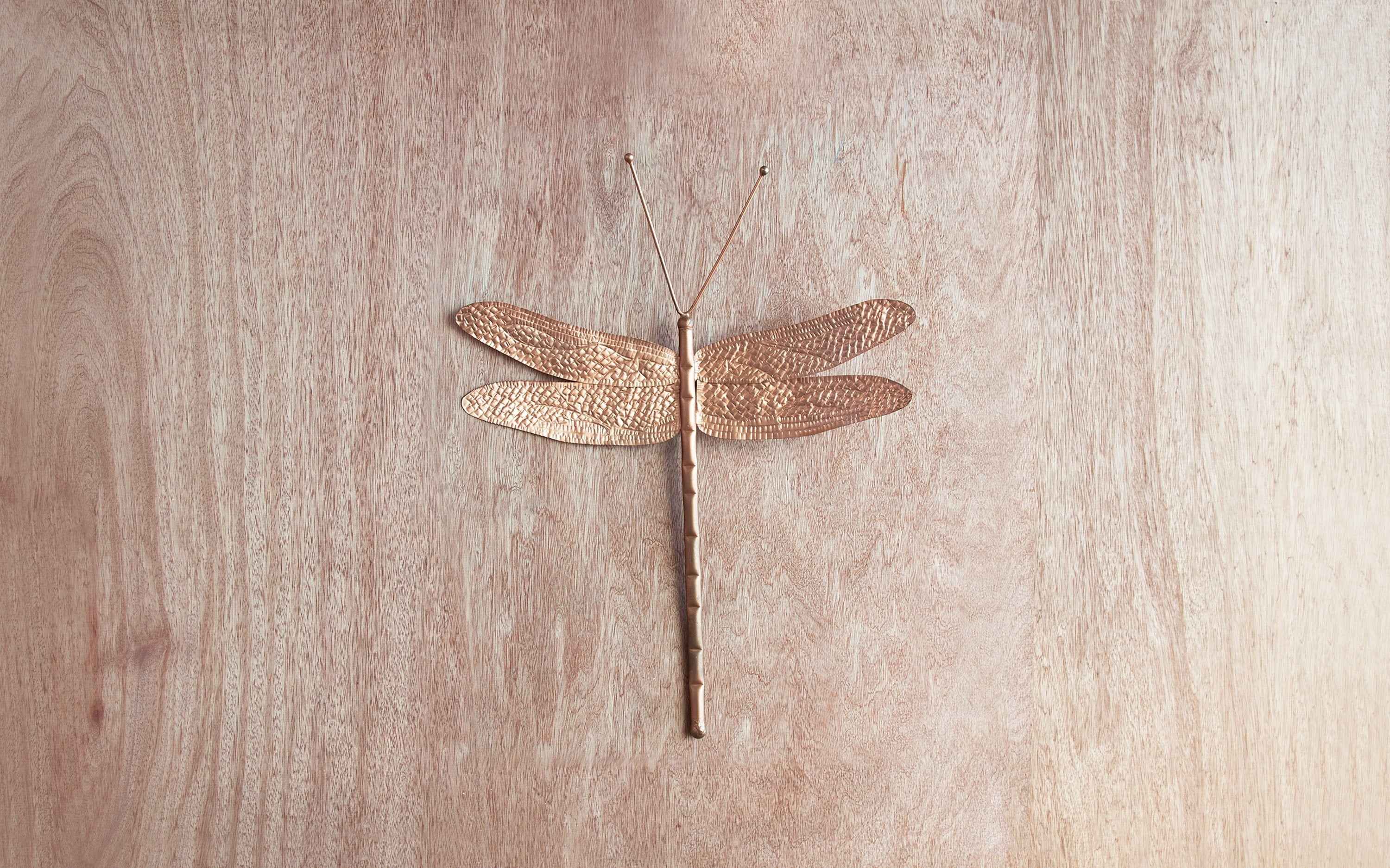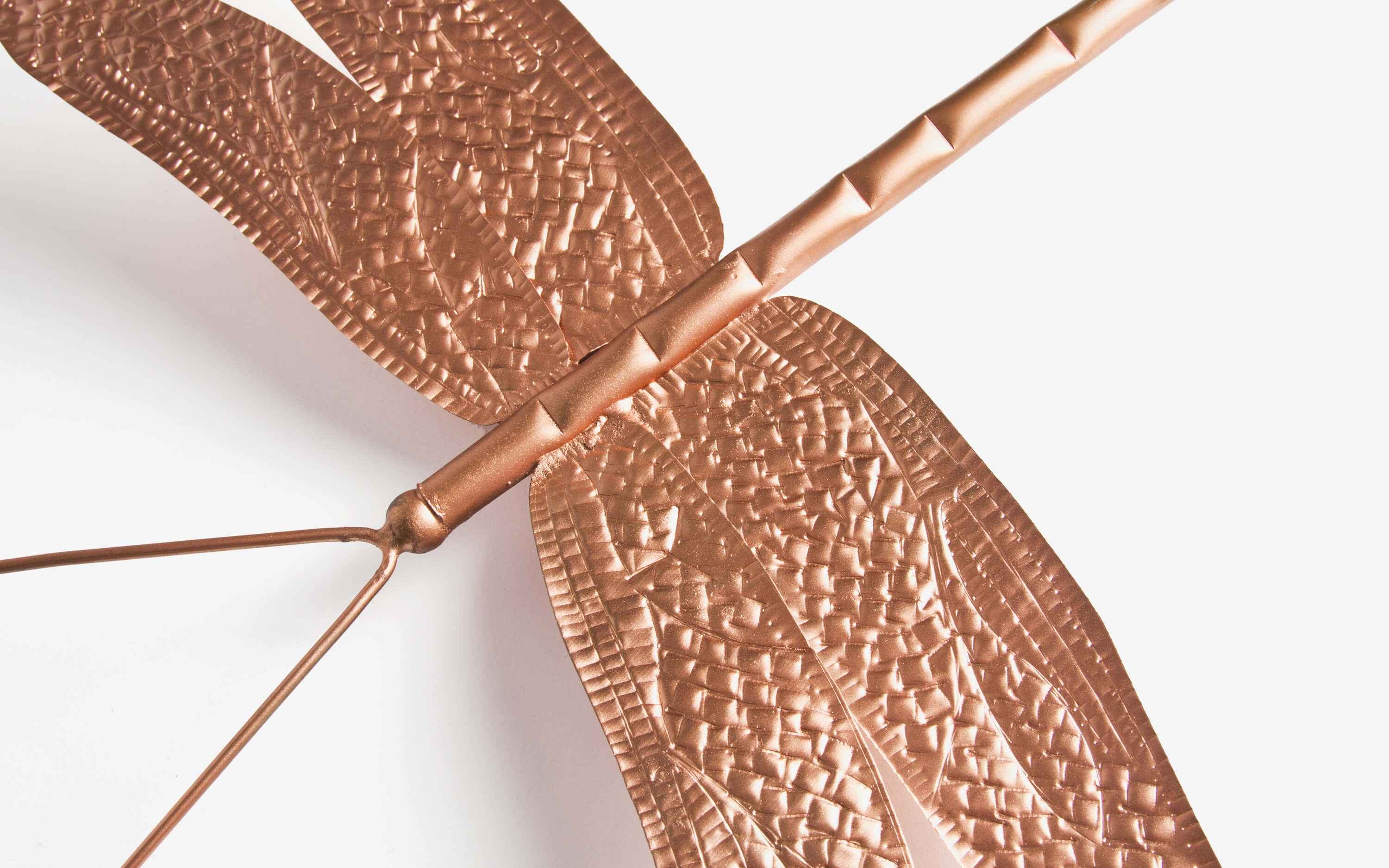 Make a dramatic statement with this Dragonfly wall décor in iron and copper finish.