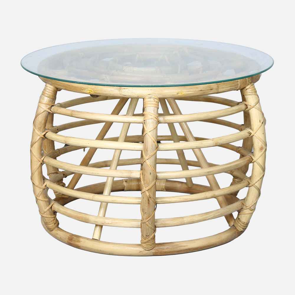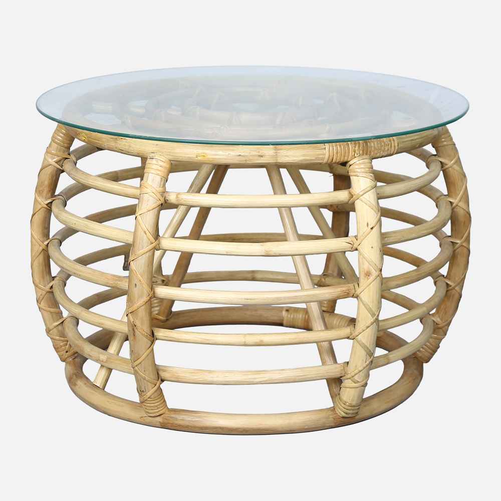 Introducing the Driftwood Delight Rattan Table, a captivating centerpiece that adds a touch of coastal charm to your living space. This round center table, expertly crafted from cane and rattan, showcases the beauty of sustainable materials. The Driftwood Delight Rattan Table is not just a piece of furniture, it's a work of art. The intricate weaving of cane and rattan creates a stunning texture that adds depth and visual interest to any room. Its natural finish evokes the feeling of a seaside retreat. With its eco-friendly design and timeless elegance, this table is the perfect addition to your home. Whether as a center table or a side table, the Driftwood Delight Rattan Table brings a sense of coastal delight to your living space. Elevate your decor with this exquisite cane and rattan masterpiece.
