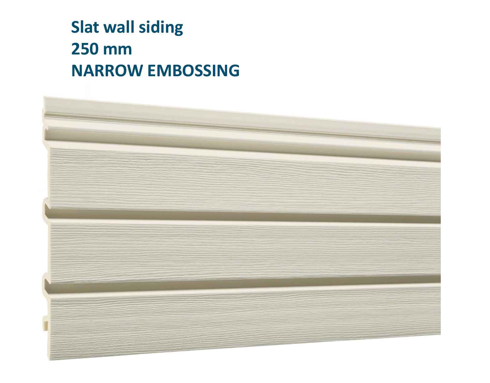 Durasid sidings are made from a durable PVC rigid foam core on top of which comes an extremely resistant, co-extruded top coat that has been given a wood grain texture. The result of using a narrow embossing on the cellular boards with a horizontal slat wall siding gives a very elegant cladding system. Benifits of hard foam PVC:- Durable, Warm & natural look, Simple to install, Easy to maintain, Perfectly impact-resistant, Facade protection & upgrade, Numerous applications, Wide range of colours and finishes. The Durasid Elegance collection comes in Slat wall siding NARROW EMBOSSING. Applications: • Renovation • Creating a new look • Playing with accents • Insulation finishing • Mobile units. With Durasid: 1) No epdm necessary behind the joiners 2) No need to mesure distance after installing the start profile 3) No extra tools needed 4) No extra treatment required on the joiners. Durasid joints can be made between the two wooden underconstruction slats: • Saves time • No waste of lengths • More natural look because the joiners aren’t in line. Durasid is maintenance friendly: • Doesn’t absorb dust • Self-cleaning • No additional treatment • No risk of peeling off. Durasid DIY package: - 4 Durasid Original single siding lengths of 2.5m (= 1.67m²) - 4 invisible joiners - Packed in shrink foil.