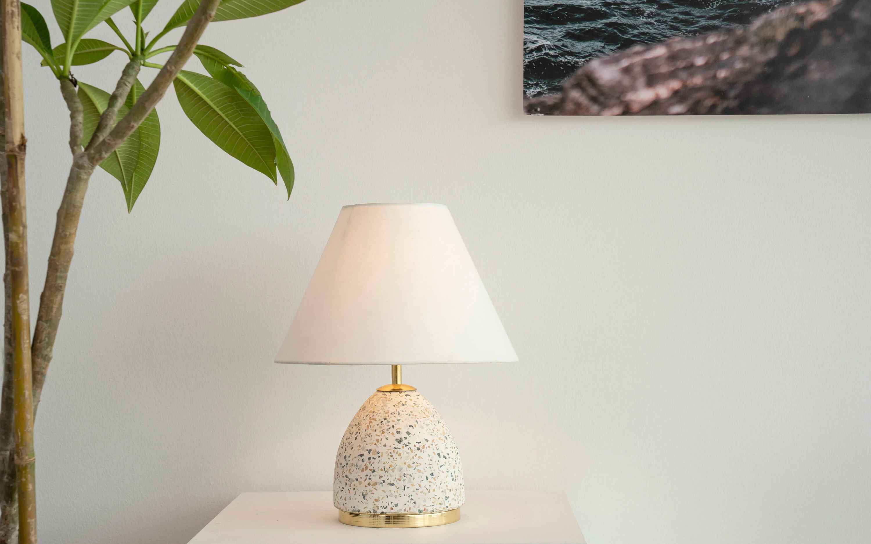 Evoke the romance and colors on the southern coast of Europe by adding our lamps to the EROS collection with a Mediterranean flair. The lamps have a relaxed, rustic feel with terrazzo in off-white and grey color reflecting the touch of the region. "Depending on your screen settings and resolution on your device there may be a slight variance in fabric color and wood polish of the image and actual product. Wood grains will vary from product to product in case of solid wood furniture."