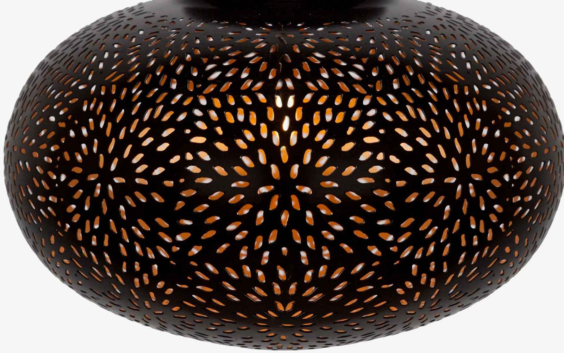 If you are a fan of hanging lamps then the Esfera hanging lamp is one artifact you must store in your shopping cart. Featuring a marvelous design of a pot shape lamp coated with the effect of cosmo and gold, this wonderful hanging lamp is a must for all lamp enthusiasts. Esfera Hanging Lamp is an ideal lighting fixture for modern and contemporary spaces. It is a metal pendant light that hangs from the ceiling. The Esfera Hanging Lamp has a black nickle finish outside and gold finish inside. It is perfect for spaces like the hallway, living room, bedroom, dining table, kitchen, balcony and outdoor spaces. The Esfera Hanging Lamp is also great for office spaces and corners. "Depending on your screen settings and resolution on your device there may be a slight variance in fabric color and wood polish of the image and actual product. Wood grains will vary from product to product in case of solid wood furniture."