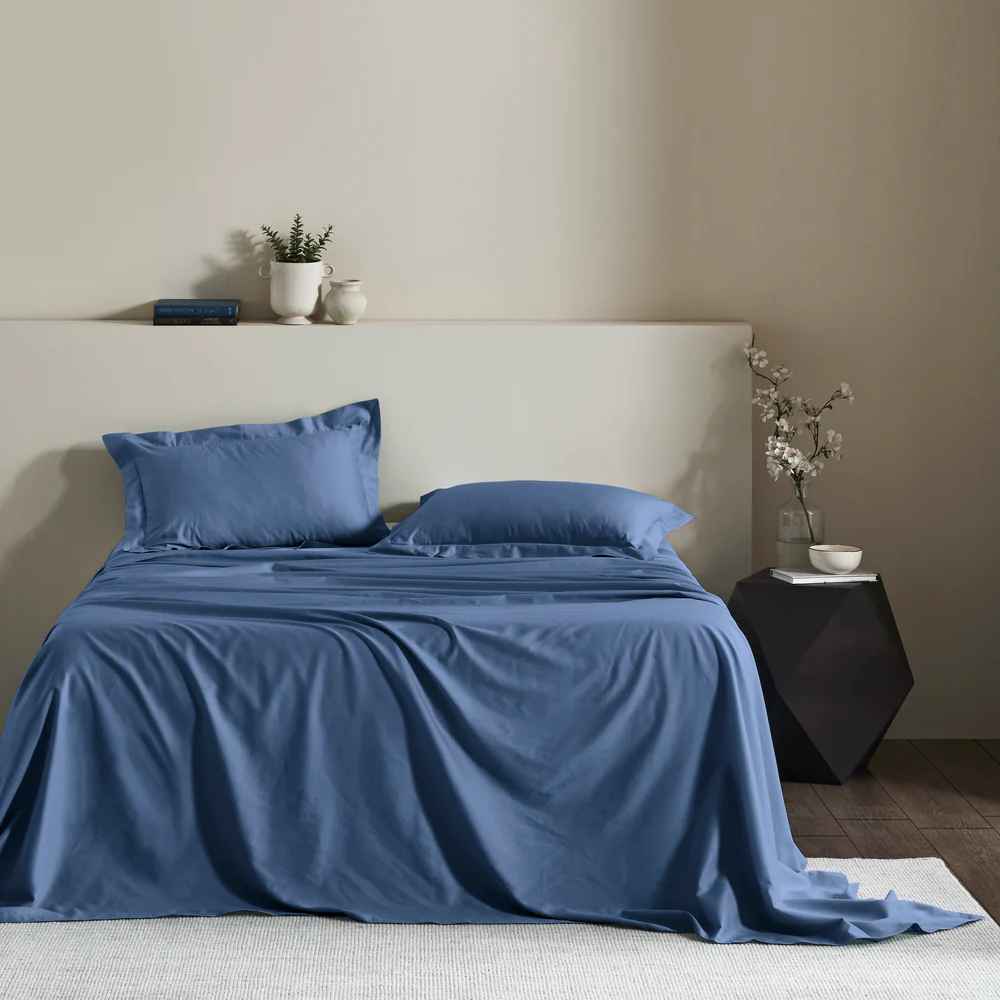 A 300 TC cotton bedsheet set with exquisite feather stitching, it shall be an exquisite addition to your bedsheet set collection.