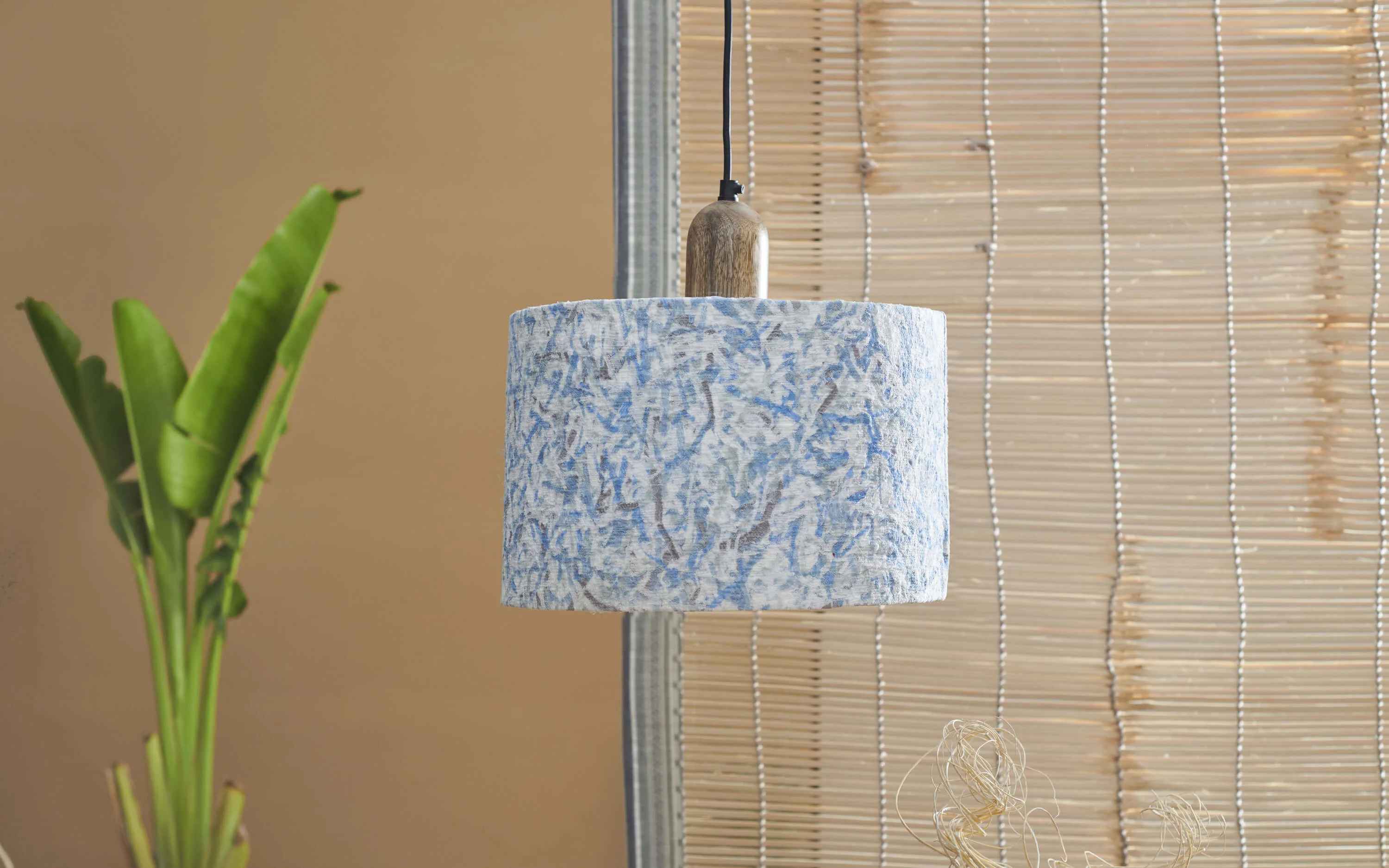Blue fabric waste upcycled (Doodlage), and mango wood