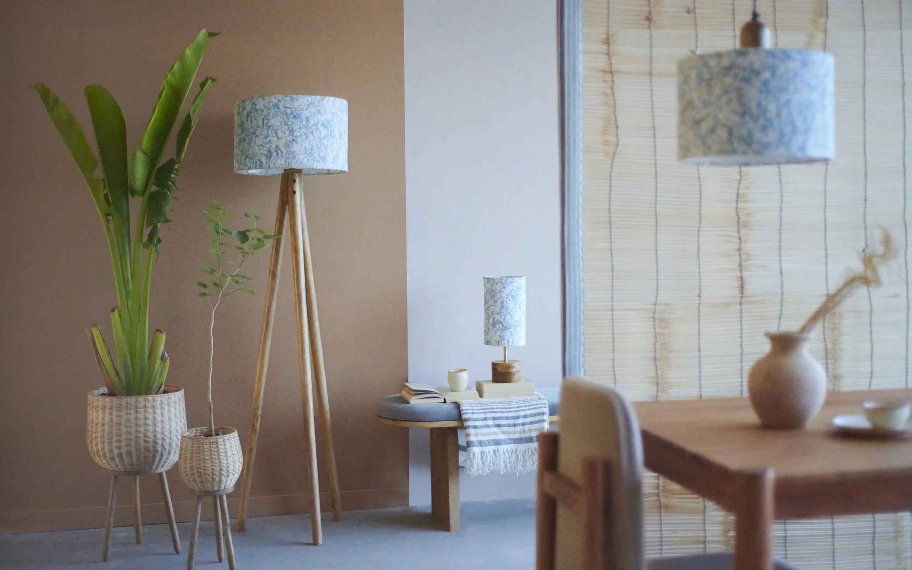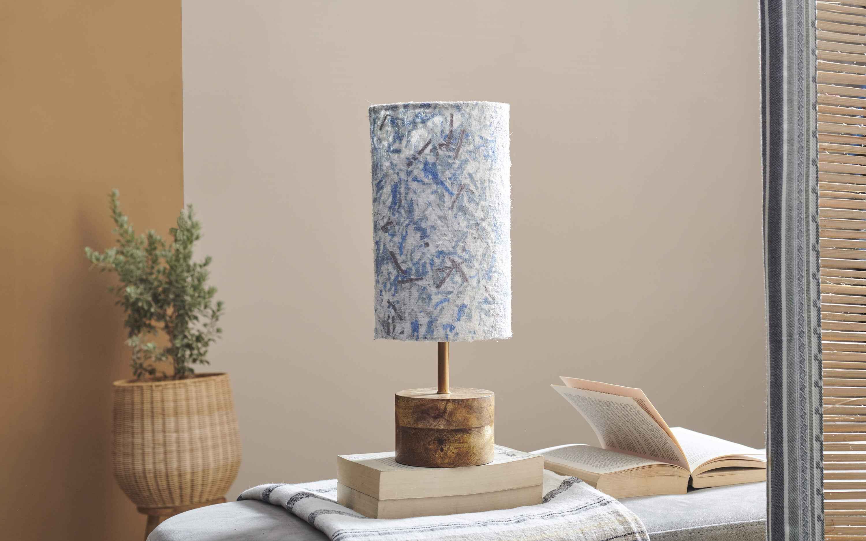 Blue fabric waste upcycled (Doodlage), and mango wood