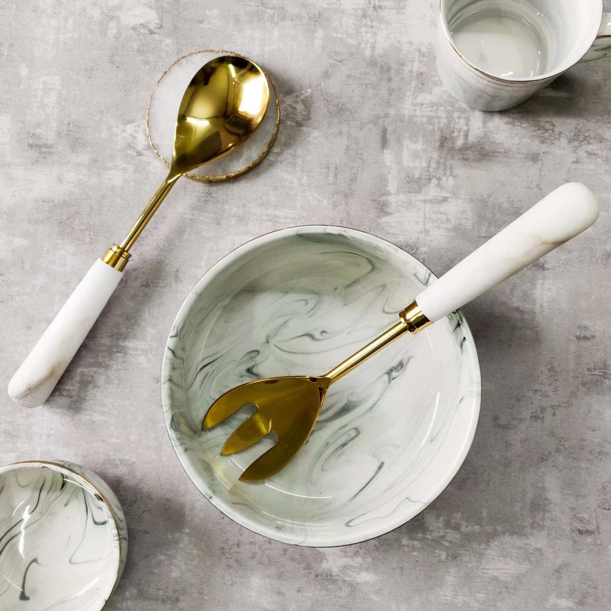 Flint Marble Serving Spoon and Spork Set
