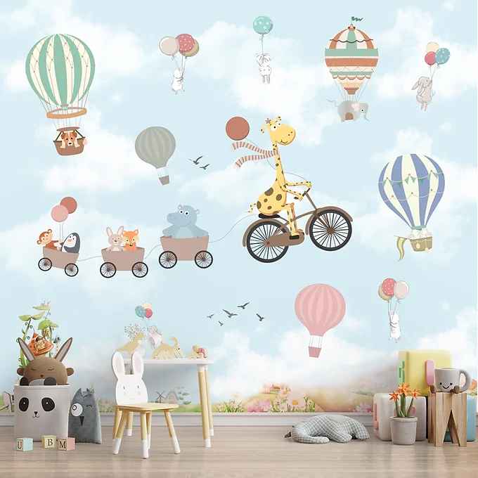 Flying Giraffe Cycle Train Wall Mural for kids Room