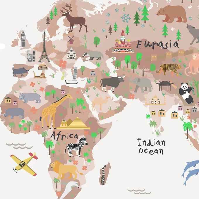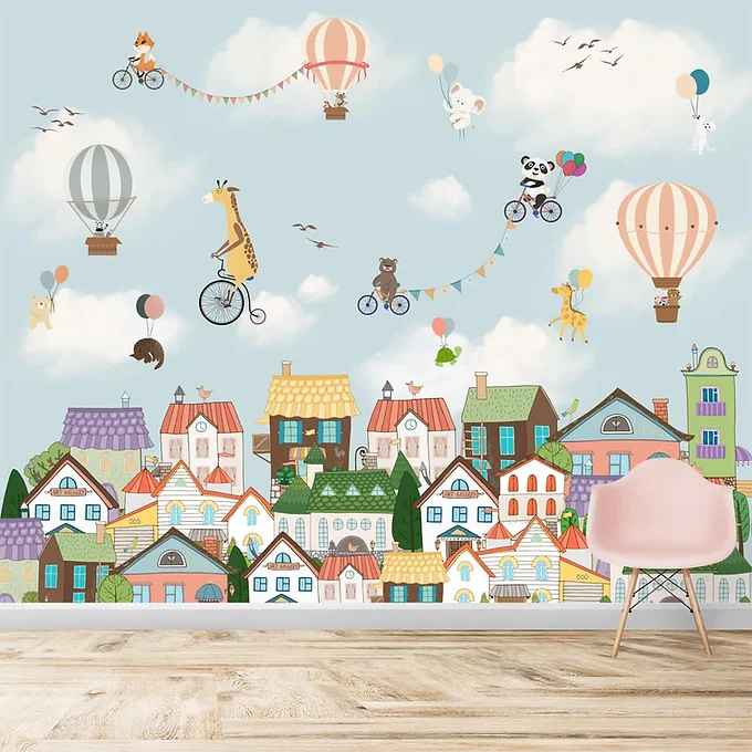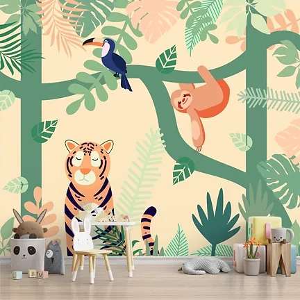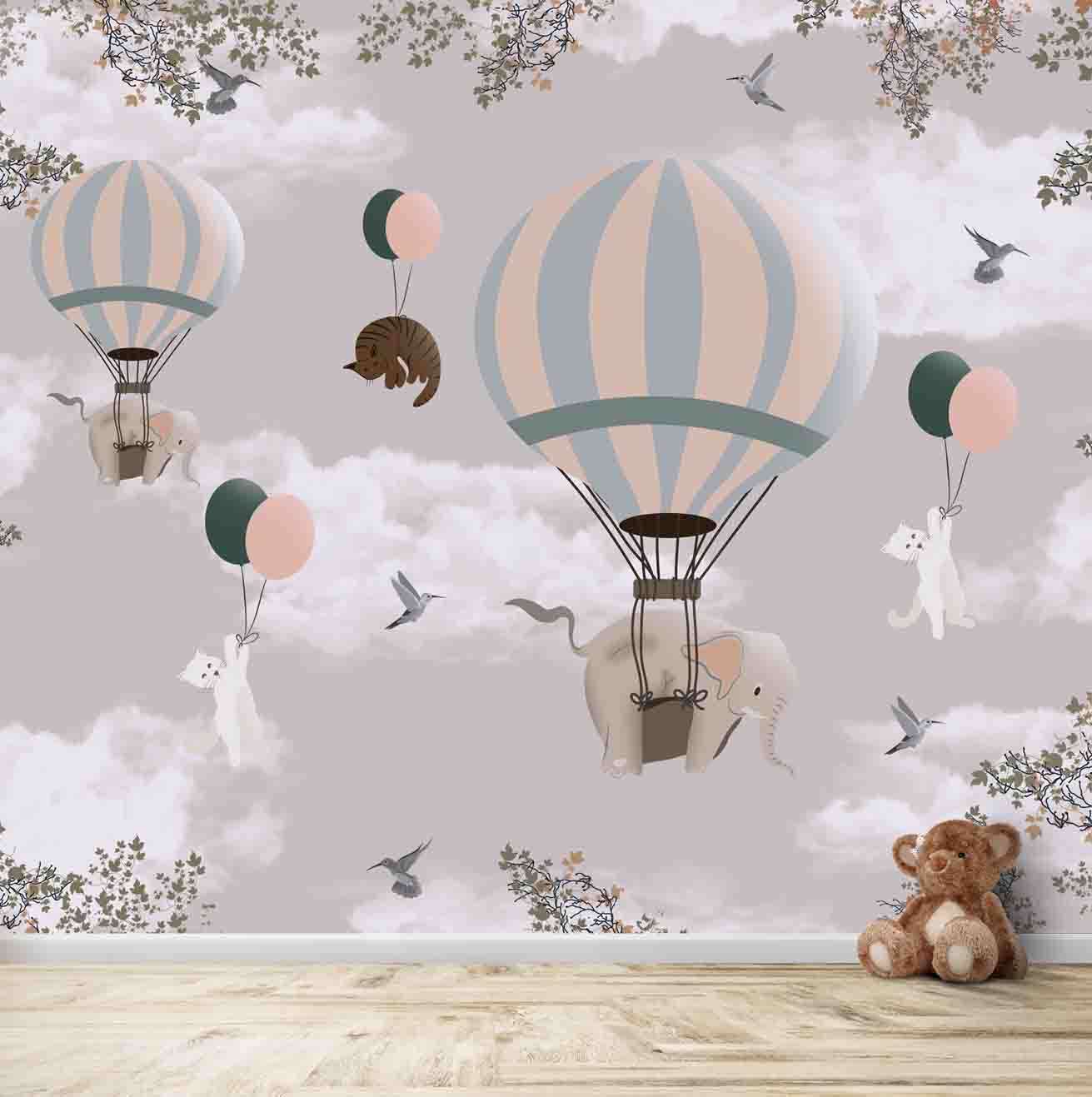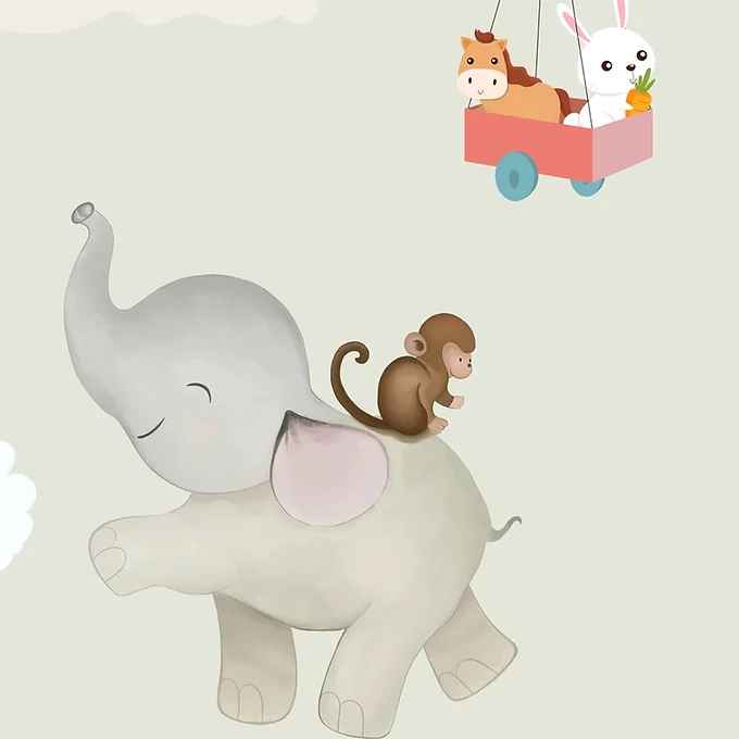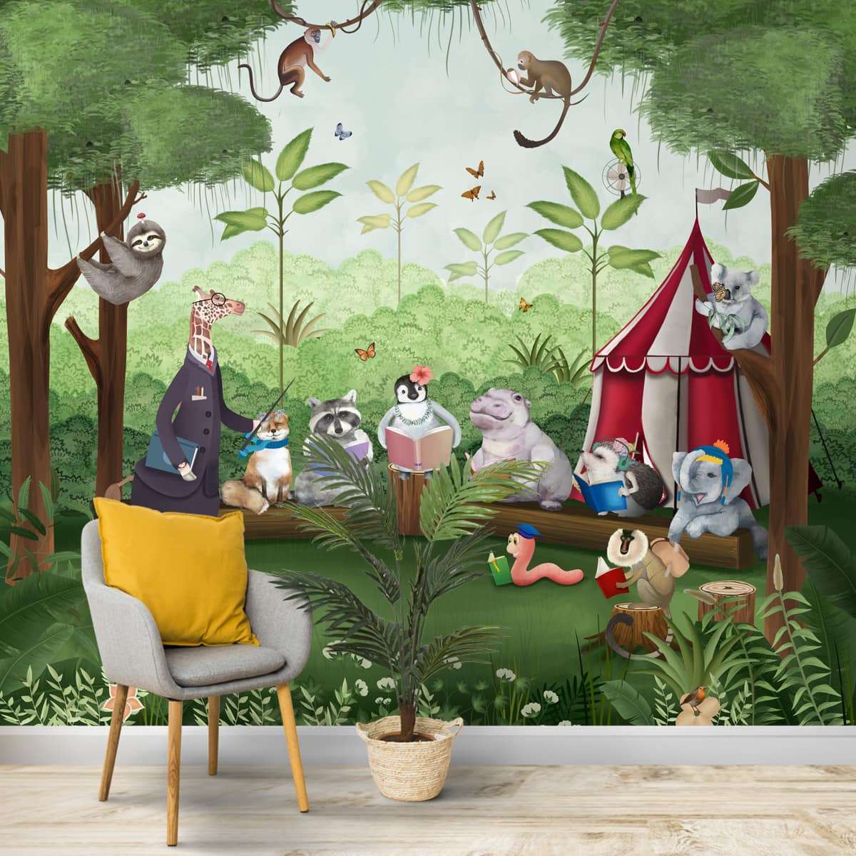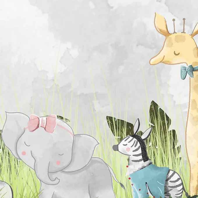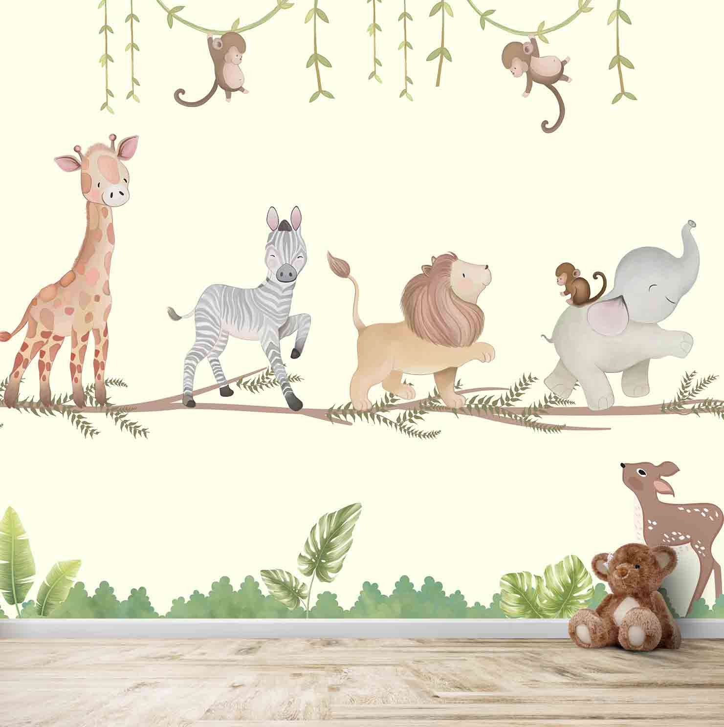 DownloadGalactic Giggles, Cute Animals Theme Kids Room Wallpaper
