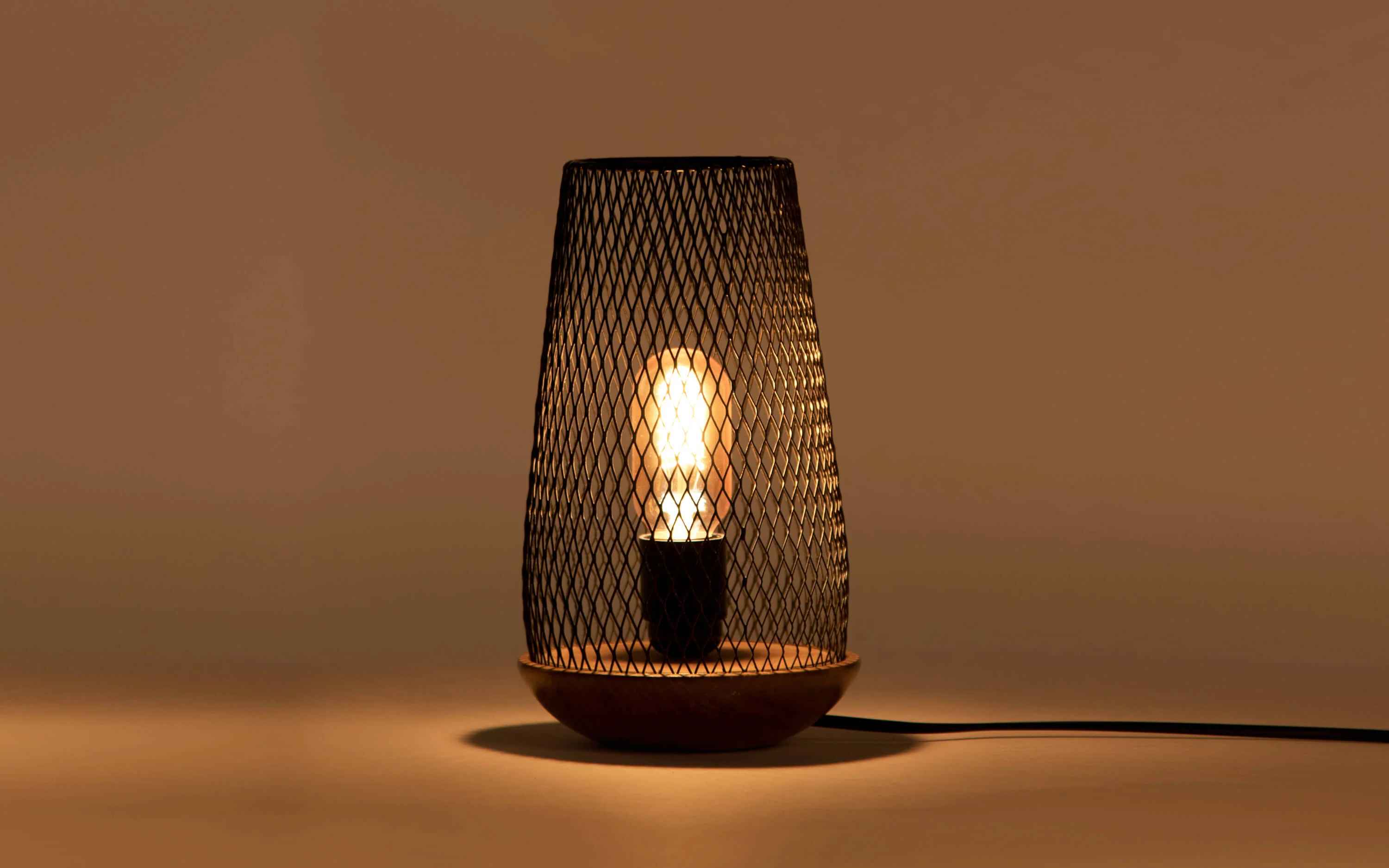 Stunning on its own, the lamp puts its wire mesh on full view when lit. Contemporary with a nod to mid-century design, the lamp is perfect for any setting.