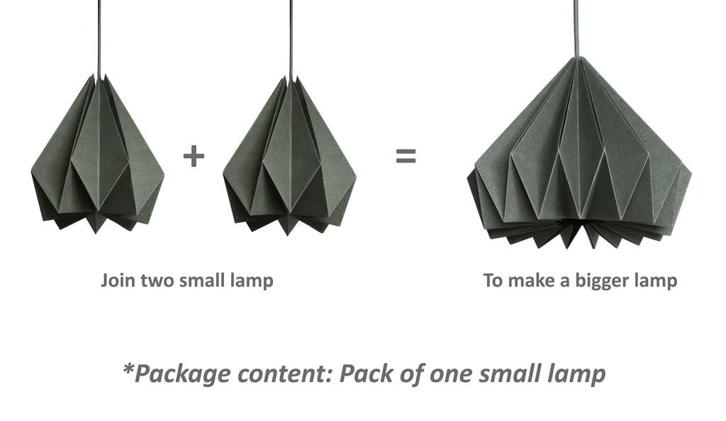 Our origami-inspired lamp has been put together using the finest quality of the paper. Each piece has been prepared with great care and exceptional craftsmanship to cater to your aesthetic needs for home decor.“All our products are handcrafted with utmost workmanship. The attention to detail and artistic brilliance that our home-trained team of differently abled people Colour: Grey Design: Plain Modular design: Join two lamps together to make a big lamp. Easy snap assembly Package content: 1 Flat Packed Paper Origami Lamp Shade Handcrafted pendant lamp shade. Can be used on any hanging light source (Bulb and holder is not included). Compatible with "LED" Light Bulb. A 9watt-3000k (warm white) LED bulb is used in the lamp shown in the image Easy assembly, Ideal for Home Decor Handcrafted by specially abled people