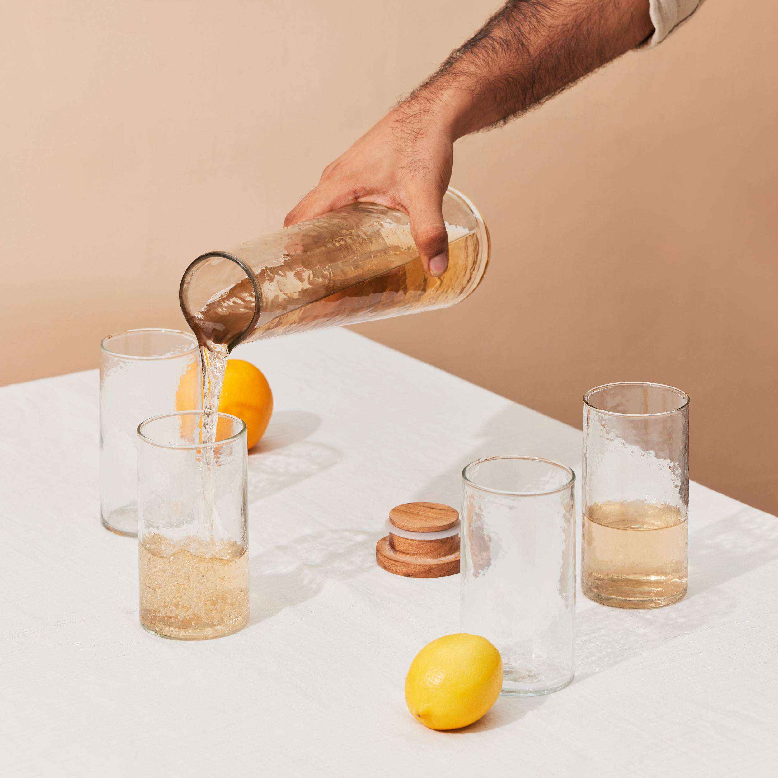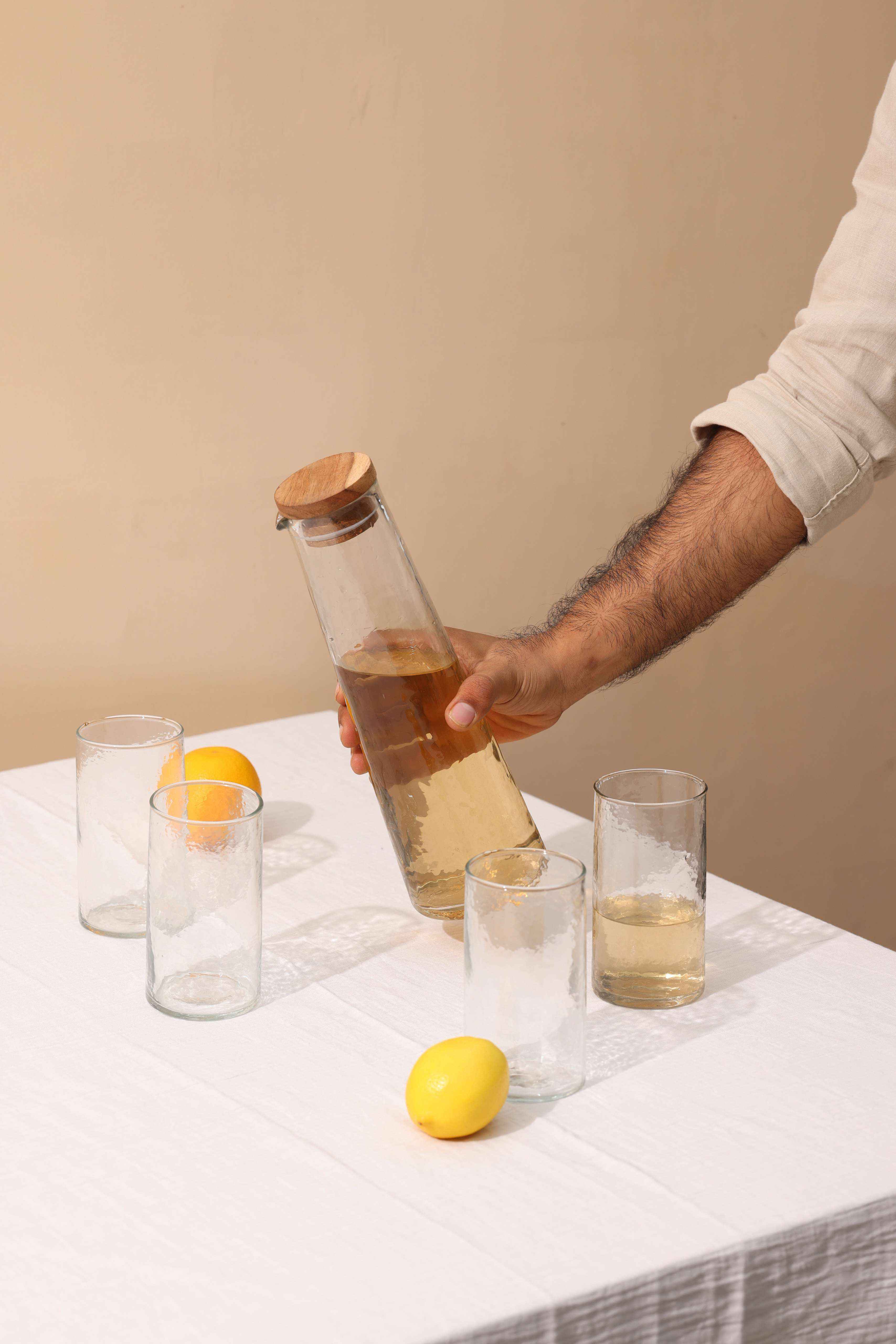 Glass is the vessel of choice for liquids as it is non toxic and does not impart any taste to water - This carafe comes with a wood lid to protect your drink from dust, insects etc