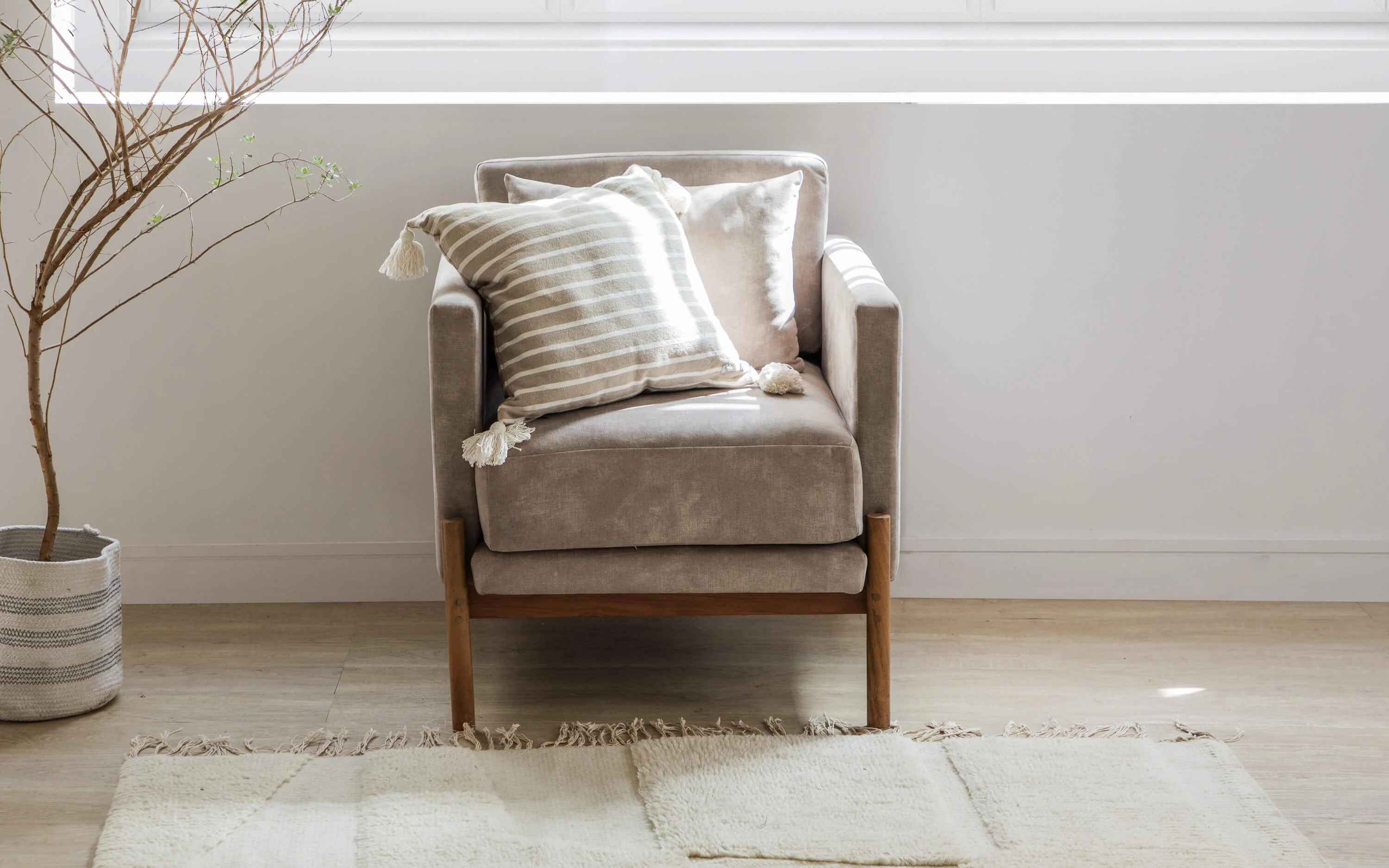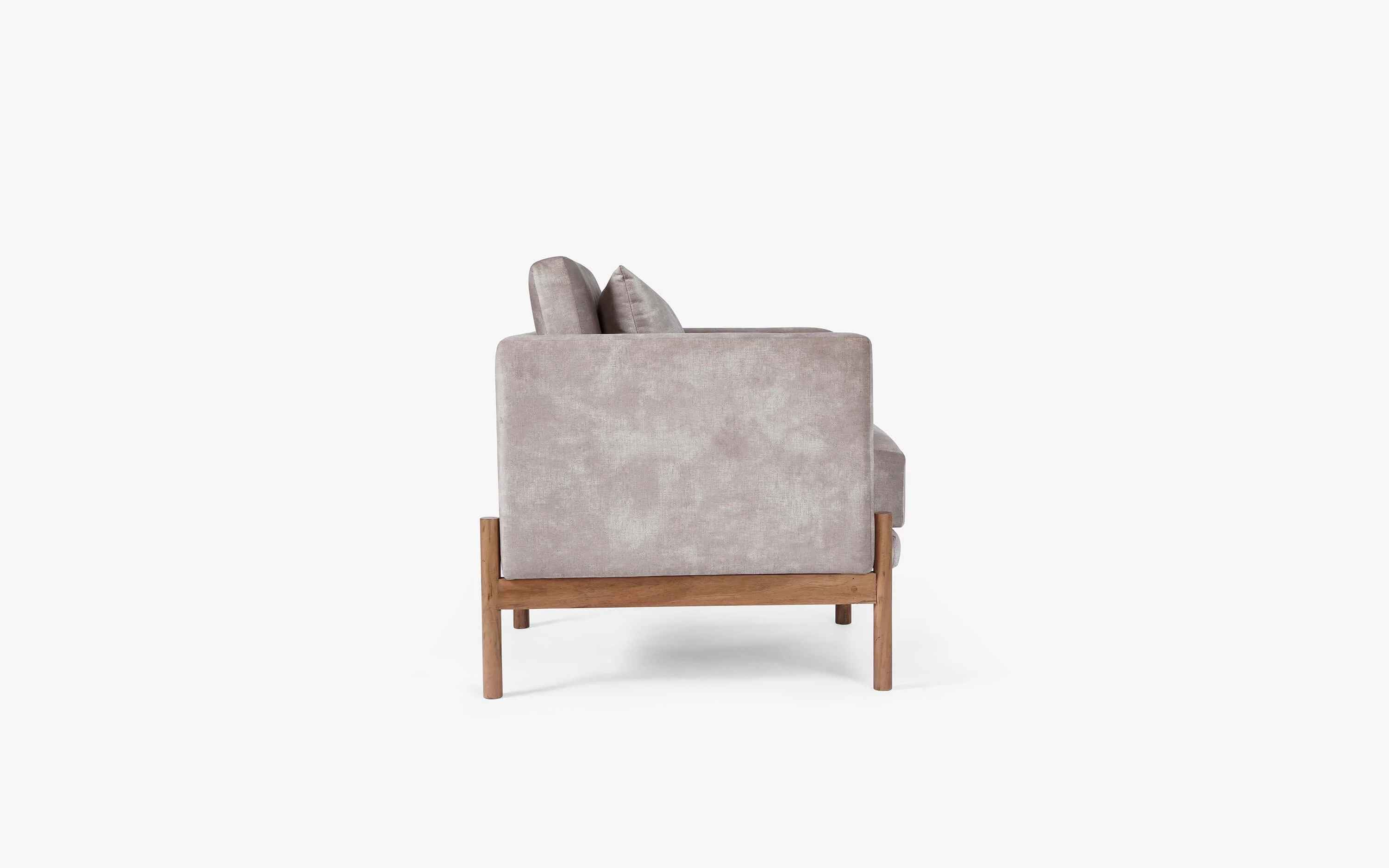 A cool single-seater sofa that revolves around comfort and cosiness. HANA is an elegant addition to our collection; its design epitomises sophisticated living effortlessly. This statement piece is designed with neat and blunt arm rests which ensures the ultimate relaxation of the body, it has beautiful beige colour cushioning for the added comfort. The structural frame of the sofa chair is made of acacia wood with natural wooden finish which gives it the internal strength it requires. "Depending on your screen settings and resolution on your device there may be a slight variance in fabric color and wood polish of the image and actual product. Wood grains will vary from product to product in case of solid wood furniture."