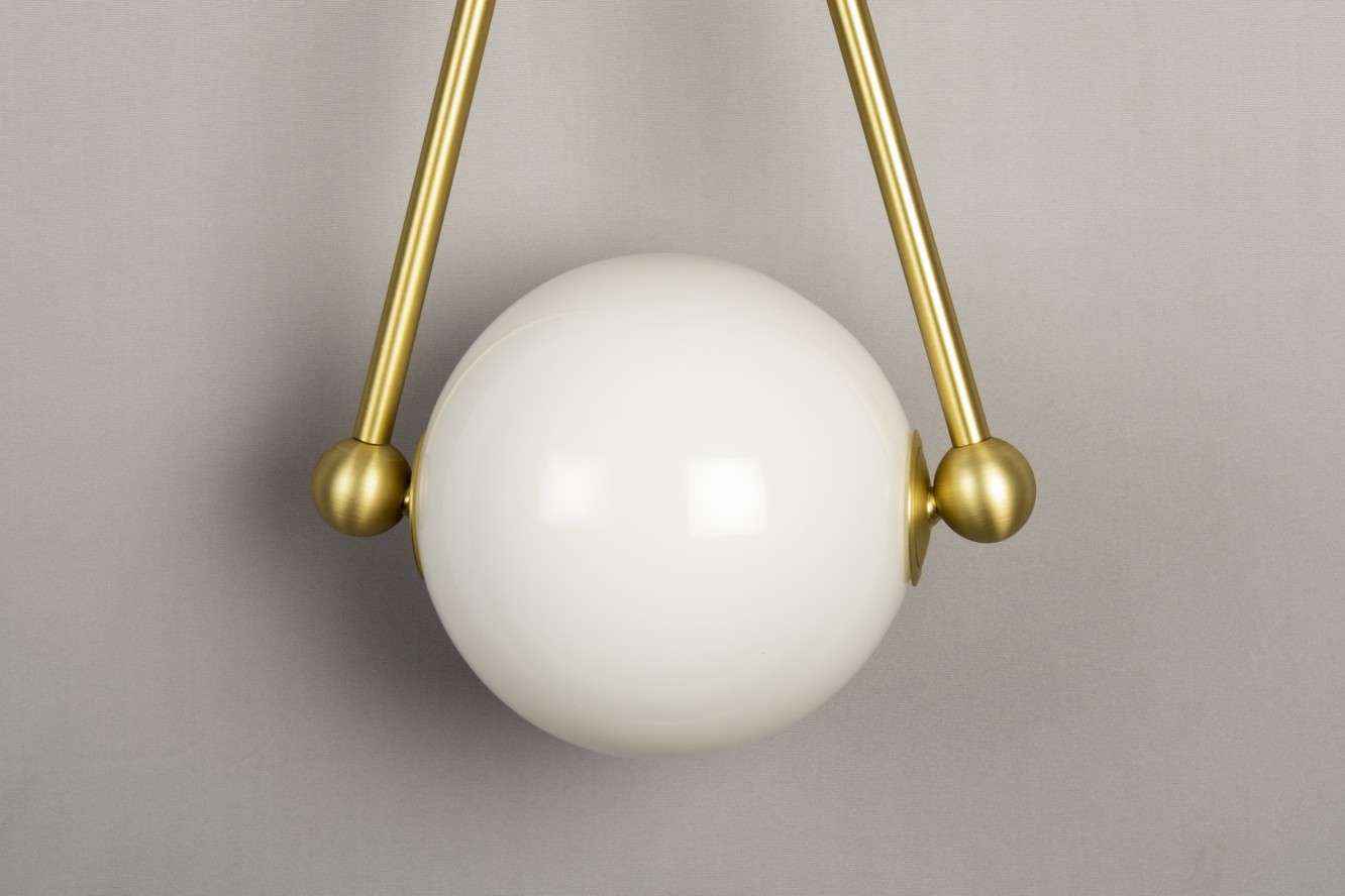 The suspended frosted glass globe creates an eye-catching look for the modern home. Antique gold finish accents are complemented by its black finish backplate. Add this piece to any living area or hallway for timeless and chic style.