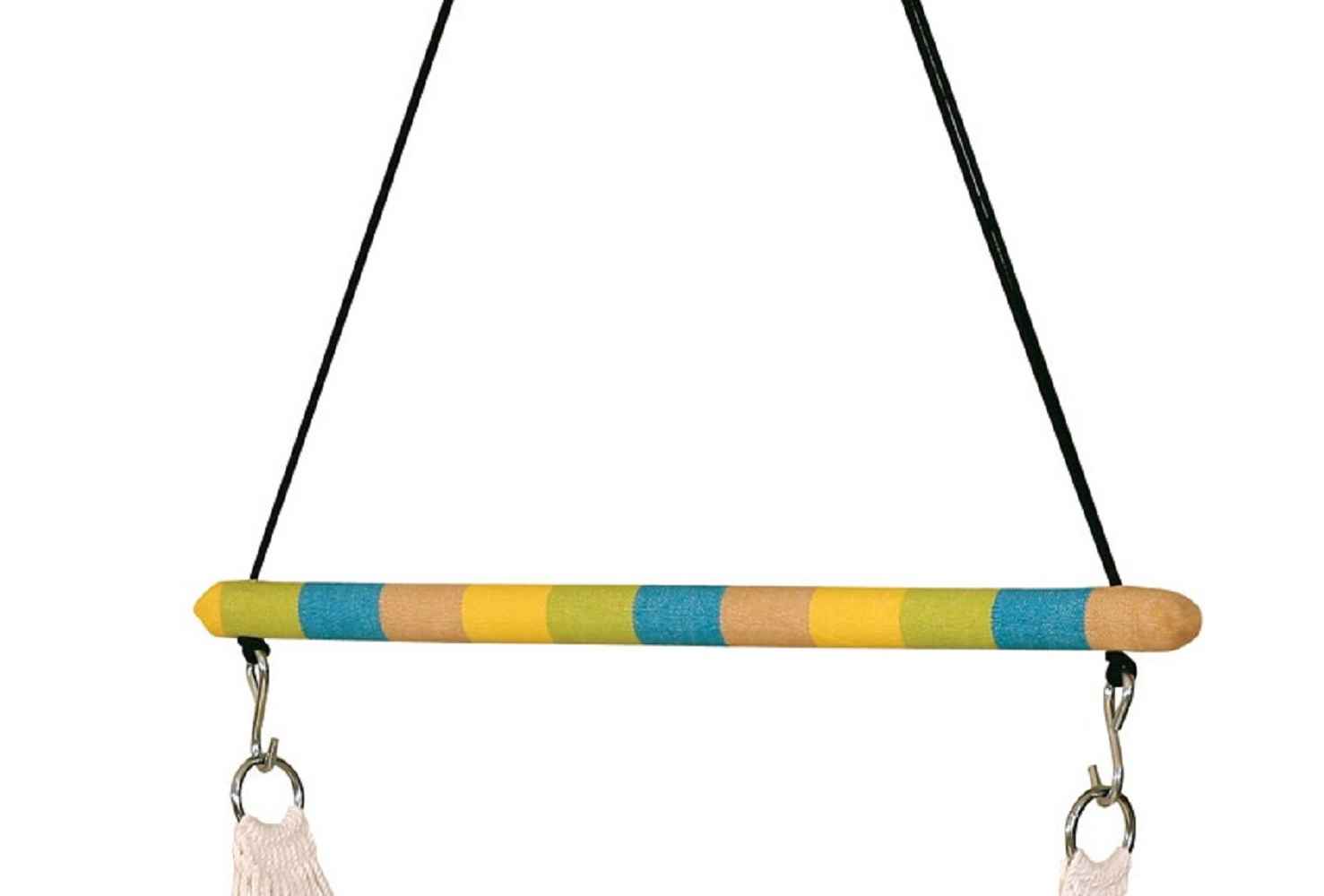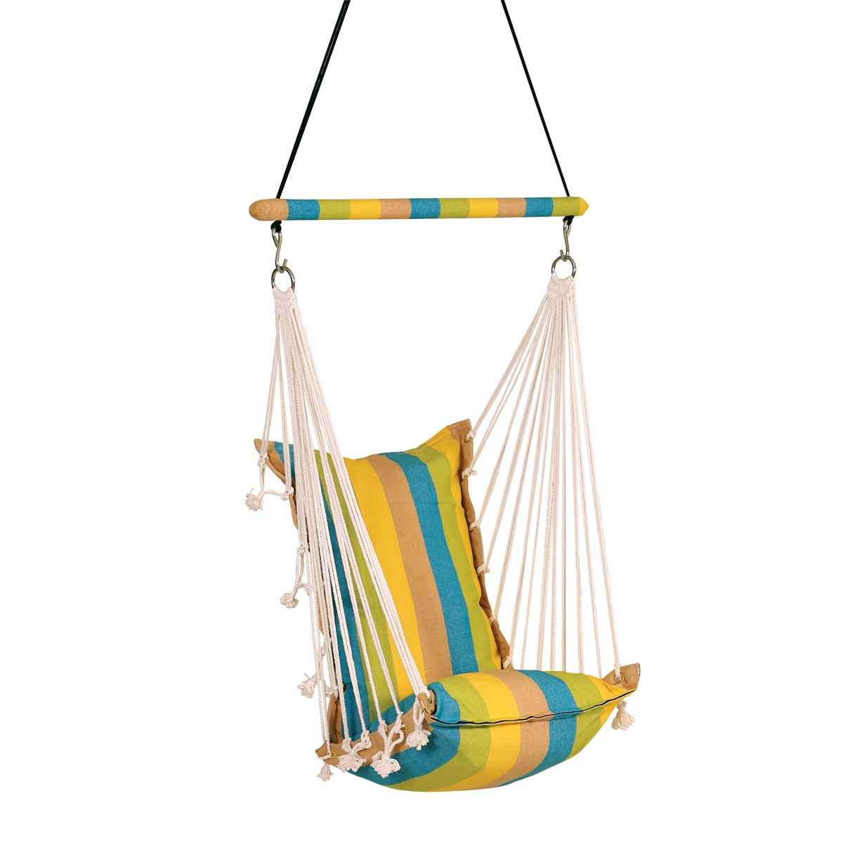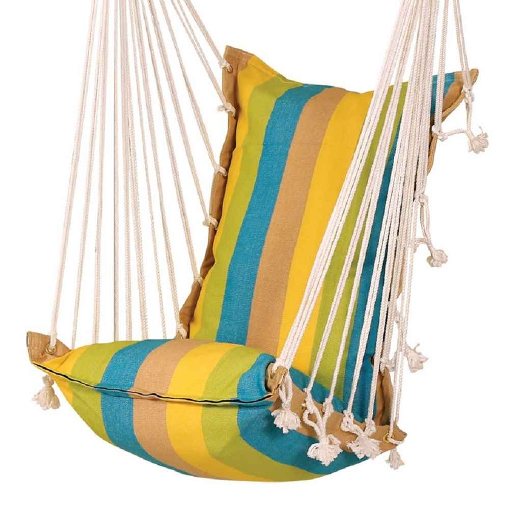 Single Premium calypso Jumbo Hammock Swing chair. Made out of 100 percent Cotton YD Woven fabric, UV resistant ropes and round hardwood spreader bar. Swing filled with heavy loaded poly fibers. This premium hammock hanging swing chair is jumbo and high in comfort. Can be mounted on any ceiling, wood or cement. Comes in an attractive striped pattern matching the outdoor colors. It withstands a total weight capacity of nothing less than 115 KG and is apt for a single person use, for adults and children / kids and can be used in balcony, home, home indoor, home outdoor, living room. This jumbo swing is better than a conventional swing. Our brand ‘’Hangit Hammocks’’ motto is ‘’Work Hard. Relax.’’ All the hammocks and swing chairs that are made under the brand ‘’Hangit’’ is the sole ownership of THE OAKTREE FURNITURE. Hangit Hammocks not only opens up a great world of joy and relaxation for the guest but it directly empowers the artisans of South India who are expert weavers and handcrafters for generations. ‘’Hangit’’ opens up a portal or doorway that connects these long-forgotten traditional artisans cum expert weavers to not just India but to the world. It gives them great joy that finally their art has got its due voice that purely justifies the spirit of 4 Hs - hard work, harmony, honesty and happiness.