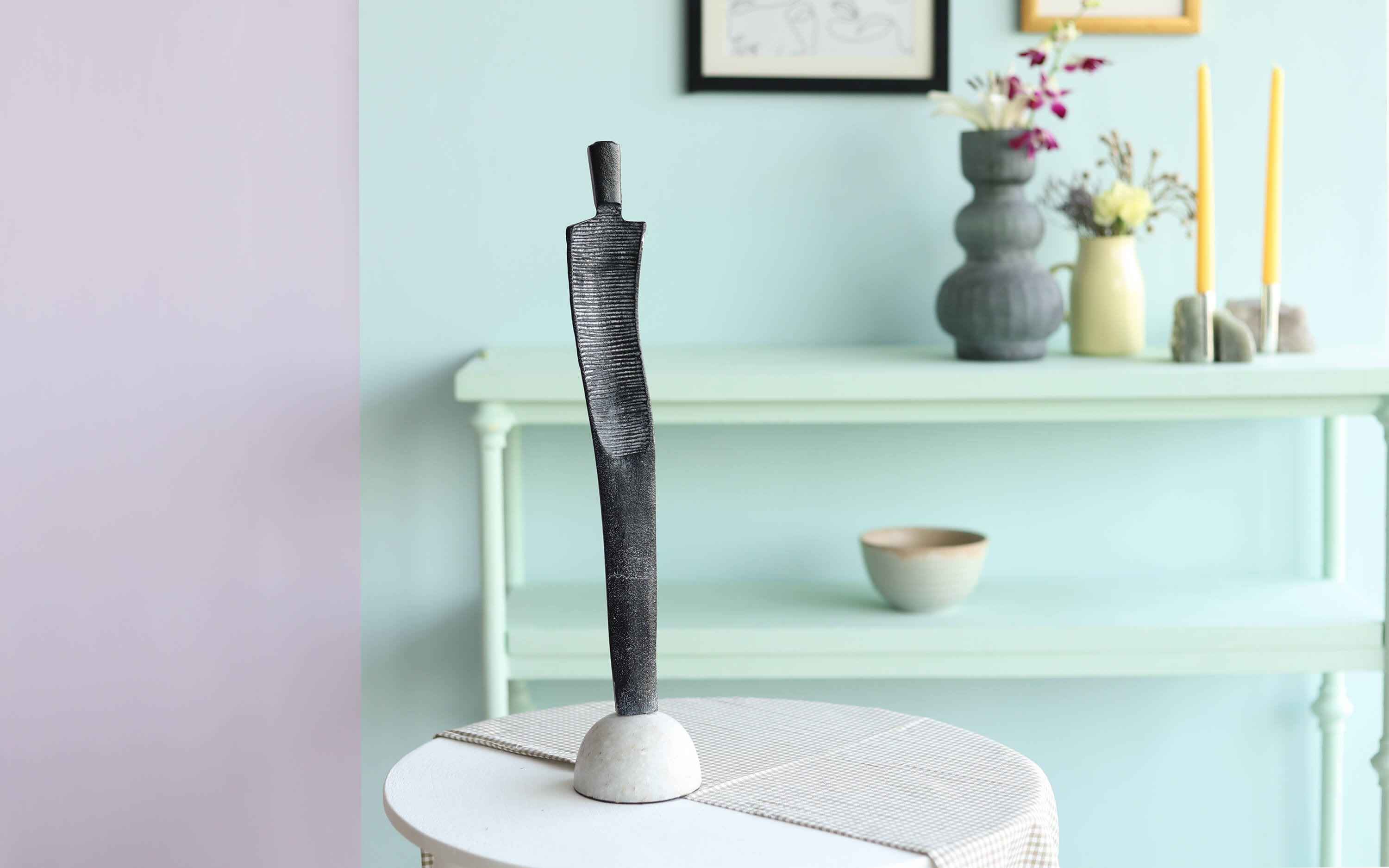 Add our standing human figurine to your decor, this figurine can be displayed on the side table or used as a paper weight on your desk. The human figurine is crafted from aluminum with a black textured finish. "Depending on your screen settings and resolution on your device there may be a slight variance in fabric color and wood polish of the image and actual product. Wood grains will vary from product to product in case of solid wood furniture."