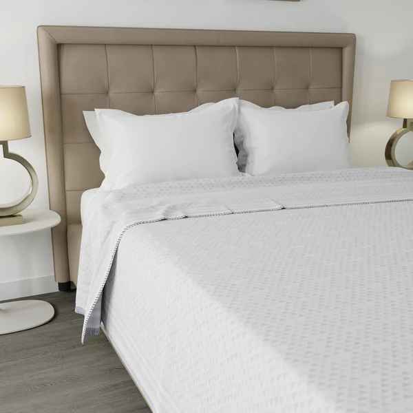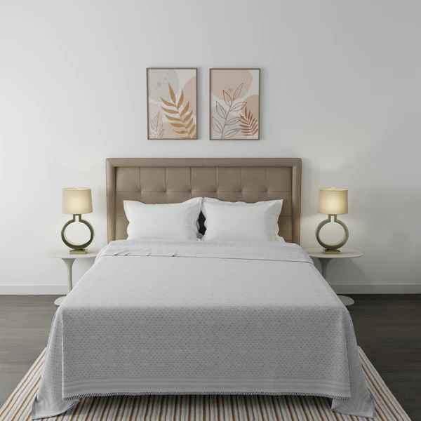 Soft, minimalist hues of blue and grey make this beautiful summer blanket a must-have for your bedroom.