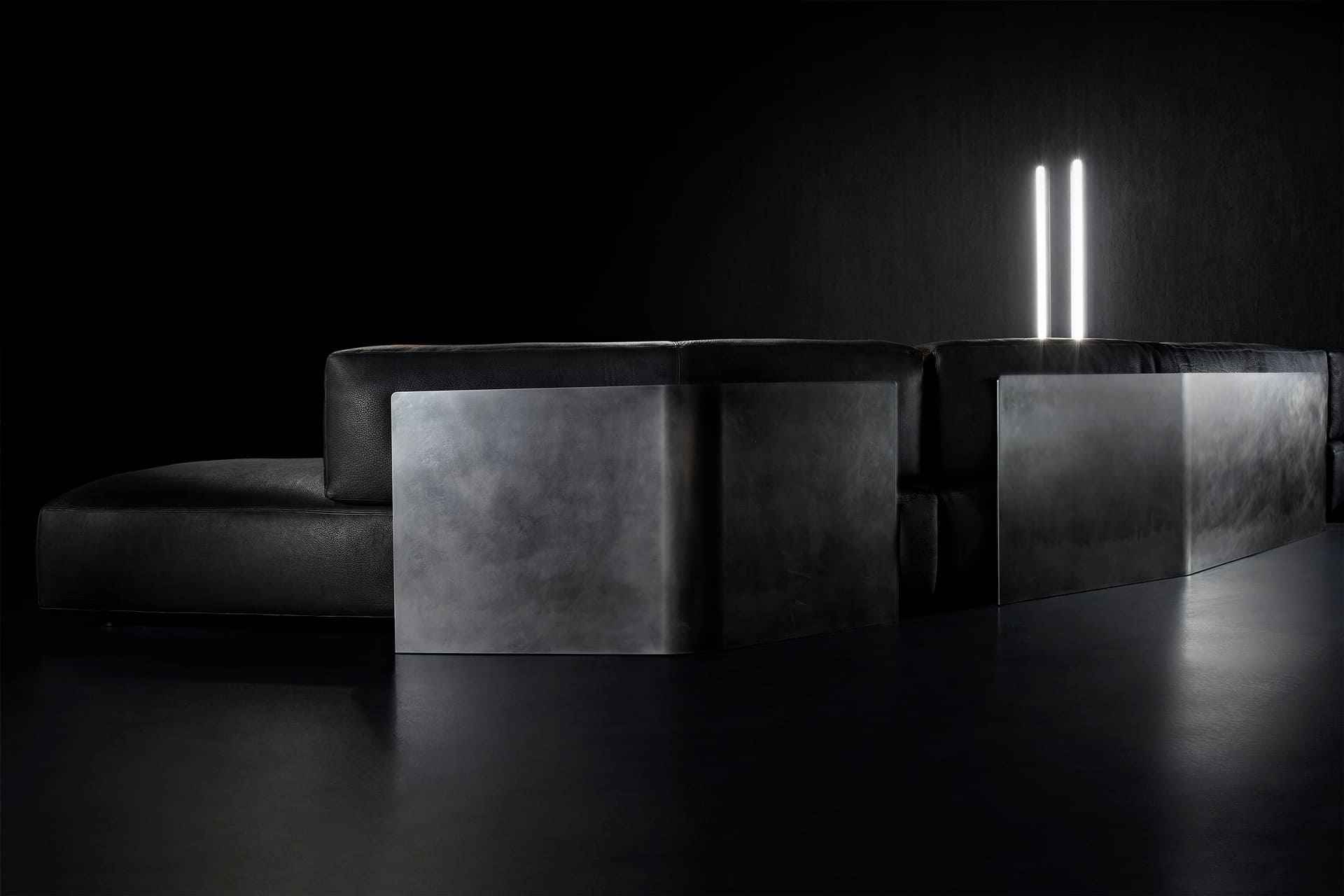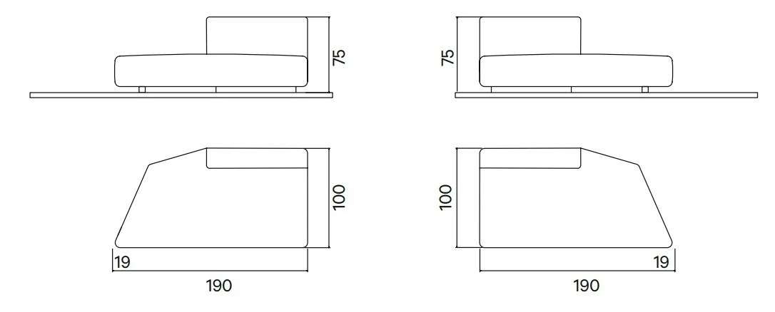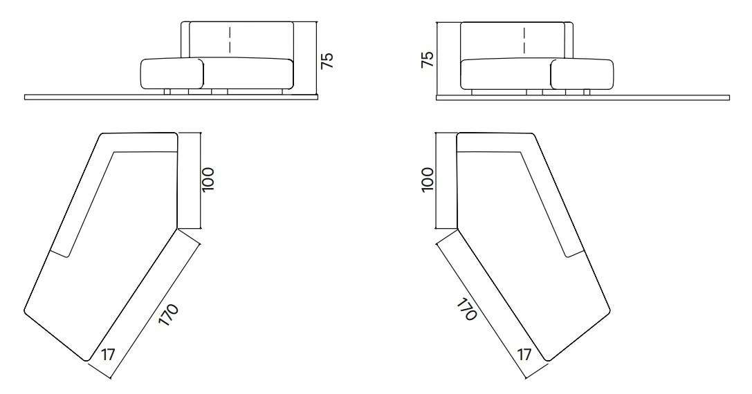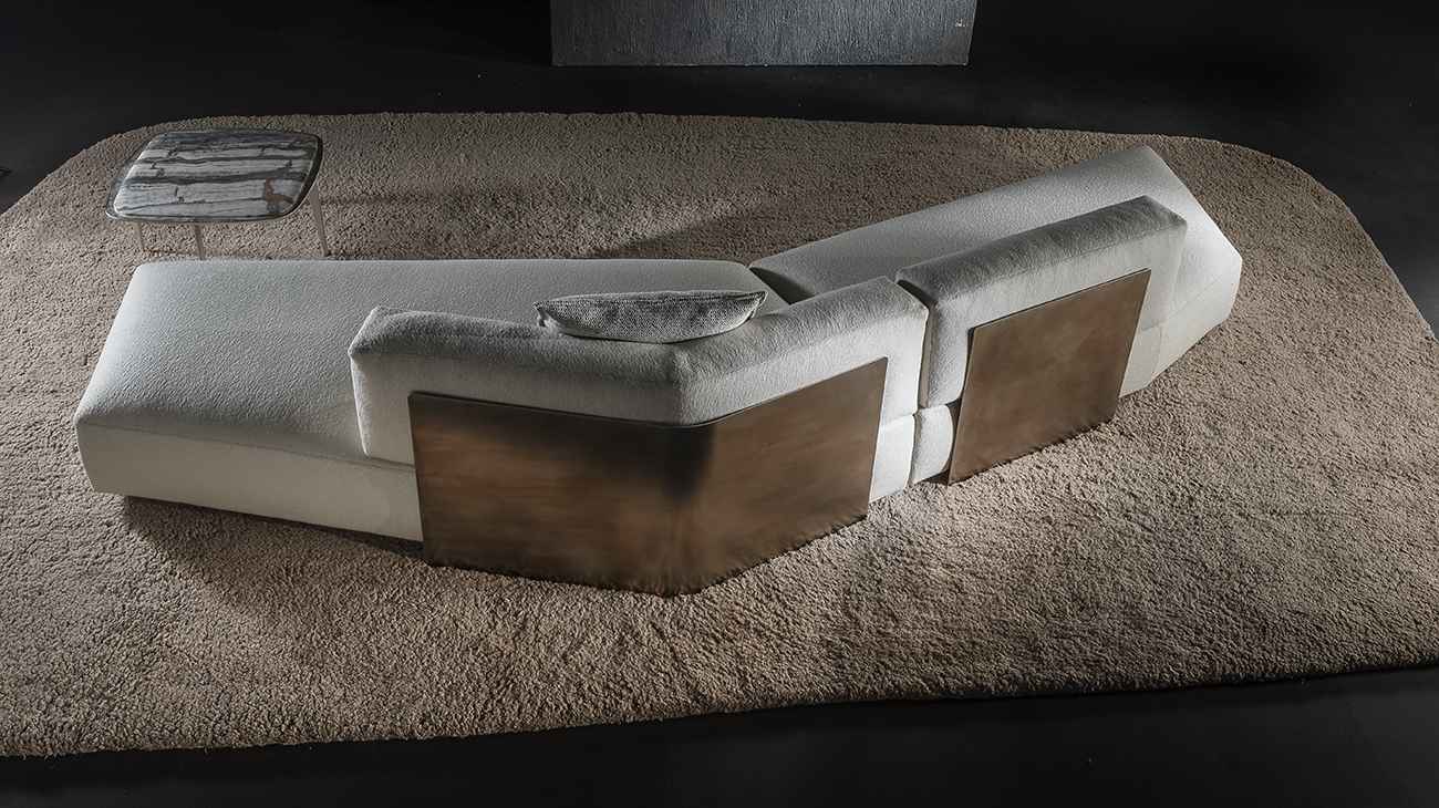 Solid wood padded with polyurethane foam, covered with 100% goose down, internal cover in 100% white cotton lining. Seat cushion with high re-silience polyurethane foam PF45FR and memory foam, covered with 100% quilted goose down (Assopiuma certified Gold Label), with high density (SR75) structural internal support. Internal cover in 100% white cotton. Metal backrest support.