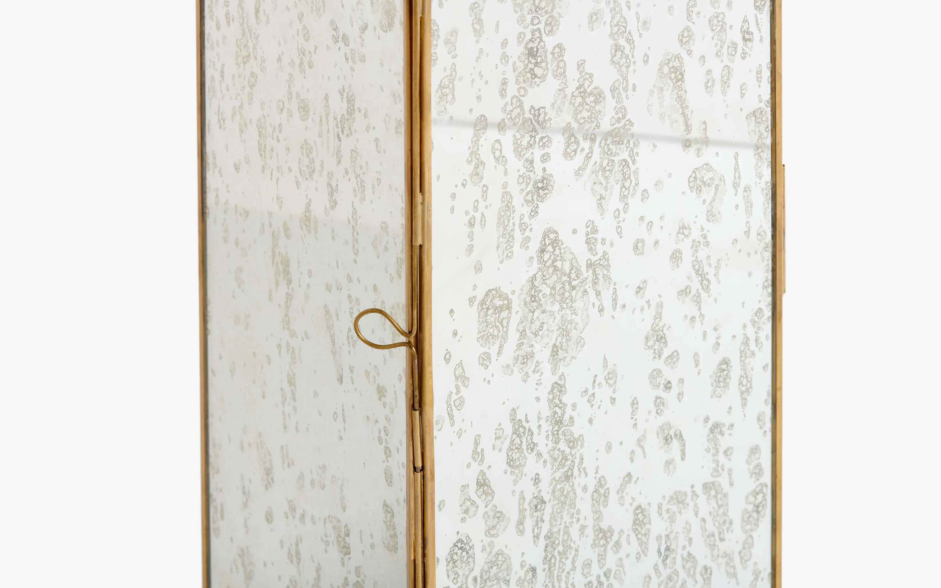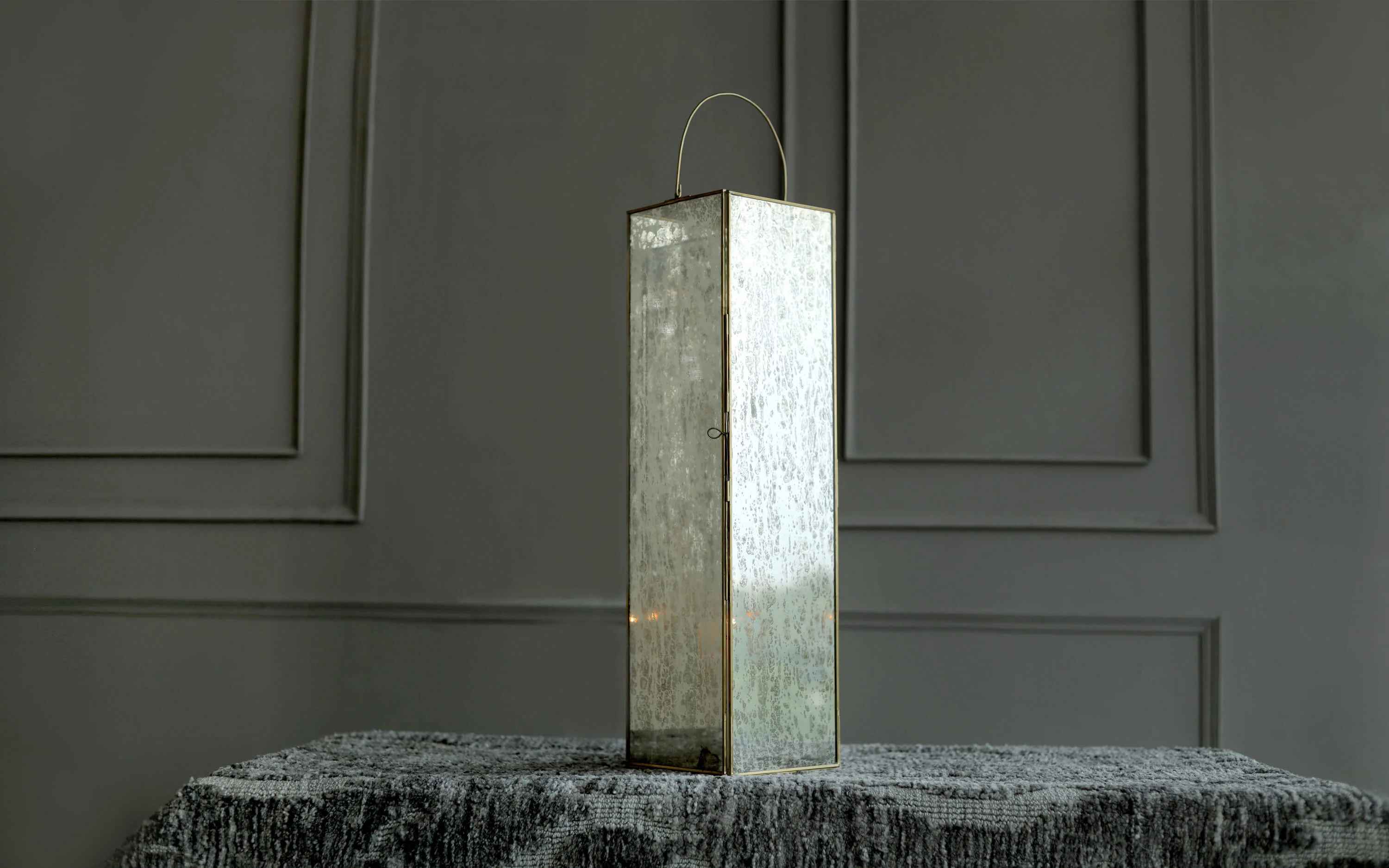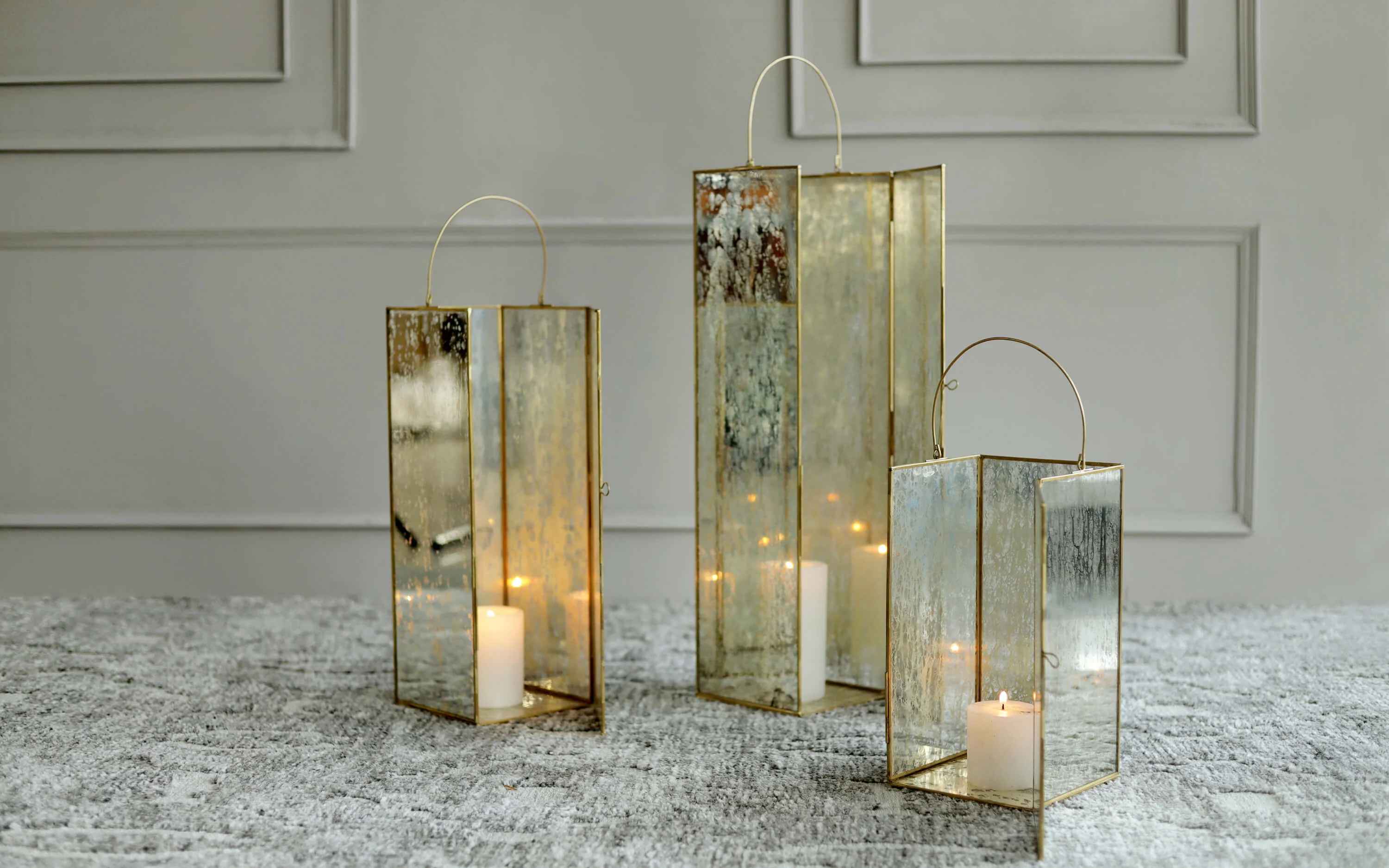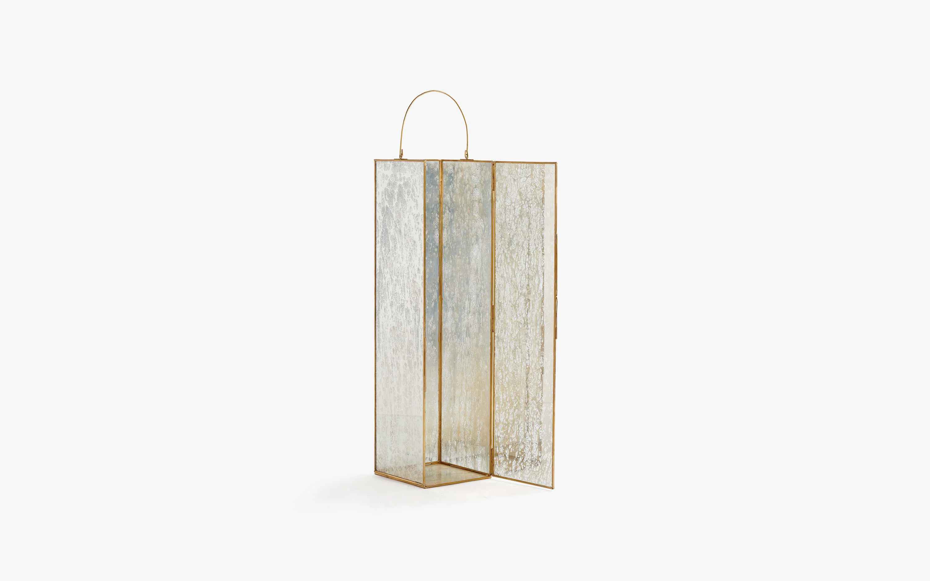 A graceful yet exquisite show of sleek metal lines and glass, the Hera Lantern instantly transforms any and every nook & corner of the house during the festivities. The lantern stands out with its clean, minimal & easy-to-hold design, giving a lovely festive feel with the contrasting brass and antique finish glass. Place all the sizes together to create a stunning show of light and harmony! "Depending on your screen settings and resolution on your device there may be a slight variance in fabric color and wood polish of the image and actual product. Wood grains will vary from product to product in case of solid wood furniture."