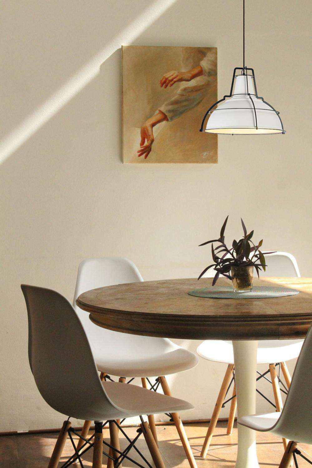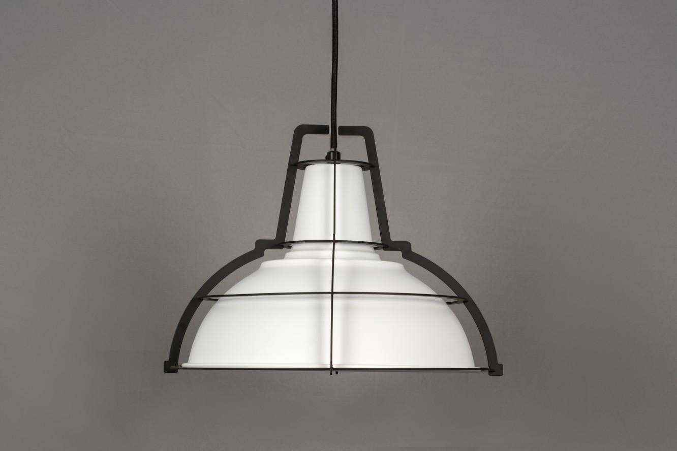 This pendant light brings a classic and industrial charm to the interiors. It comes in vintage black finished cage and features a white metalic shade that holds the light source. This transitional pendant is great for the kitchen, dining area abd open corridor alleys. Two size options available.