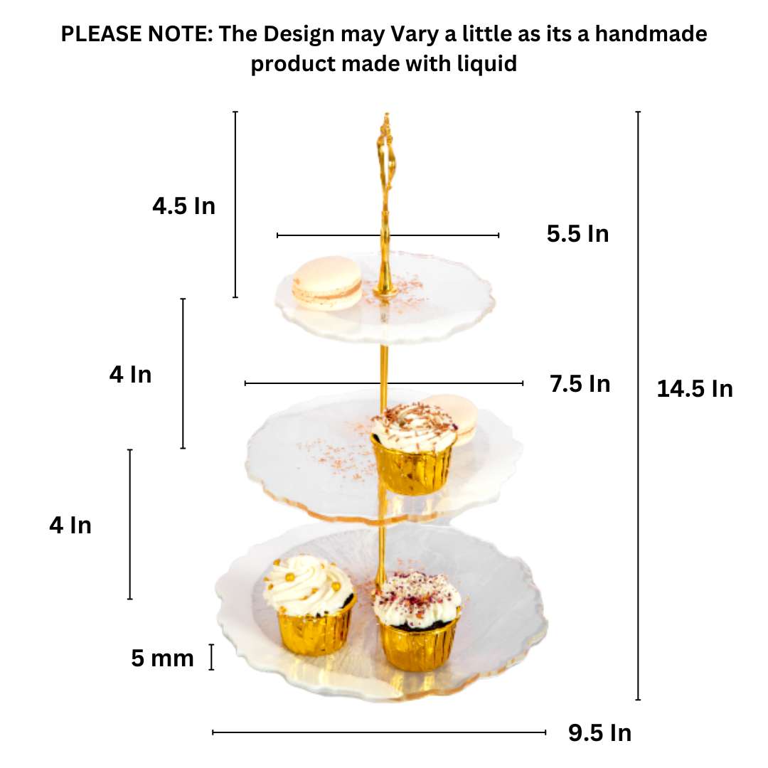 Dimension and Load Bearing Capacity: HN HUES Fleuron Trinket Aesthetic Art Resin Cake Stand Size are H 14.5 x W 11 x D 11 (Inches) with Thickness- 5mm | Load Bearing Capacity is 5 KG | Total Weight 480 Gram. Quality and Material: This Cake Stand are made up of Epoxy, Pigment, gold flakes, Metalic gold sketchpen for outline, Made in resin moulds, 100% Waterproof and Washable, Long lasting and Durability. Versatile Use: With a Fashionable, Modern Design, This Cake Stand will be Perfect for Keeping Cup Cake, Dessert, Artificial Fruits Mainly Use for Birthday Party & Wedding & Home Decor & Table Top Decore Etc, Upgrade your home and enjoy the Beauty! Design: This Cake Stand are Design in Round Shape with Different Beautiful Colour Mixture. This Cake Stand is not Food Grade. NOTE: The Colour & Design may vary from the Image, Because it's a Handmade Product. Care Instruction: Resin may yellow over time, to reduce this process even further, please keep the product out of direct sunlight. This product isn't microwave or oven safe. Please clean the product with a wet soap cloth, do not scrub. Store in a dark cool place when not in use. Stainless Steel- Clean with a wet/dry cloth.