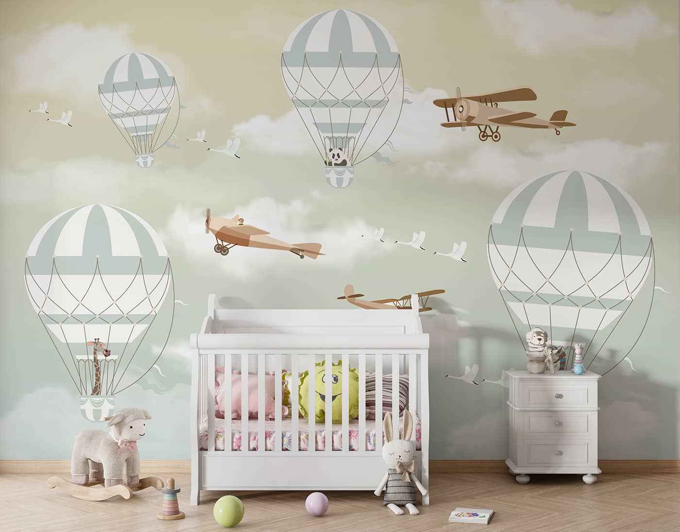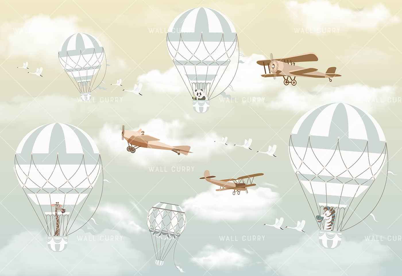Hot Air Balloon and Gliders-Yellow n Green