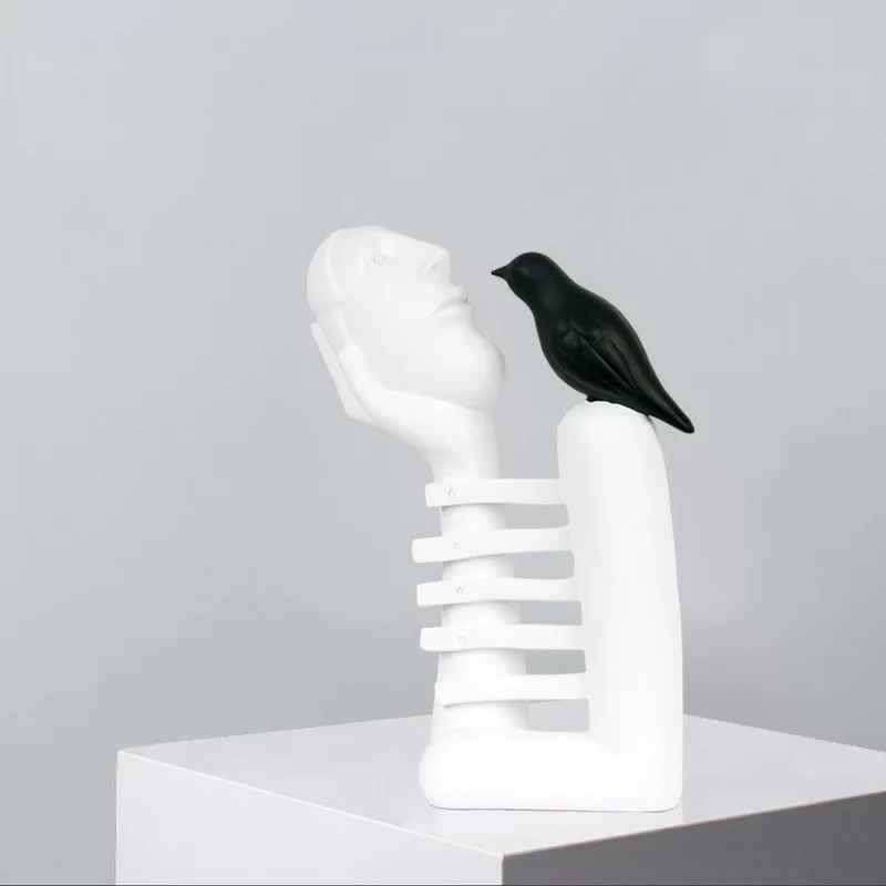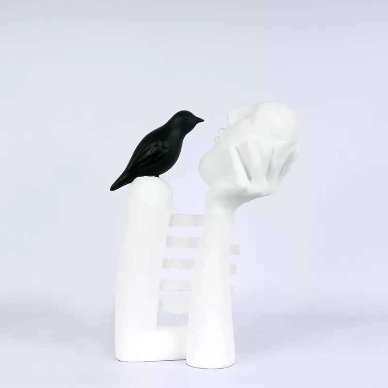 This statue embraces the silence between a man and a bird.Words don't need to be spoken for this nature loving man to embrace the beauty of silence and emotion.The deep white statue holding bird in his hands expresses how much this man loves nature.This statue will give any space an art gallery feel