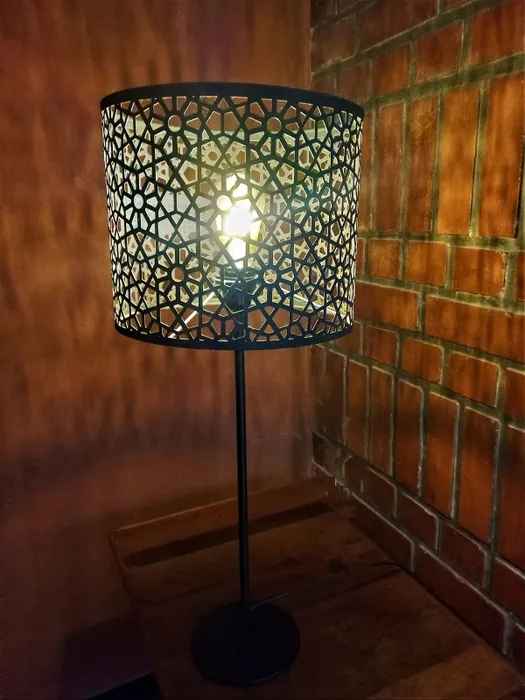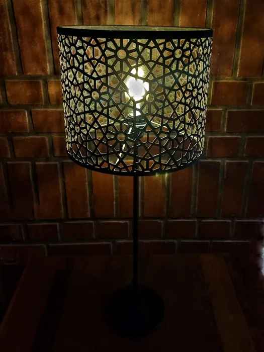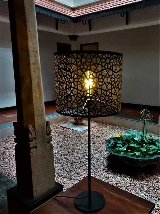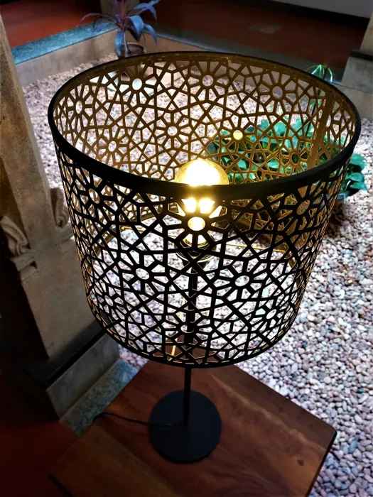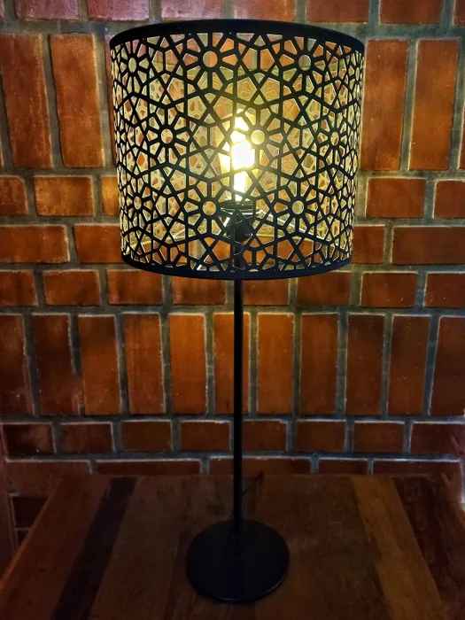 The metal shade in fine jaali work encases the light within and lights up any corner with exquisite design that's sure to garner attention. The shade is mounted on a high gloss powder coated iron stand with black finish. There is pre-treatment done on products to make them rust and dust free. The light adds a warmth and soft ambience to any room and can be used in a lounge, living room, bed room or study to add both illumination and atmosphere to your settings.