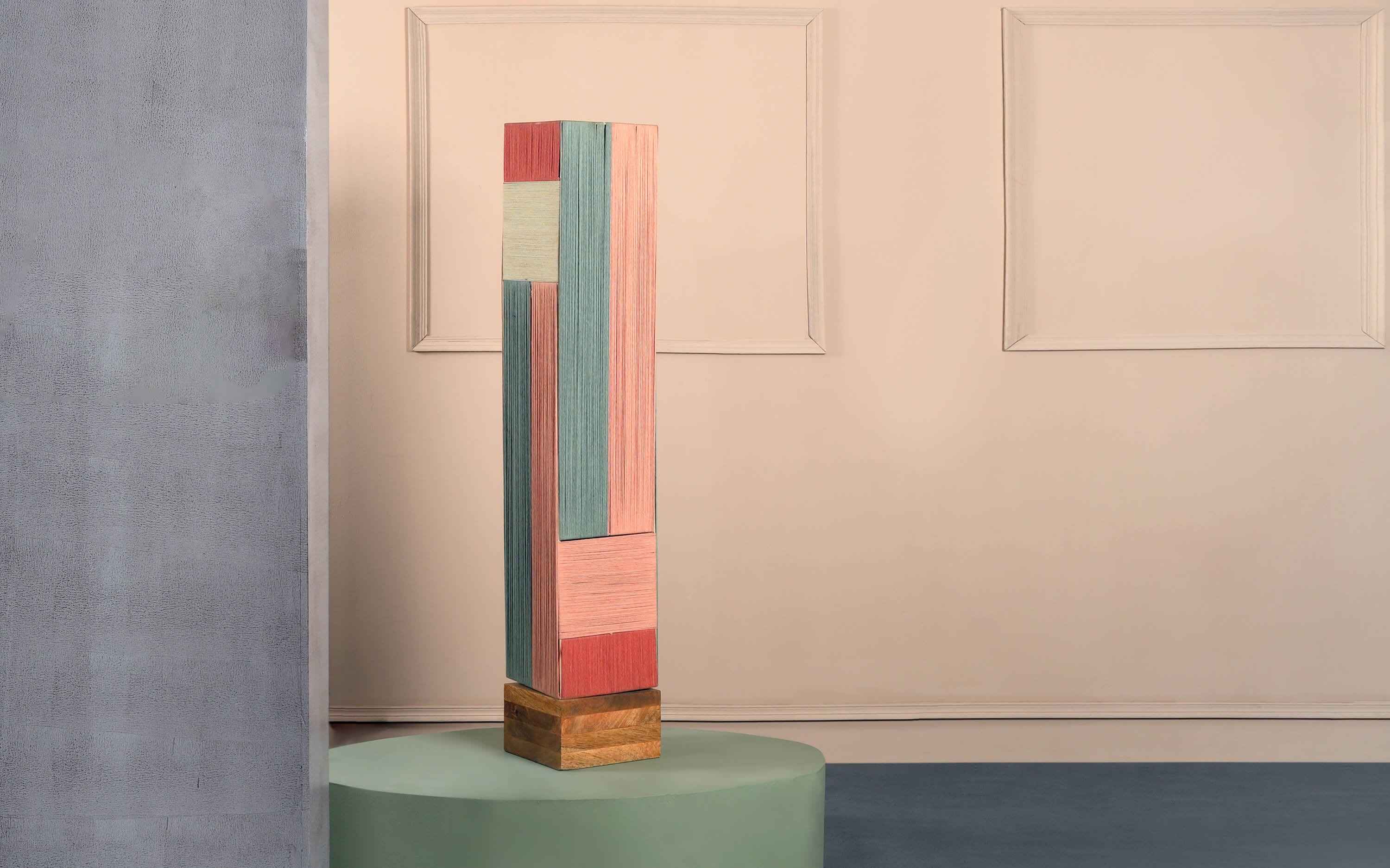 Nostalgia: Jolie collection is inspired by artist Mondrian's De Stijl movement where the goal was to combine modern art and life using only geometric principles and solid colors. This collection has 4 piece wherein the soild colours are represented by coloured cotton thread woven around a thin metal frame. "Depending on your screen settings and resolution on your device there may be a slight variance in fabric color and wood polish of the image and actual product. Wood grains will vary from product to product in case of solid wood furniture."