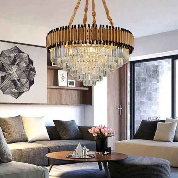 8 Lights Gold Plated Modern Top Grade K9 crystal chandeliers ceiling pendant lights Raindrop Style SUGGESTED SPACE FIT: Dining room, living room, bedroom, girls room, kids room, hallway, proch, hotel, etc TWO-TIMES FINISH High-quality Aluminium and acrylic finished by two times powder coating and polishing applied, resulting in high-temperature resistance, anti-corrosion, anti-fade, anti-scratch, assuring long lifespan Acrylic Ceiling Pendant Lamps With Light Hanglampen Bar Lamp Foyer Lights Lamps Modern Hanging