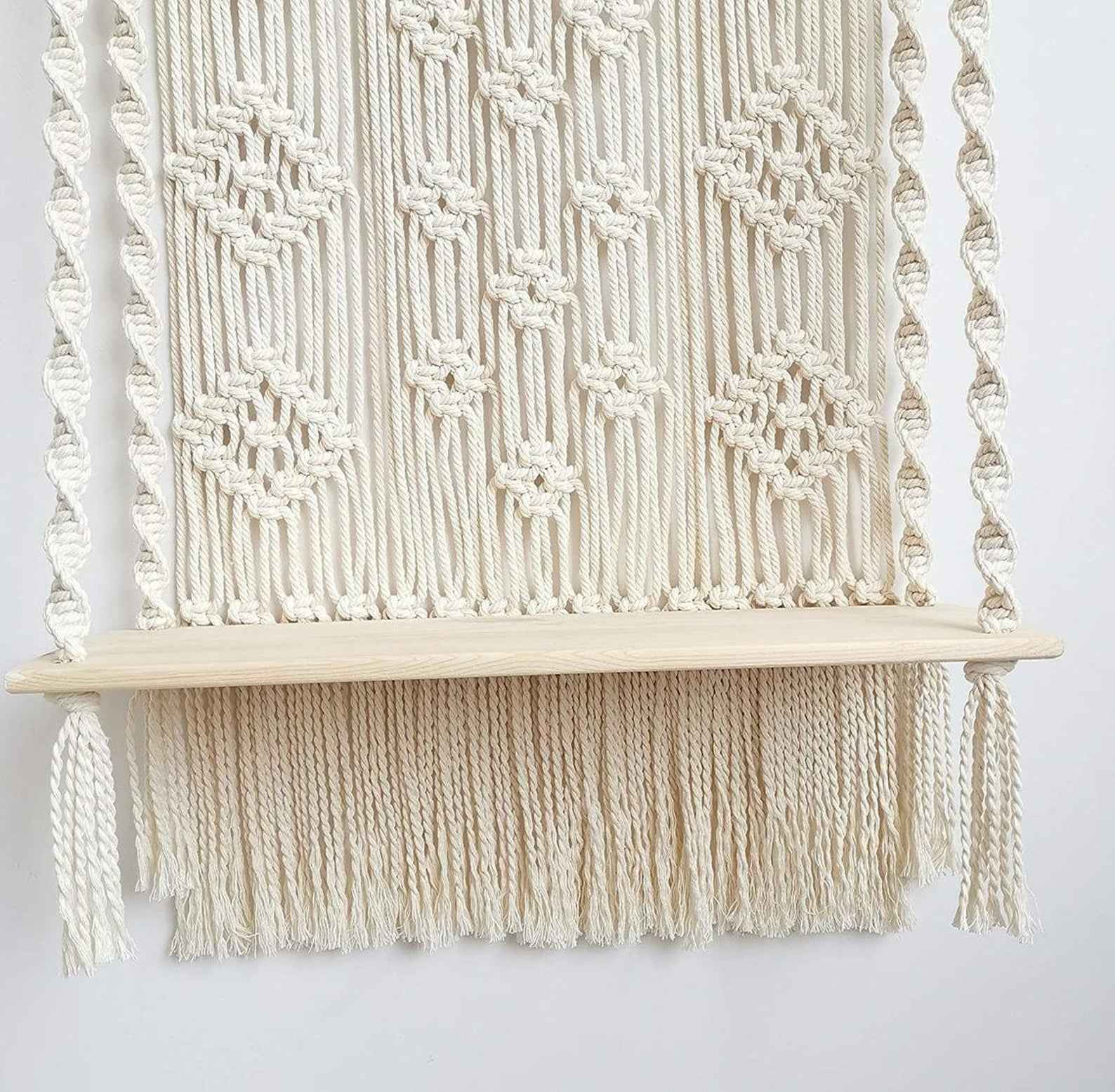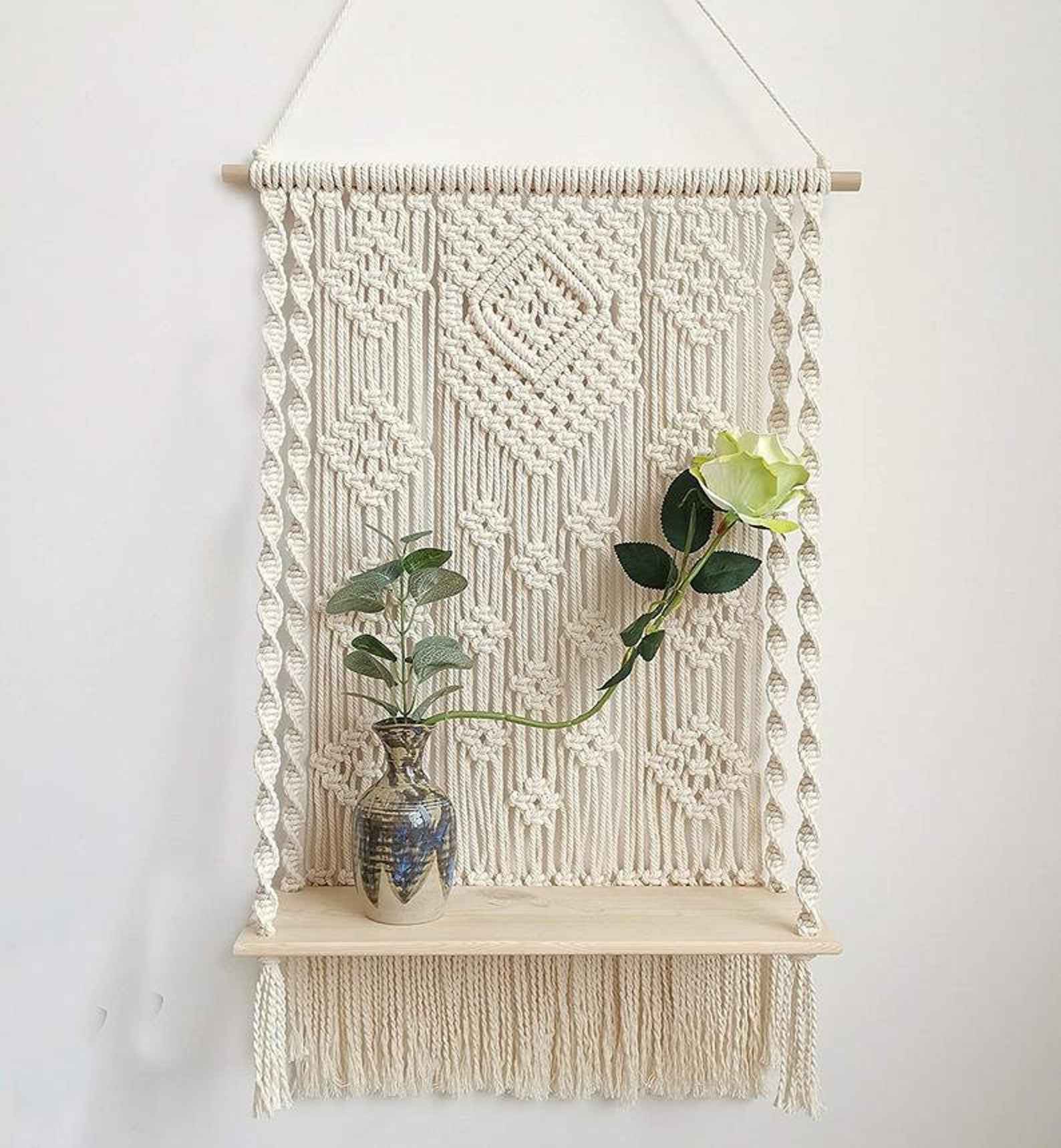This macrame wall hanging is created to fit in any space and budget. Beautiful wall art creates a sense of harmony and comfort for your room. It is great for a bedroom, dorm room, living area, baby nursery, work space or anywhere where you’d like to bring some texture and interest to your walls. These hanging shelves for wall are the perfect eco-friendly gifts for home décor enthusiasts. The wooden shelves for wall are made in pure pine wood making it absolutely sturdy and can be used to place any decor and display items whether its plants or books or any shelf decor accent.