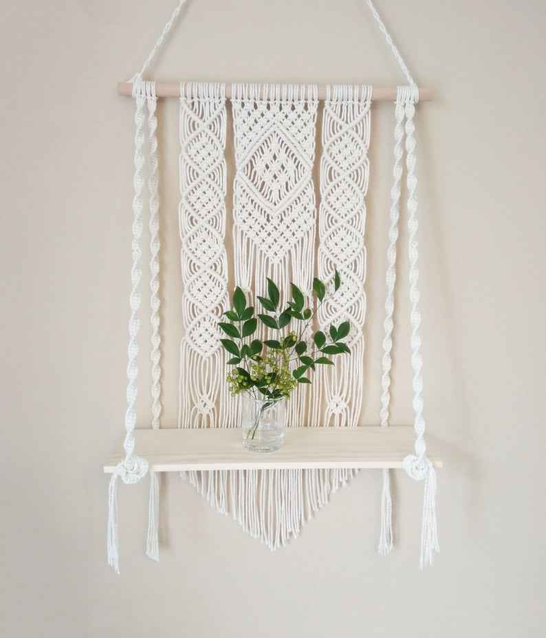 This macrame wall hanging is created to fit in any space and budget. Beautiful wall art creates a sense of harmony and comfort for your room. It is great for a bedroom, dorm room, living area, baby nursery, work space or anywhere where you’d like to bring some texture and interest to your walls. These hanging shelves for wall are the perfect eco-friendly gifts for home décor enthusiasts. The wooden shelves for wall are made in pure pine wood making it absolutely sturdy and can be used to place any decor and display items whether its plants or books or any shelf decor accent.
