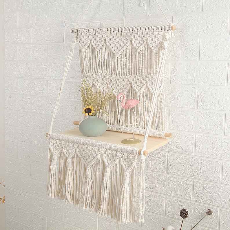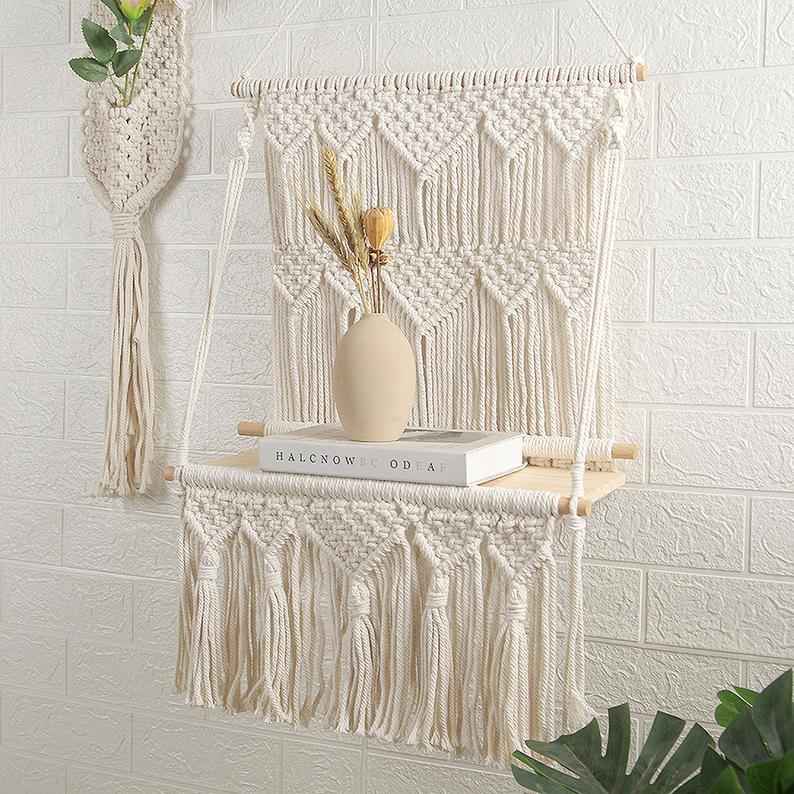This macrame wall hanging is created to fit in any space and budget. Beautiful wall art creates a sense of harmony and comfort for your room. It is great for a bedroom, dorm room, living area, baby nursery, work space or anywhere where you’d like to bring some texture and interest to your walls. These hanging shelves for wall are the perfect eco-friendly gifts for home décor enthusiasts. The wooden shelves for wall are made in pure pine wood making it absolutely sturdy and can be used to place any decor and display items whether its plants or books or any shelf decor accent.