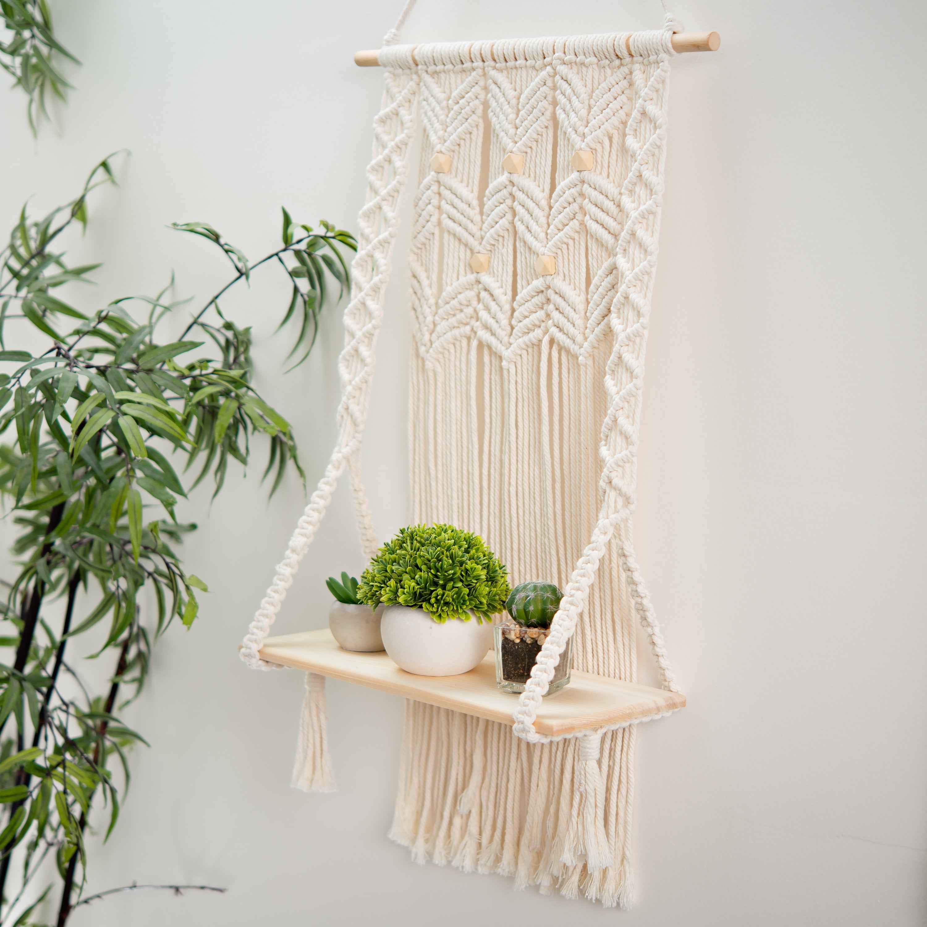 This macrame wall hanging is created to fit in any space and budget. Beautiful wall art creates a sense of harmony and comfort for your room. It is great for a bedroom, dorm room, living area, baby nursery, work space or anywhere where you’d like to bring some texture and interest to your walls. These hanging shelves for wall are the perfect eco-friendly gifts for home décor enthusiasts. The wooden shelves for wall are made in pure pine wood making it absolutely sturdy and can be used to place any decor and display items whether its plants or books or any shelf decor accent.