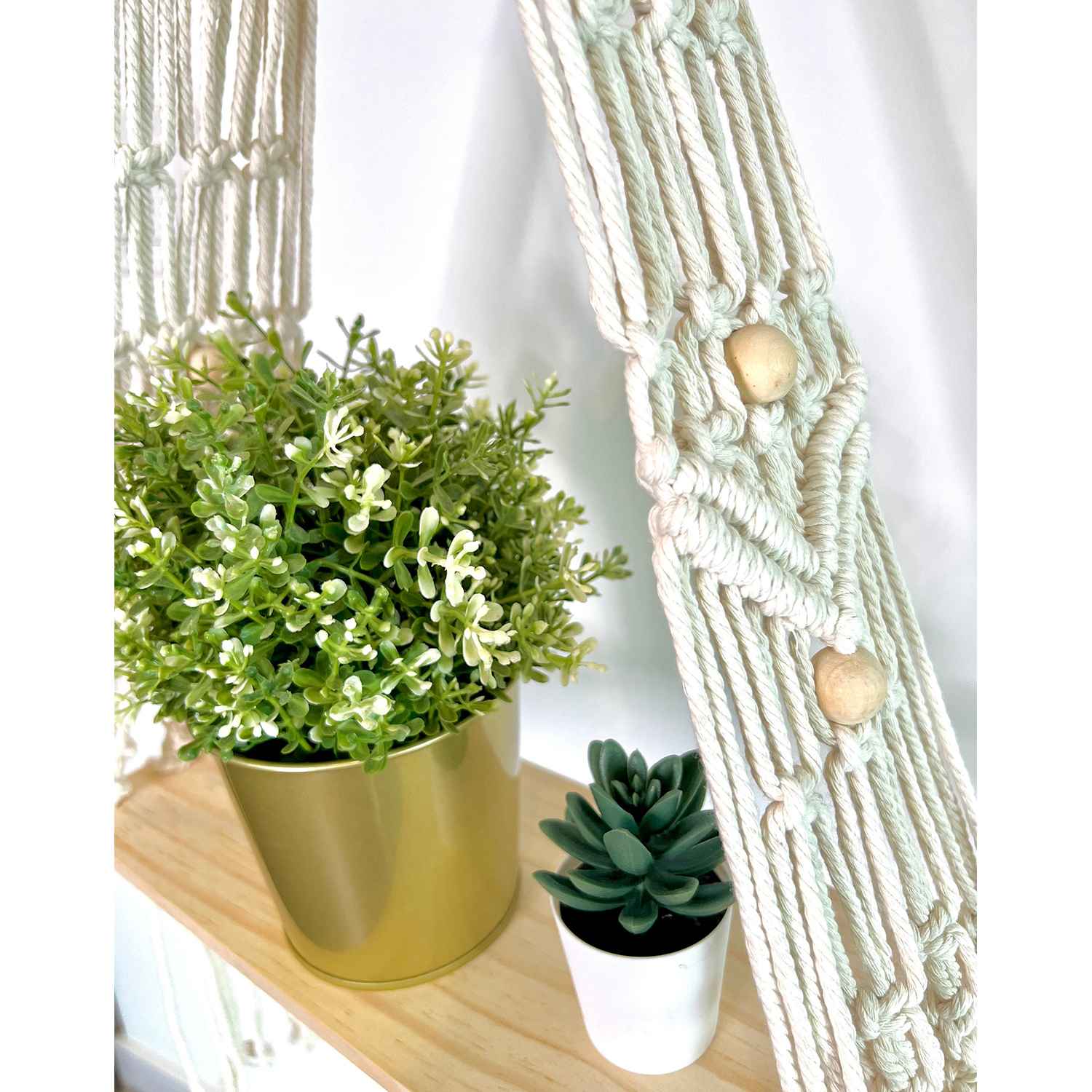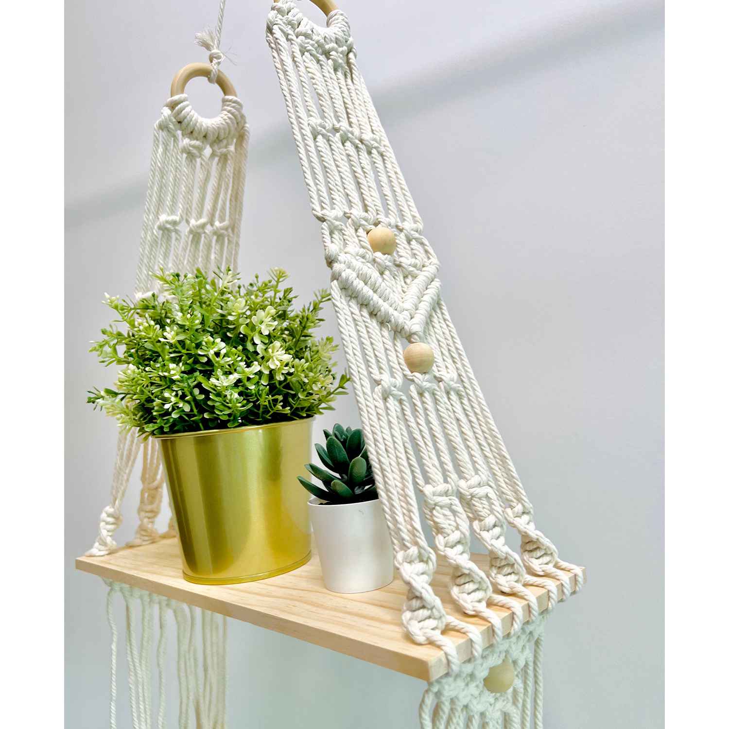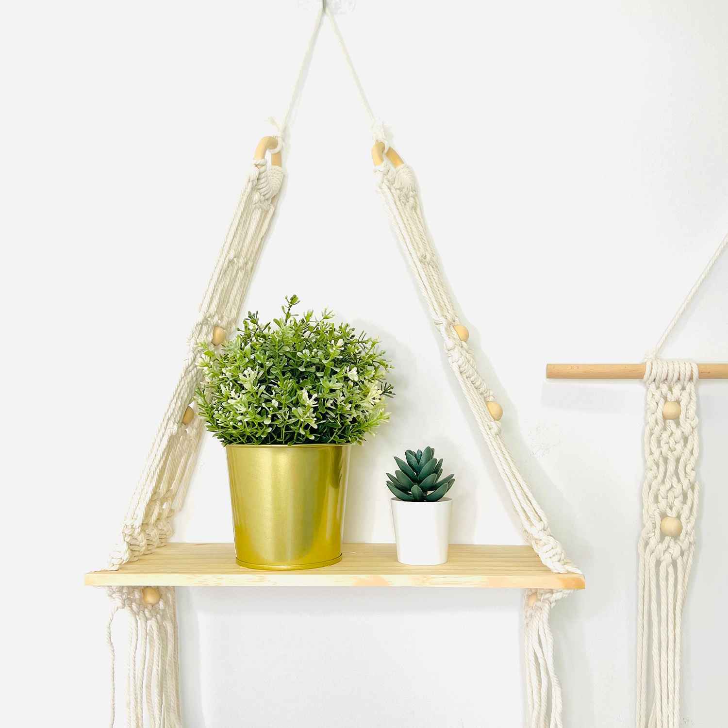 This macrame wall hanging is created to fit in any space and budget. Beautiful wall art creates a sense of harmony and comfort for your room. It is great for a bedroom, dorm room, living area, baby nursery, work space or anywhere where you’d like to bring some texture and interest to your walls. These hanging shelves for wall are the perfect eco-friendly gifts for home decor enthusiasts. The wooden shelves for wall are made in pure pine wood making it absolutely sturdy and can be used to place any decor and display items whether its plants or books or any shelf decor accent.