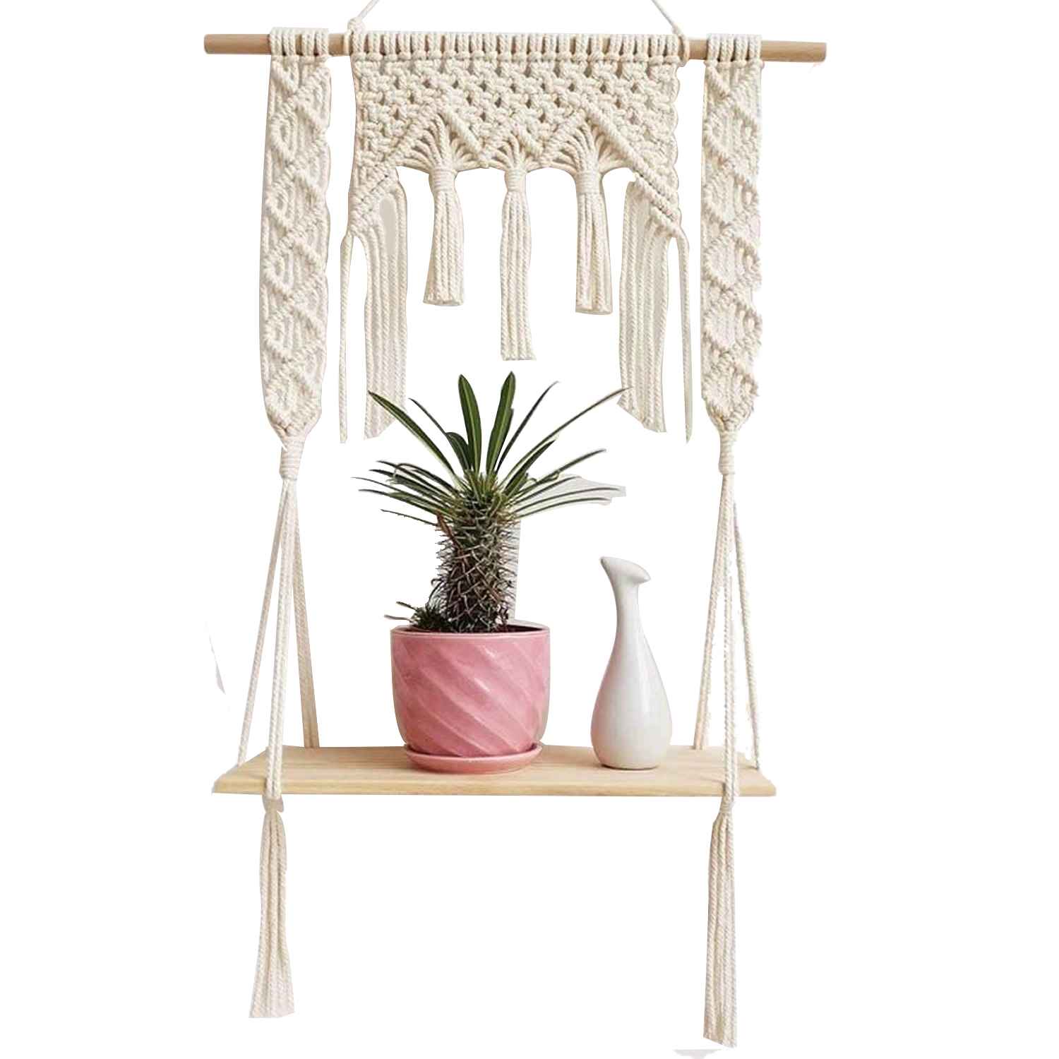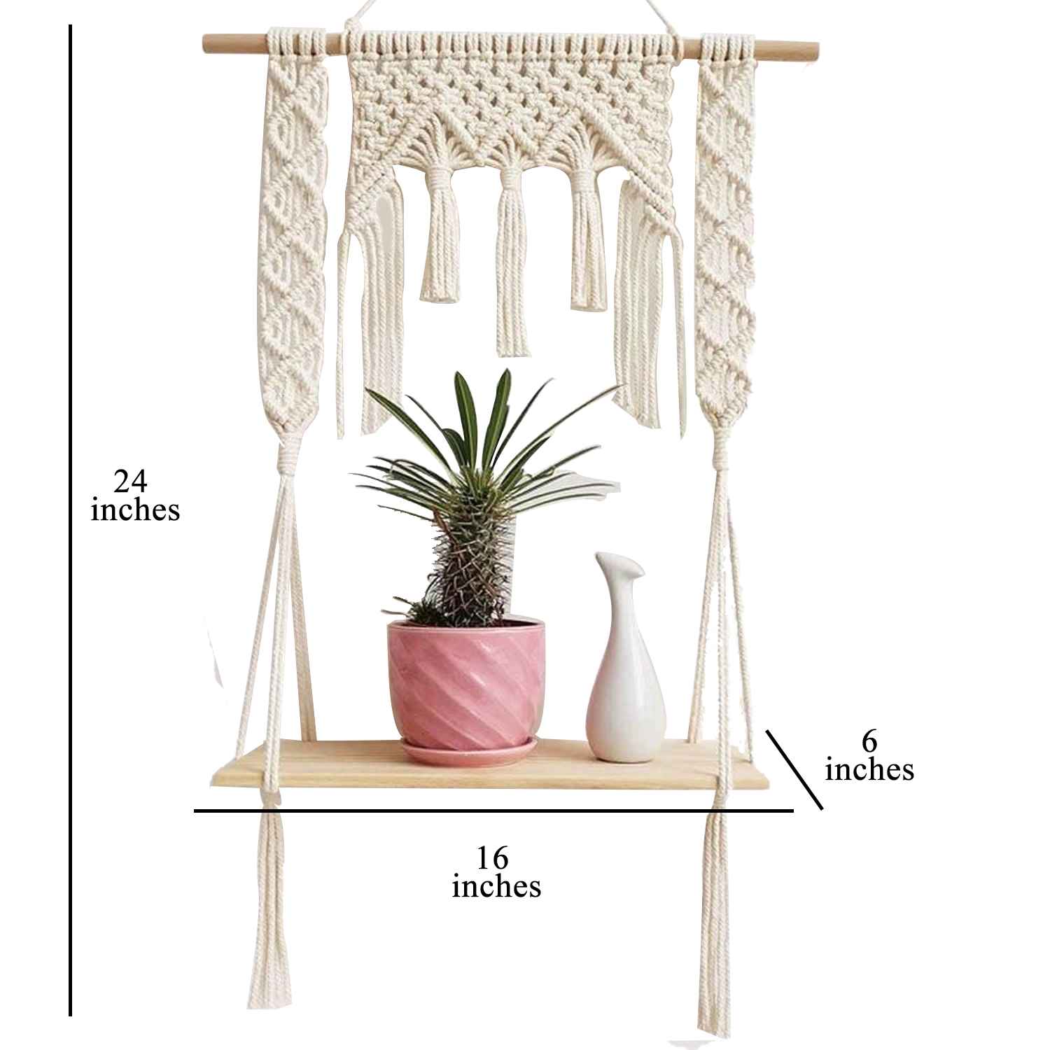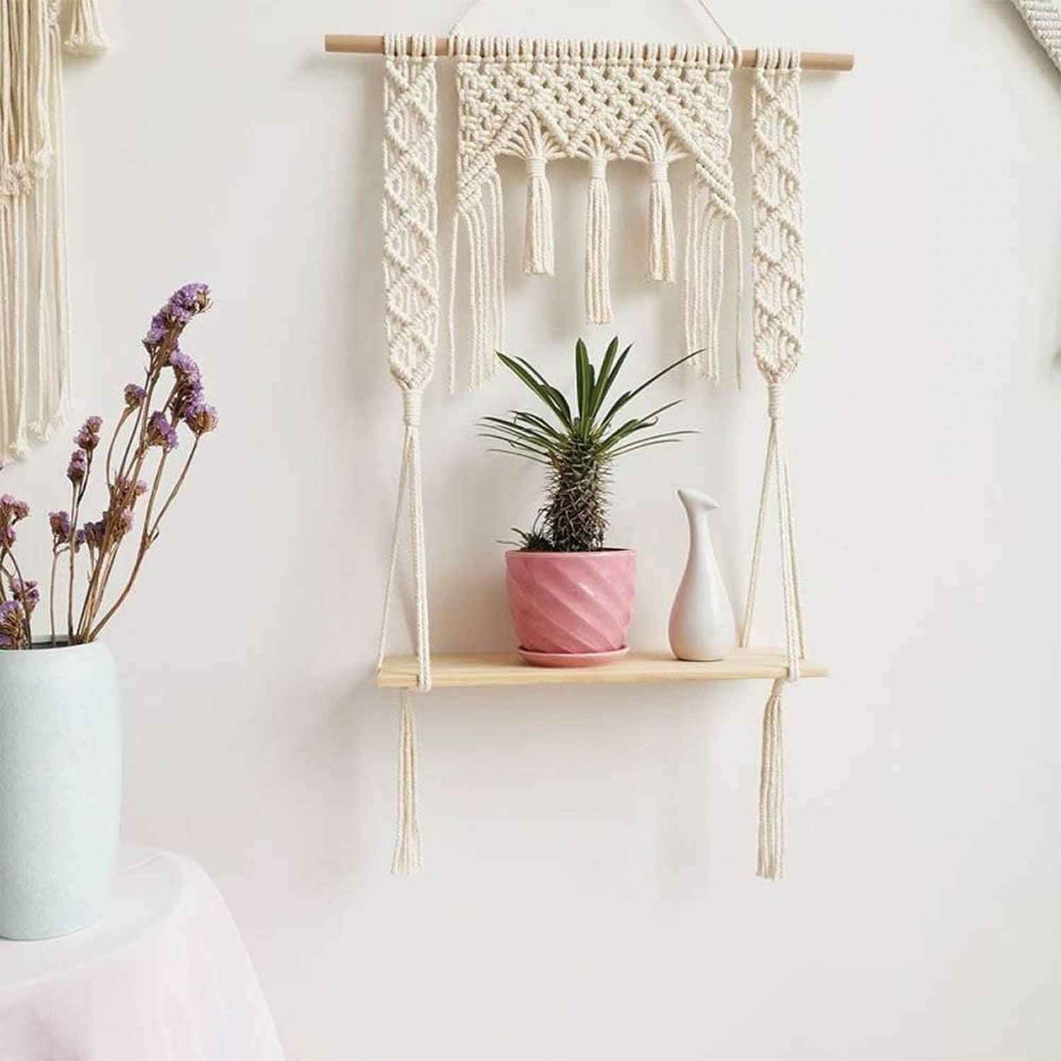 This macrame wall hanging is created to fit in any space and budget. Beautiful wall art creates a sense of harmony and comfort for your room. It is great for a bedroom, dorm room, living area, baby nursery, work space or anywhere where you’d like to bring some texture and interest to your walls. These hanging shelves for wall are the perfect eco-friendly gifts for home decor enthusiasts. The wooden shelves for wall are made in pure pine wood making it absolutely sturdy and can be used to place any decor and display items whether its plants or books or any shelf decor accent.