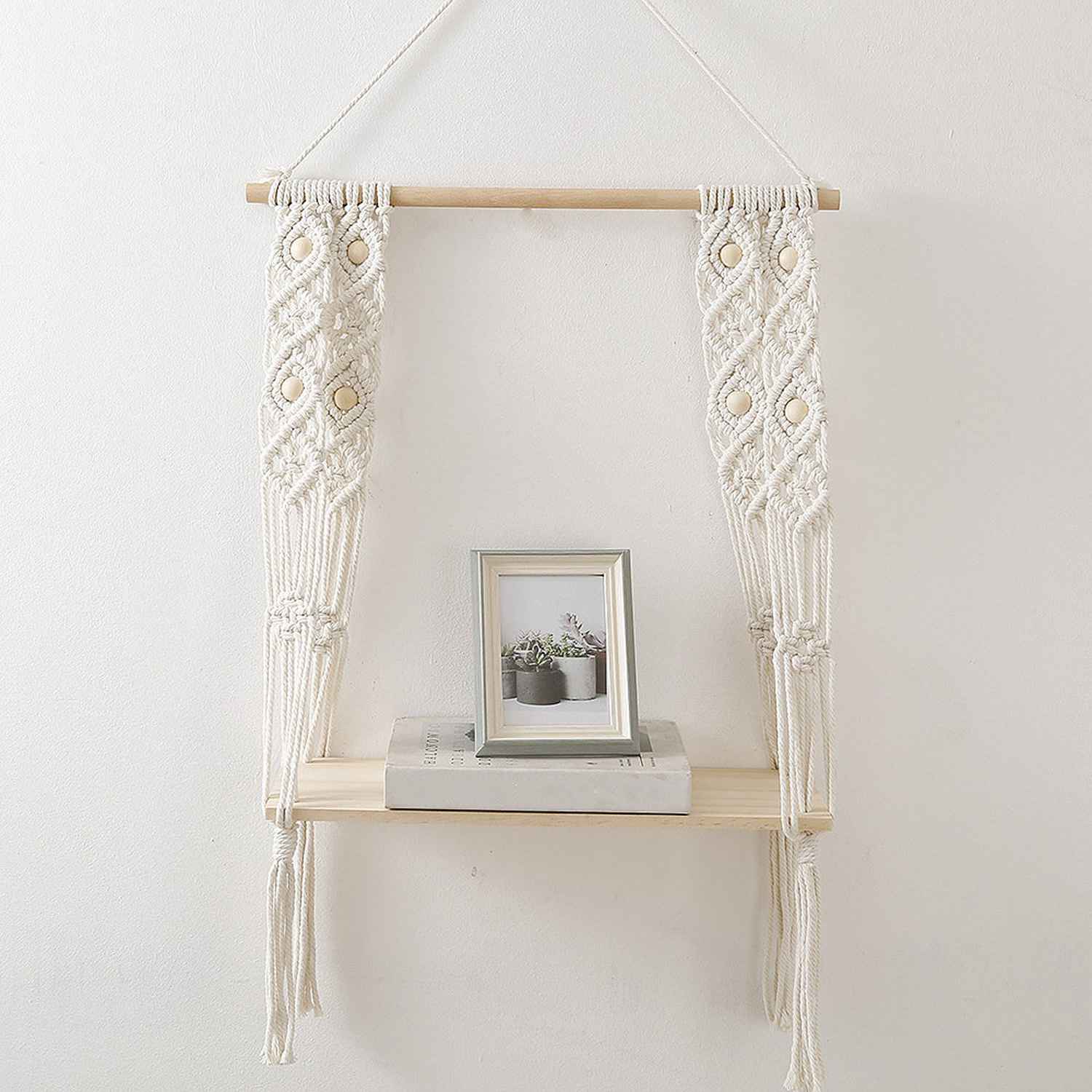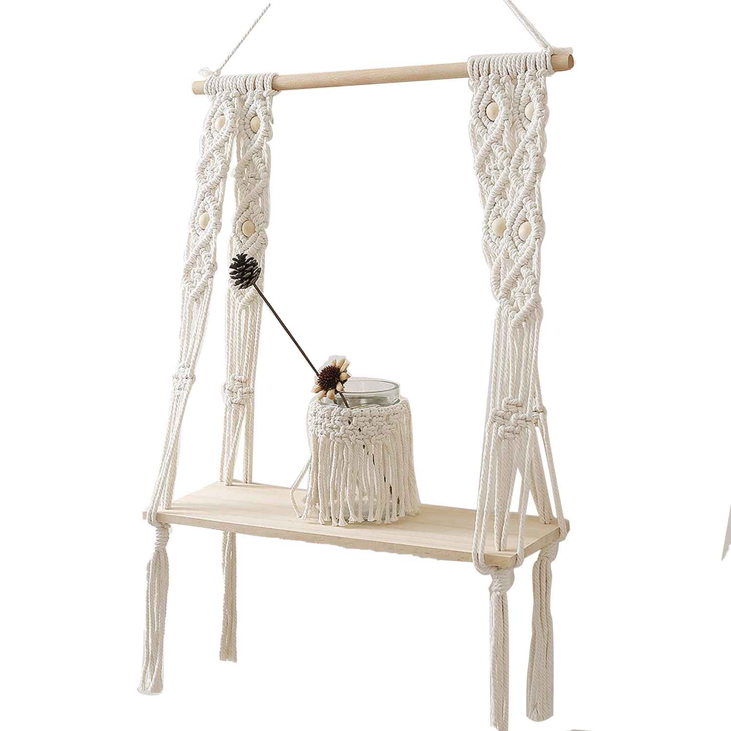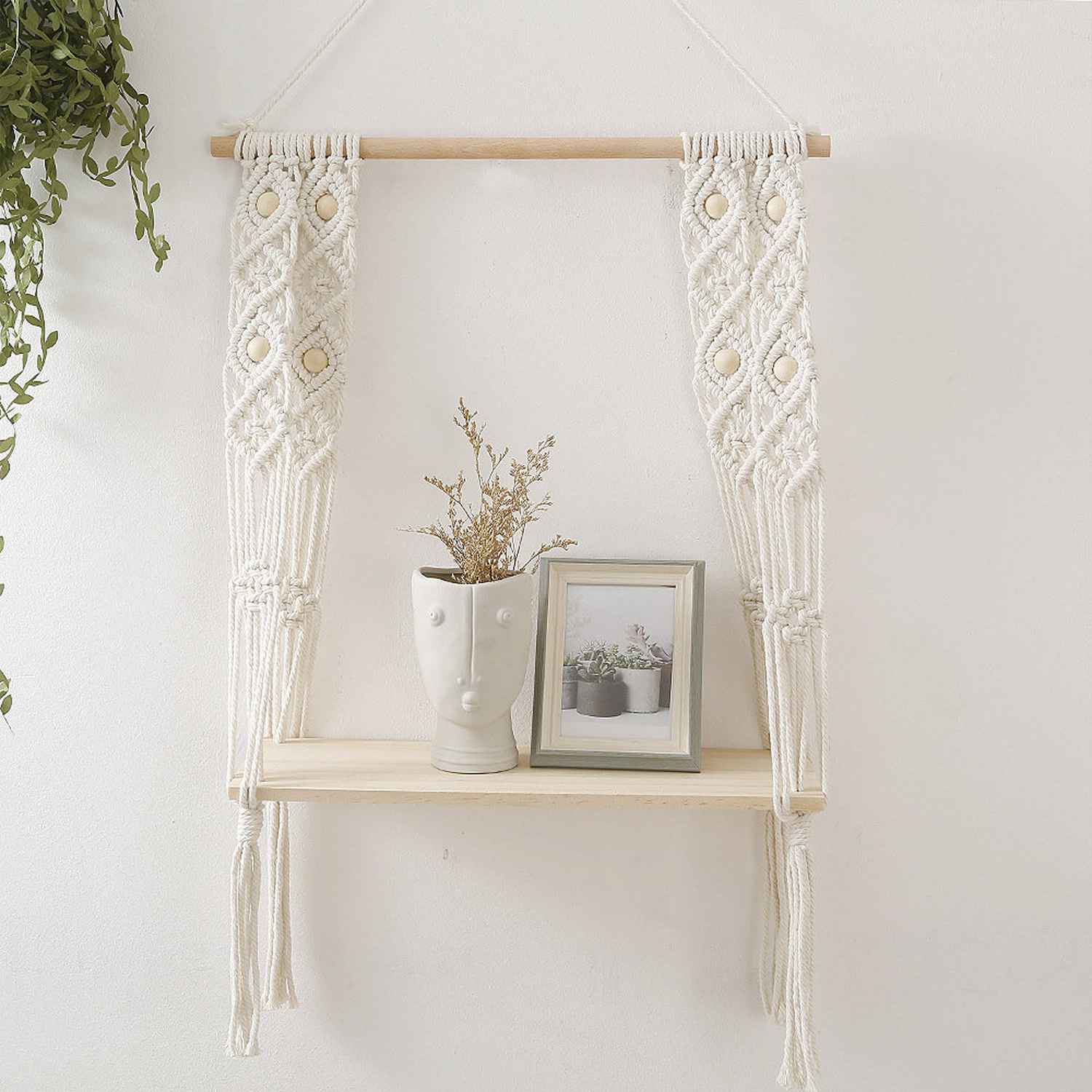 This macrame wall hanging is created to fit in any space and budget. Beautiful wall art creates a sense of harmony and comfort for your room. It is great for a bedroom, dorm room, living area, baby nursery, work space or anywhere where you’d like to bring some texture and interest to your walls. These hanging shelves for wall are the perfect eco-friendly gifts for home decor enthusiasts. The wooden shelves for wall are made in pure pine wood making it absolutely sturdy and can be used to place any decor and display items whether its plants or books or any shelf decor accent.