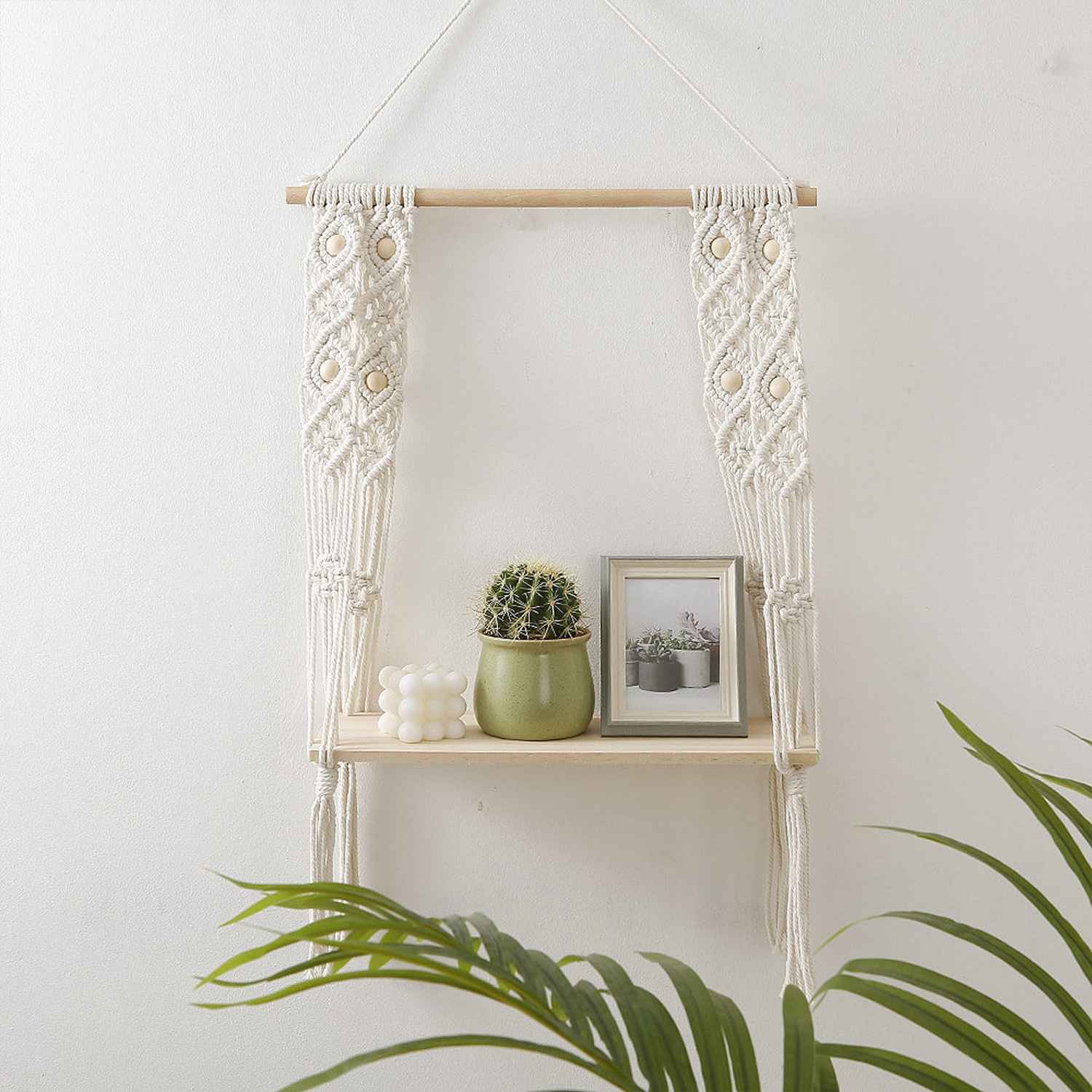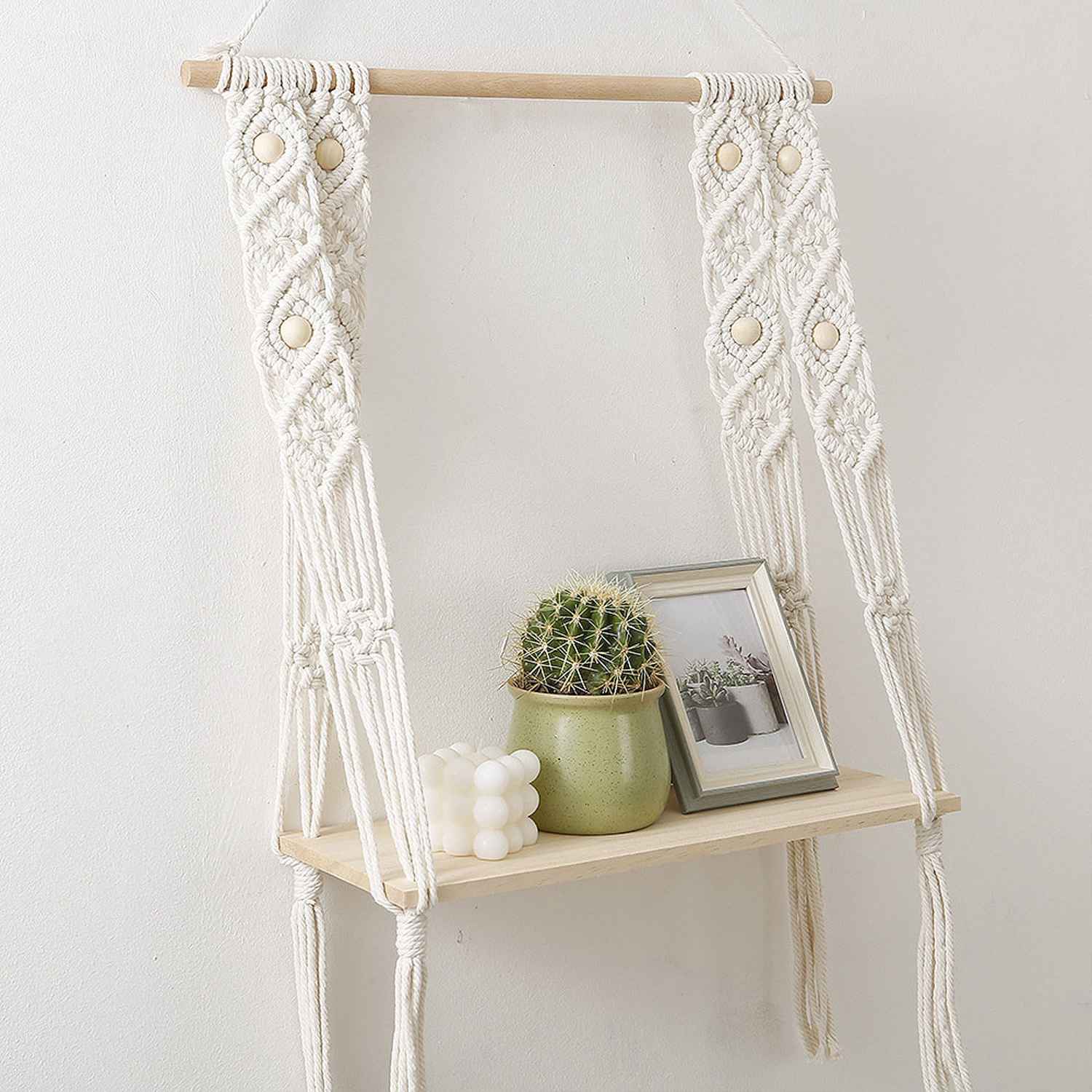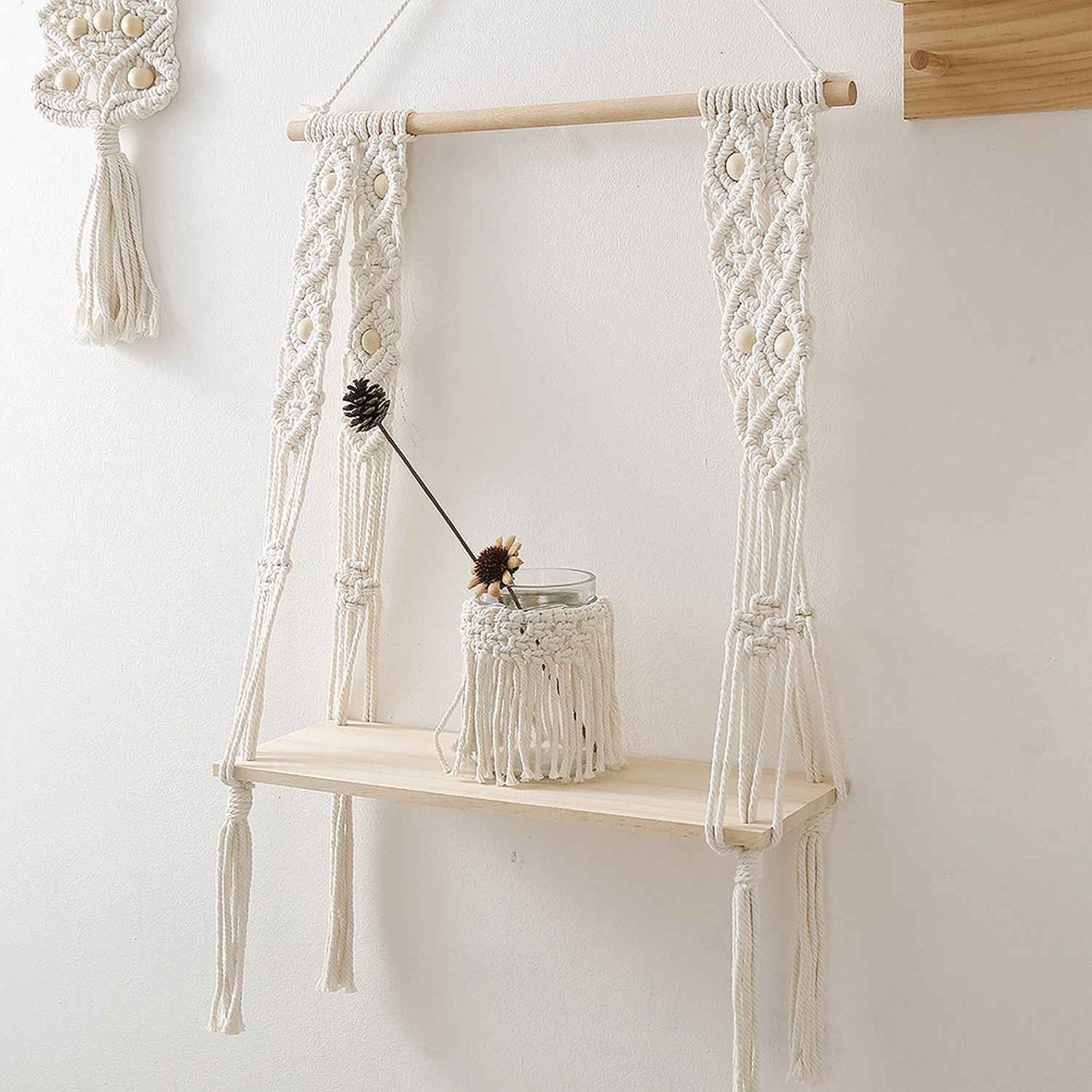 This macrame wall hanging is created to fit in any space and budget. Beautiful wall art creates a sense of harmony and comfort for your room. It is great for a bedroom, dorm room, living area, baby nursery, work space or anywhere where you’d like to bring some texture and interest to your walls. These hanging shelves for wall are the perfect eco-friendly gifts for home decor enthusiasts. The wooden shelves for wall are made in pure pine wood making it absolutely sturdy and can be used to place any decor and display items whether its plants or books or any shelf decor accent.