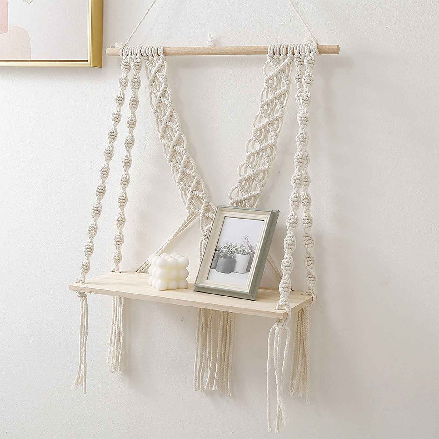 This macrame wall hanging is created to fit in any space and budget. Beautiful wall art creates a sense of harmony and comfort for your room. It is great for a bedroom, dorm room, living area, baby nursery, work space or anywhere where you’d like to bring some texture and interest to your walls. These hanging shelves for wall are the perfect eco-friendly gifts for home decor enthusiasts. The wooden shelves for wall are made in pure pine wood making it absolutely sturdy and can be used to place any decor and display items whether its plants or books or any shelf decor accent.