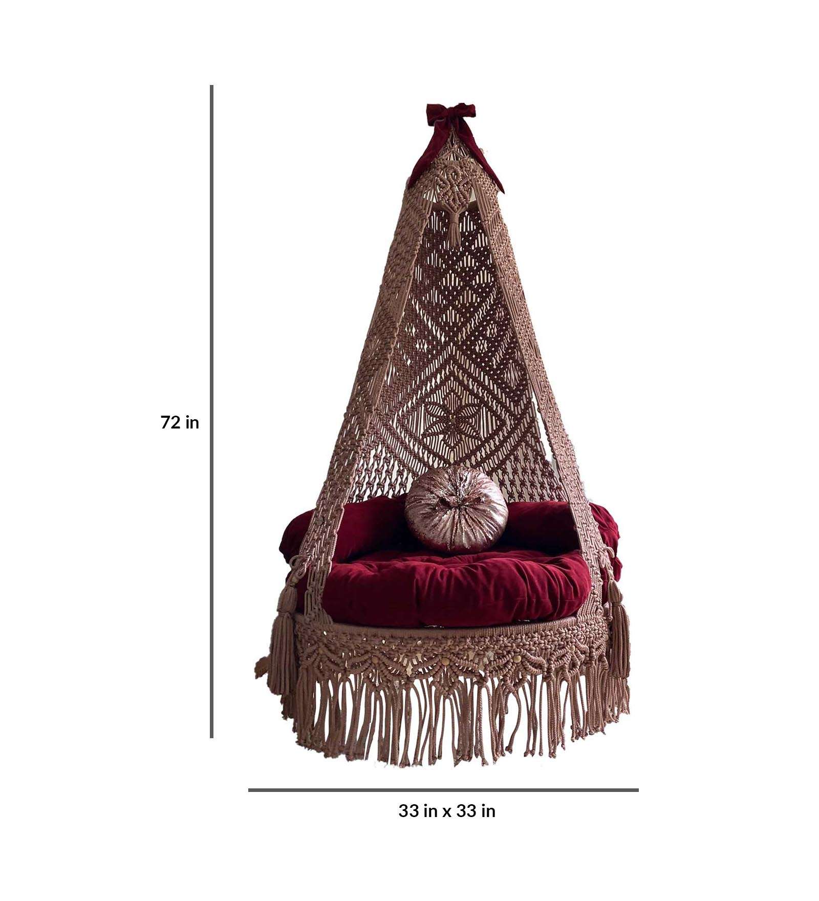 A swing is a hanging seat, often found at playgrounds for children and now also popularly used as items of indoor furniture. The seat of a swing may be suspended from chains or ropes. Once a swing is in motion, it continues to oscillate like a pendulum until external interference or drag brings it to a halt. This beautiful handmade swing chair is made with love and care by experienced artisans, this chair can be folded and can hold the weight up to 100 Kgs. This chair will made the area more lavish and unique as well as beautiful wherever it will be placed.