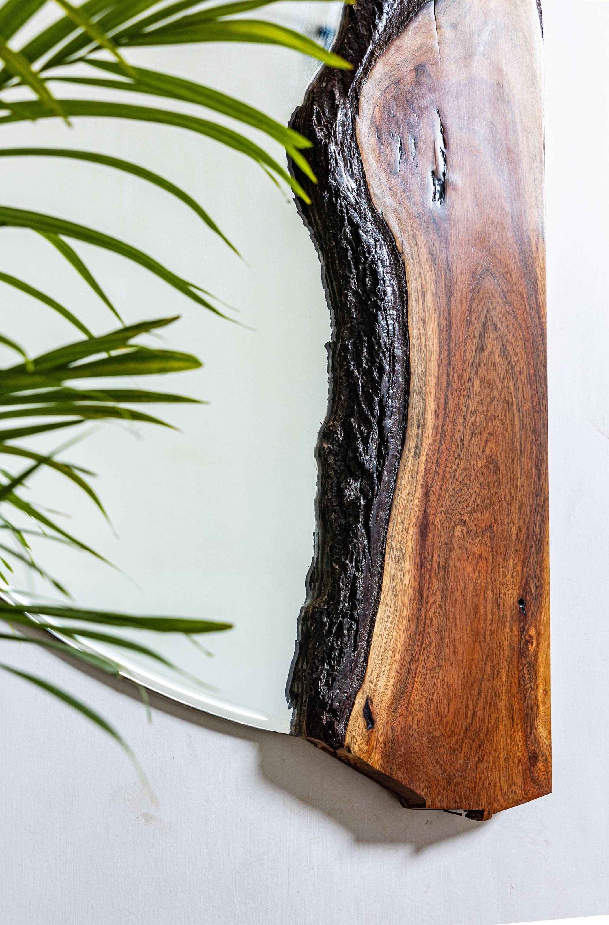 This wall mirror set is a perfect addition to any home looking for a rustic and boho feel. The set includes five individual mirrors that can be arranged in any configuration to create a unique and personalized look on your walls. Each mirror is made from high-quality materials and features live edge solid wood details in the corners, adding an organic and natural element to the design. Our wall mirror set of 5 with live edge solid wood details in the corner and rustic and boho feel is a unique and versatile addition to any home decor. With its high-quality construction, easy installation, and customizable design options, it's the perfect way to create a personalized and organic look on your walls. Whether you're looking to enhance the decor of your living room, bedroom, or any other room in your home, this mirror set is sure to impress and provide a functional and stylish addition to your space.