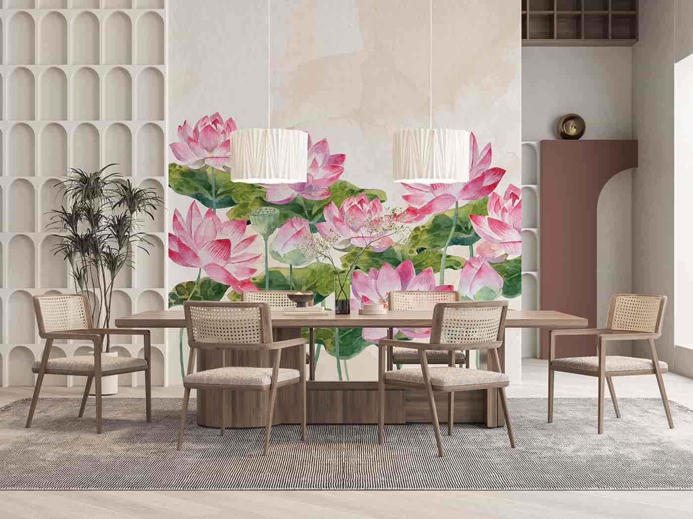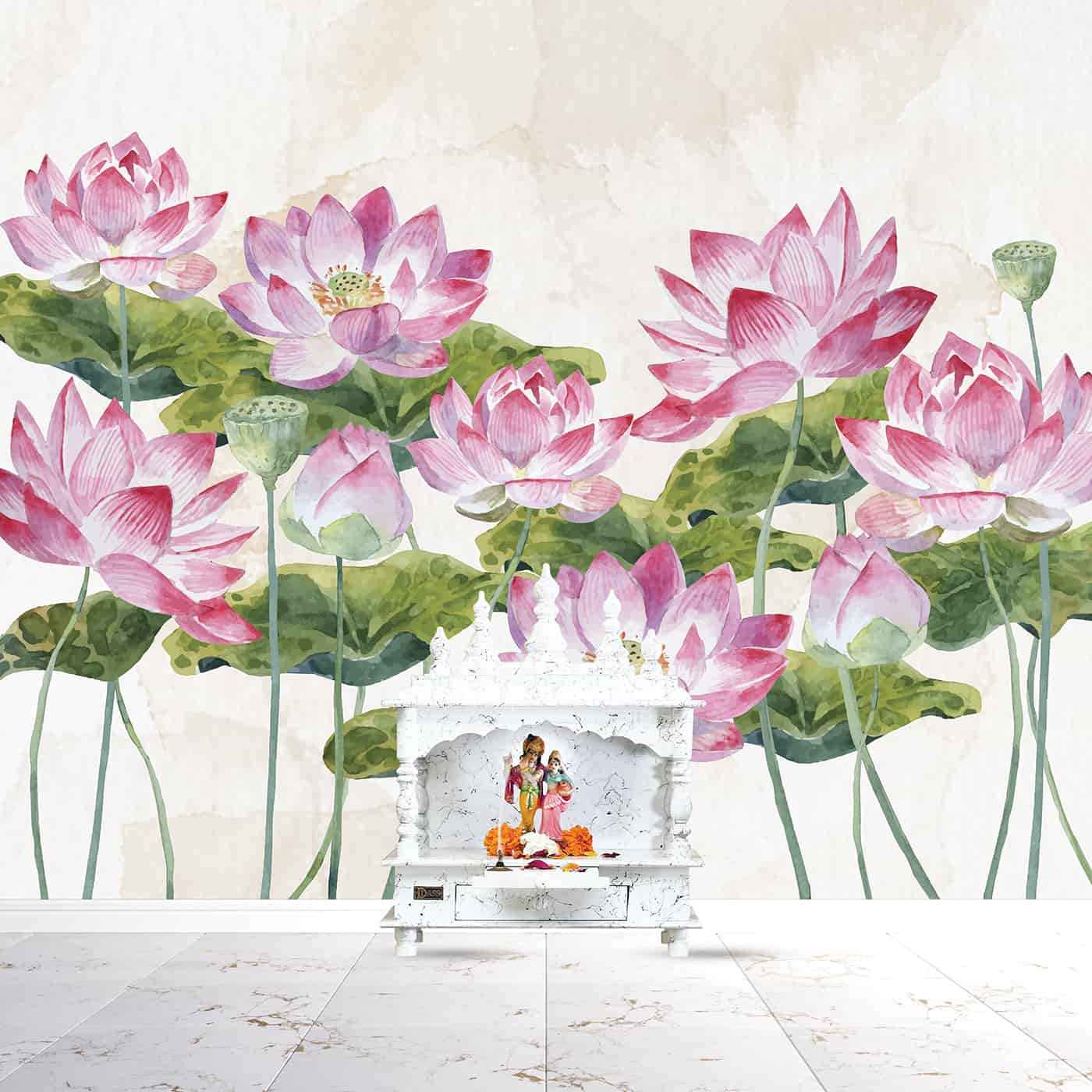 Pichwai or Pichvai is a style of painting that originated over 400 years ago, in the town of Nathdwara near Udiapur, India.The word Pichwai comes from 'pichh' meaning back, and 'wai', meaning textile hanging. Originally, pichwai paintings were used to decorate the temple of Krishna/Shrinathji in Nathdwara,Rajasthan, India. Intricate and visually appealing Pichwai paintings, originally made on cloth, were hung behind the deity to celebrate different seasons, festivals and events in Lord Krishna's life. The purpose of Pichwais other than artistic appeal is to narrate tales of Krishna to the illiterate. Over time, pichwais have found a place in the homes of art connoisseurs, owing to their visual appeal. We have put in efforts to recreate this dying art form and present it to the world. All our murals are custom-made to fit your wall?s dimensions and they are all supplied in panels. Every wallpaper mural we produce is unique to you. We don?t hold stock.