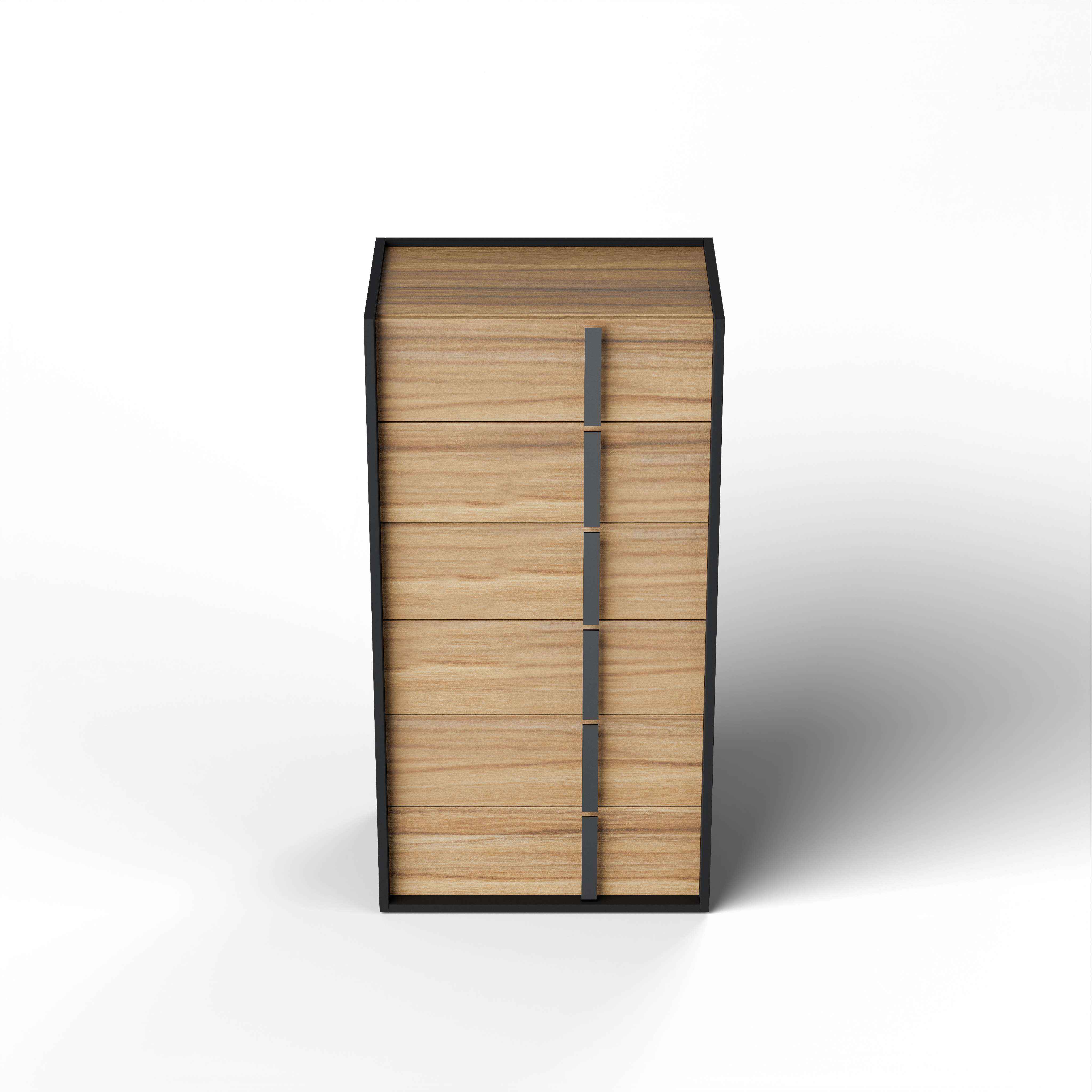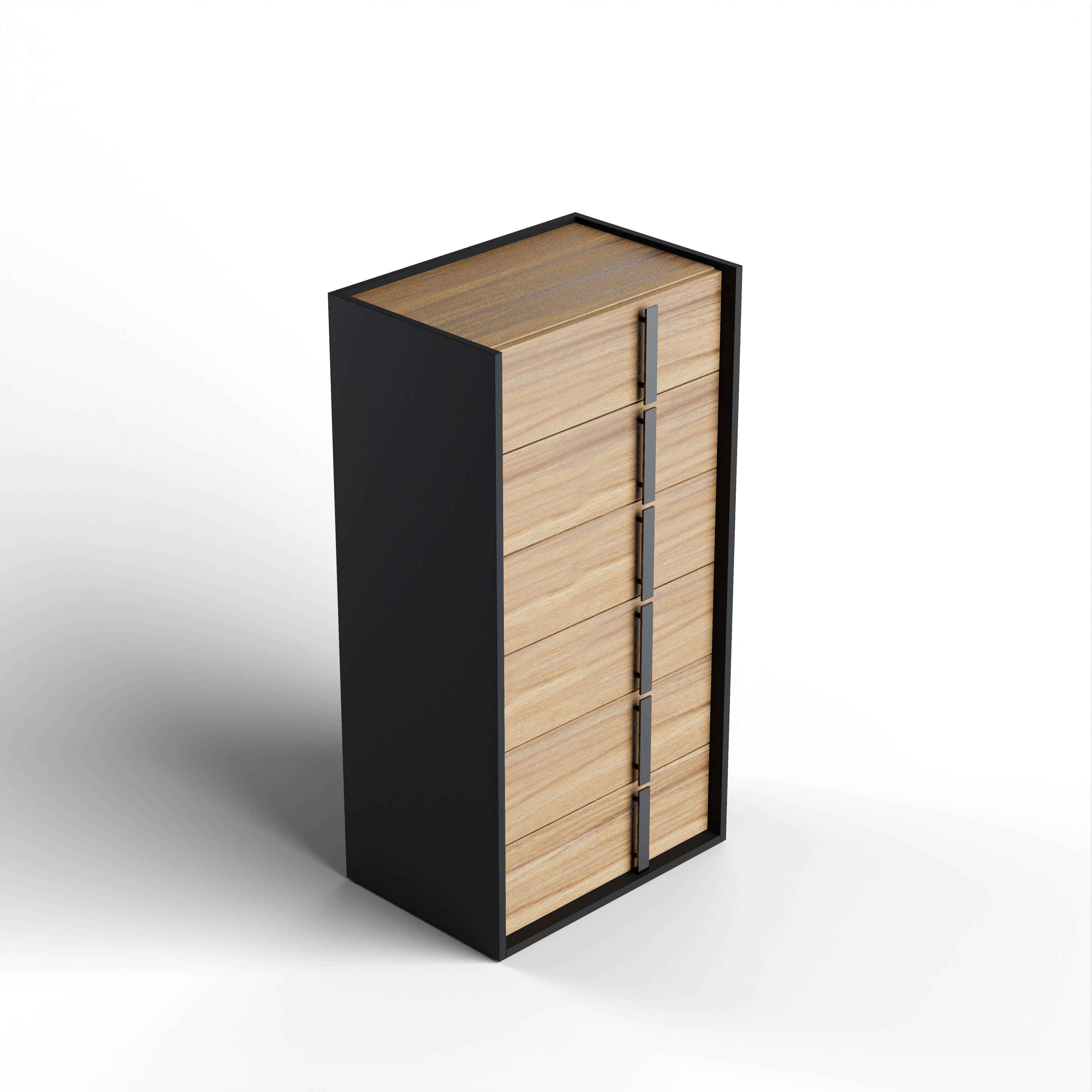 Black Pre-Laminated MDF Carcass; Teak Pre-Laminated MDF Drawer Fascia