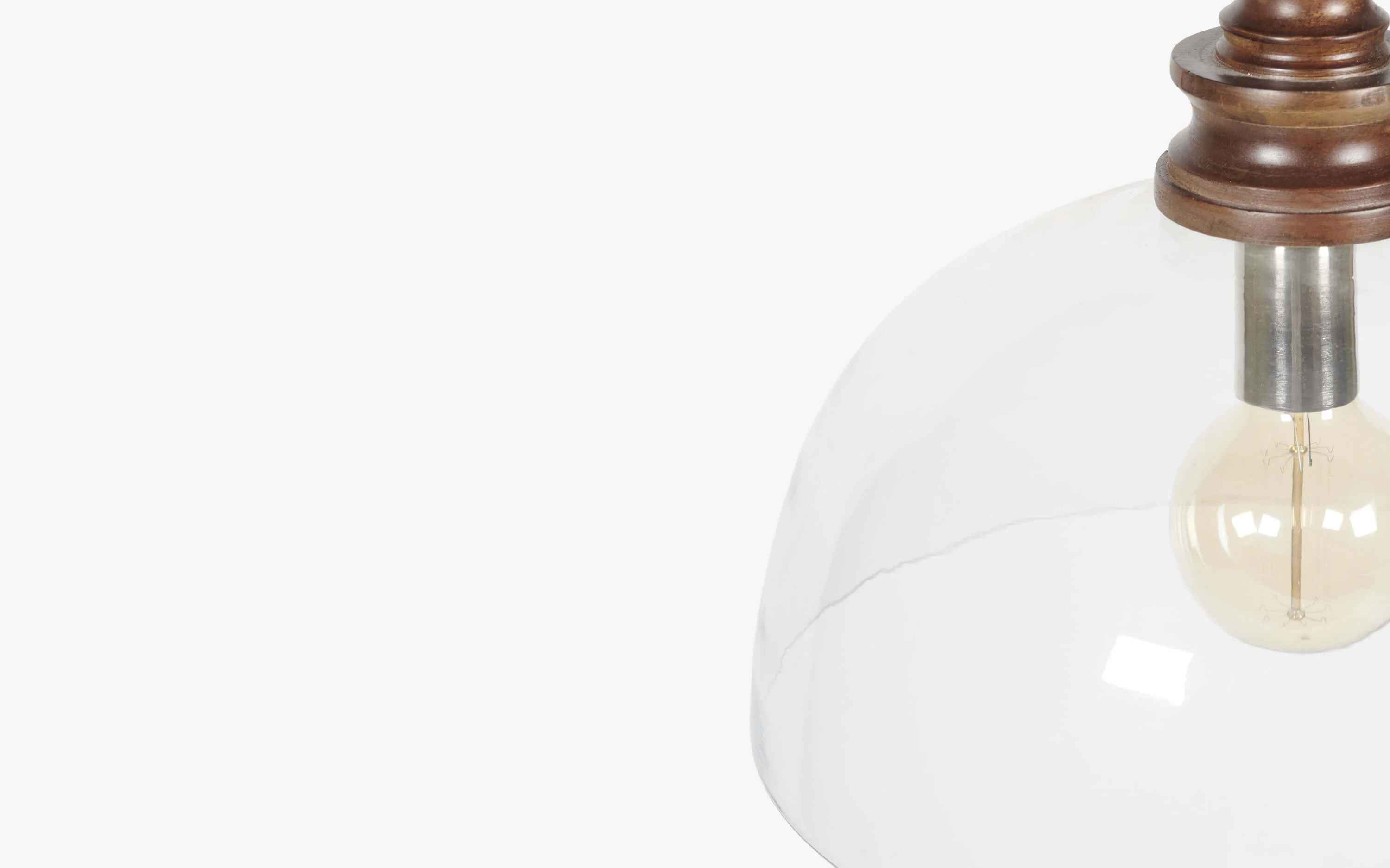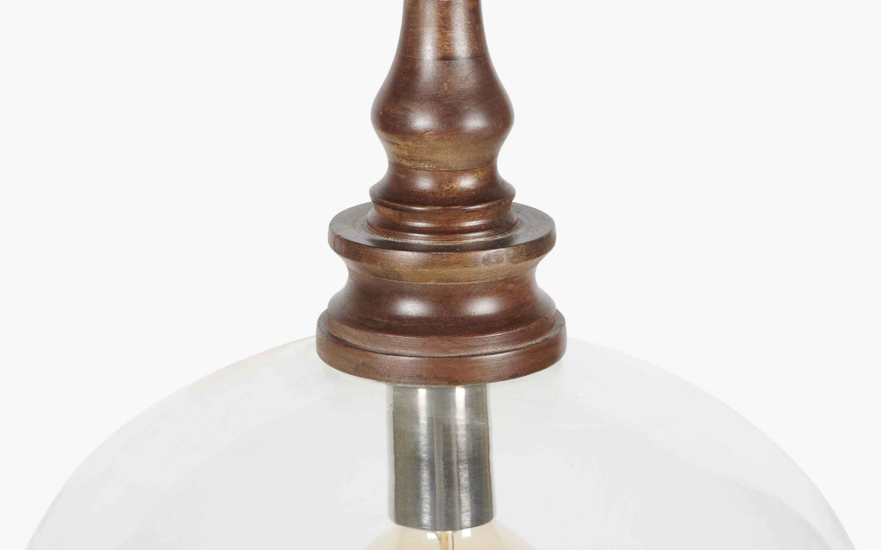 Modern yet timeless glass lamps, our Kunshu collection takes inspiration from the intricately carved pillars and domes from the temples down south. With the ability to be unique but natural in any setting, the impressive turned-wood pieces adjoined with the glass frame make a classic combination. Giving it a lovely Wabi-Sabi angle of adapting vintage into your everyday life and loving it, the minimal fusion of glass with wood is perfect for highlighting nooks and corners. "Depending on your screen settings and resolution on your device there may be a slight variance in fabric color and wood polish of the image and actual product. Wood grains will vary from product to product in case of solid wood furniture."