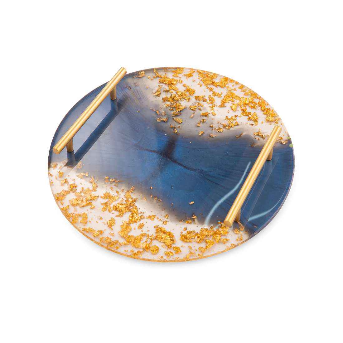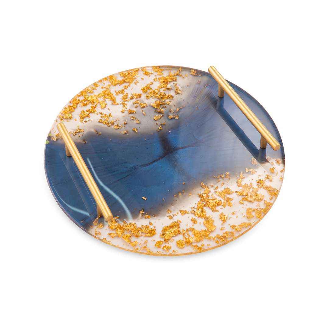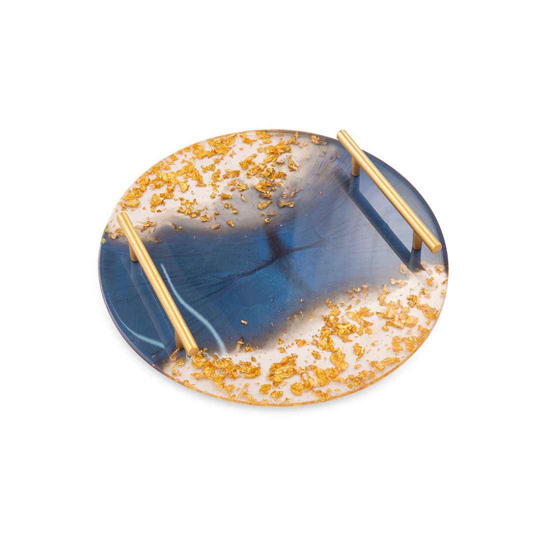 HN Hues Trays are made of Resin Epoxy, Pigment, gold flakes, Metallic gold sketch pen for the outline, made in resin moulds, Handcraft, 100% Waterproof and Washable, long-lasting and Durability, the bearing capacity of this Bowl is up to 10 kg. It comes with two attach stylish gold finish handles to carry the tray. It can be used for Dining & Serving or Even for storing personal items. Perfect for neatly arranging your jewellery, earrings, necklaces, bracelets, rings, brooches, pins, watches, makeup and more on your jewellery tray, can also be used as a dessert dish, fruit plate or snack tray.