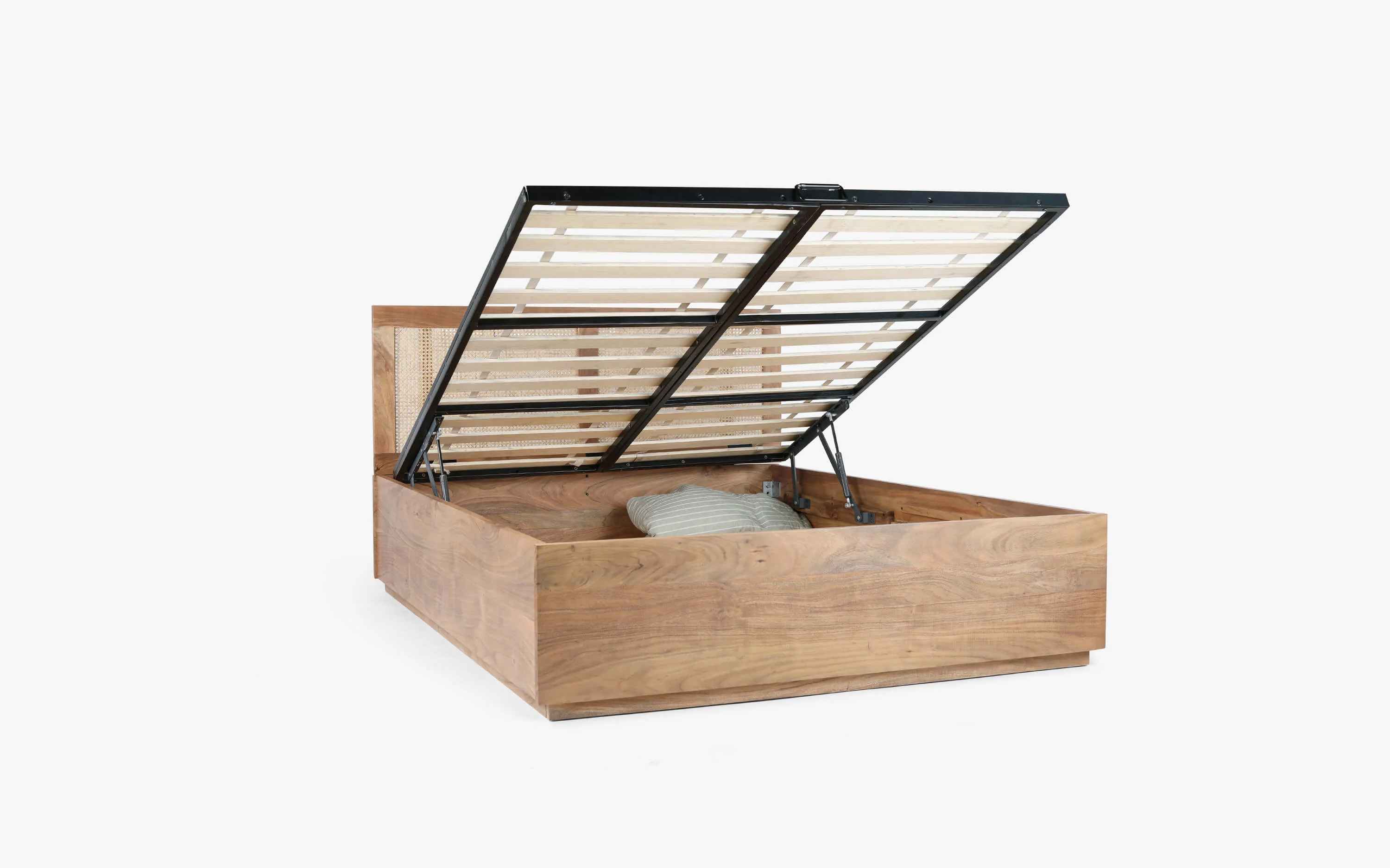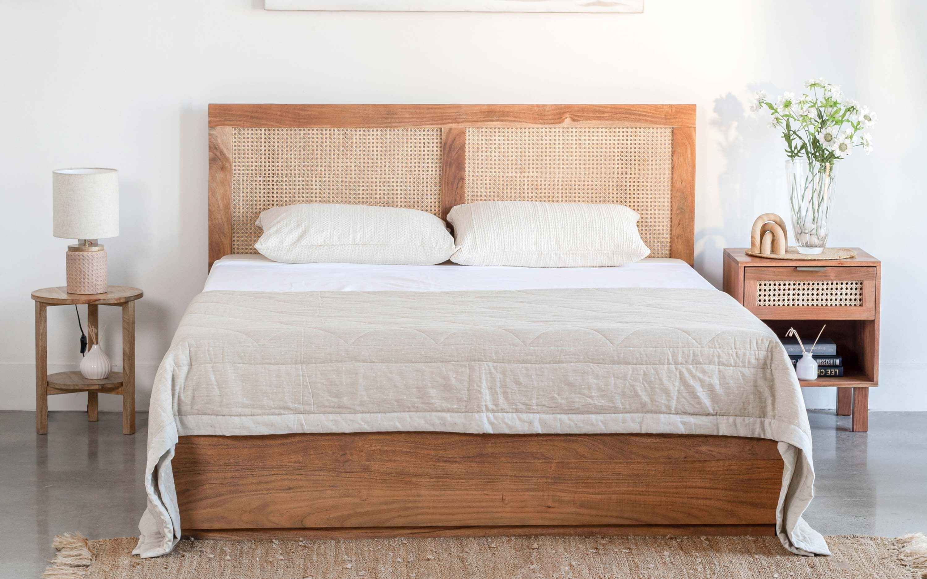 KYOTO a city in central Japan, a famous cultural center, known for its bamboo forests, inspired our collection which defines natural minimalism. Open, airy, and unabashedly out of the ordinary, our Kyoto collection takes the traditional mid-century pairing of cane and wood for a statement-making spin. Set within a linear frame of sustainably sourced Acacia, woven cane shapes the frames in a natural finish. No harmful chemicals or toxins are used in our furniture. Natural eco-friendly lacquers are used that helps in sustaining a healthy lifestyle. The headboard of this collection is interchangeable and can be replaced with other headboards we offer. Easy to assemble. "Depending on your screen settings and resolution on your device there may be a slight variance in fabric color and wood polish of the image and actual product. Wood grains will vary from product to product in case of solid wood furniture."