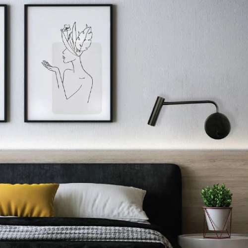 A Matte Largo Black finish decorates the metal design of this swing arm Largo - Black wall lamp, for a beautiful personality. The cylinder down shade stands out with refined elegance in any setting. The shade conveniently adjusts from all angles, and the arm can be adjusted left and right to direct light to the area desired.
