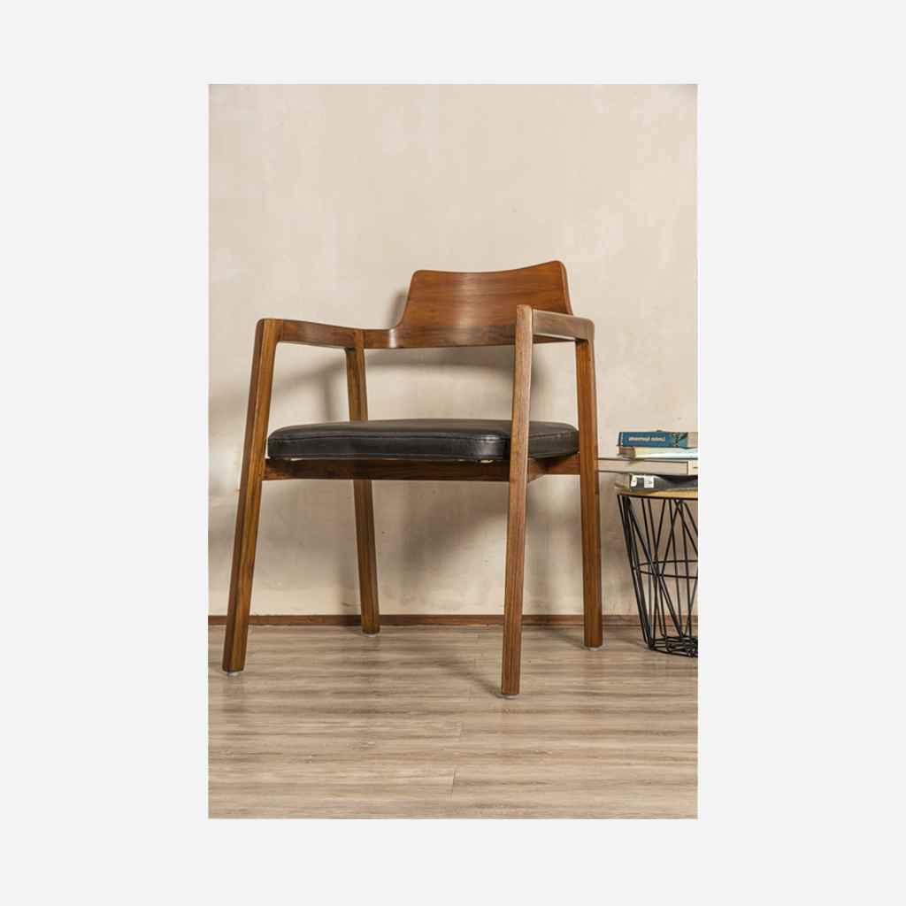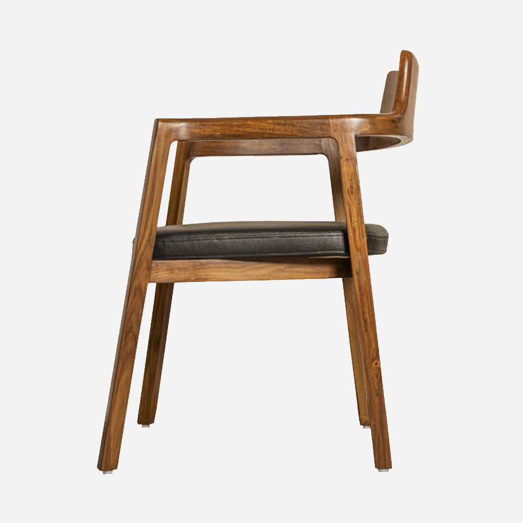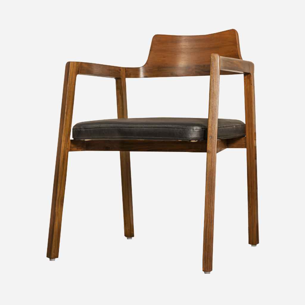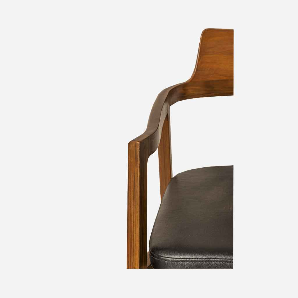 Styled after the reigning tastes of the mid-1900s, our Lilian Mid-Century Modern Dining Chair embodies the era with Elegance and unparalleled craftsmanship. The continuous line that moves from the front leg to the arm and from the armrest to the curved back, Lilian is designed for maximum comfort. Handcrafted with a wooden frame, PU finish, and black faux leather seat, this perfect piece makes for a handsome, easy addition to a dining area. Natural materials used for the construction of our furnishings will have variations in areas such as (but not limited to) color, pattern, grain, and texture. Please check with us for pricing of larger quantities.