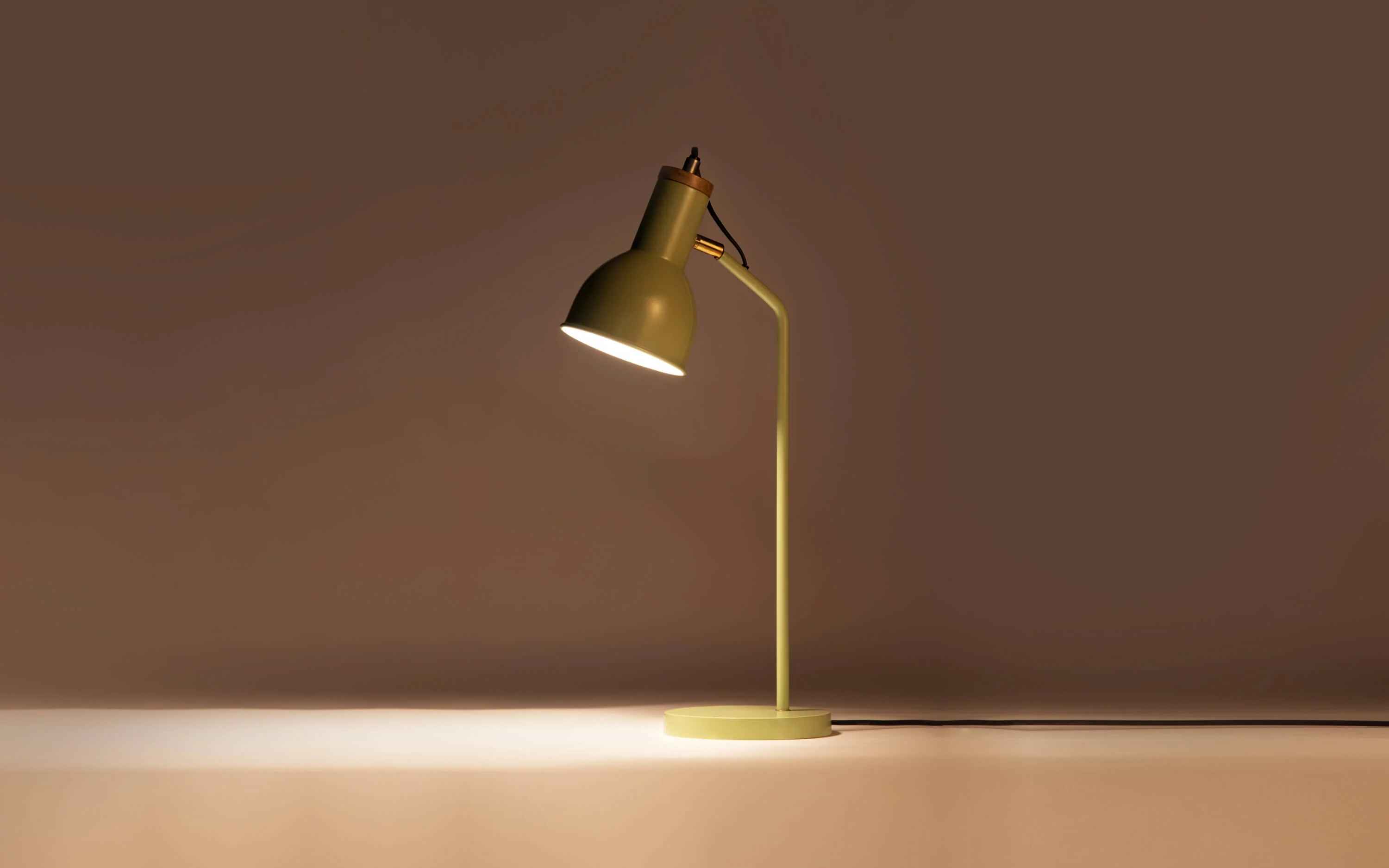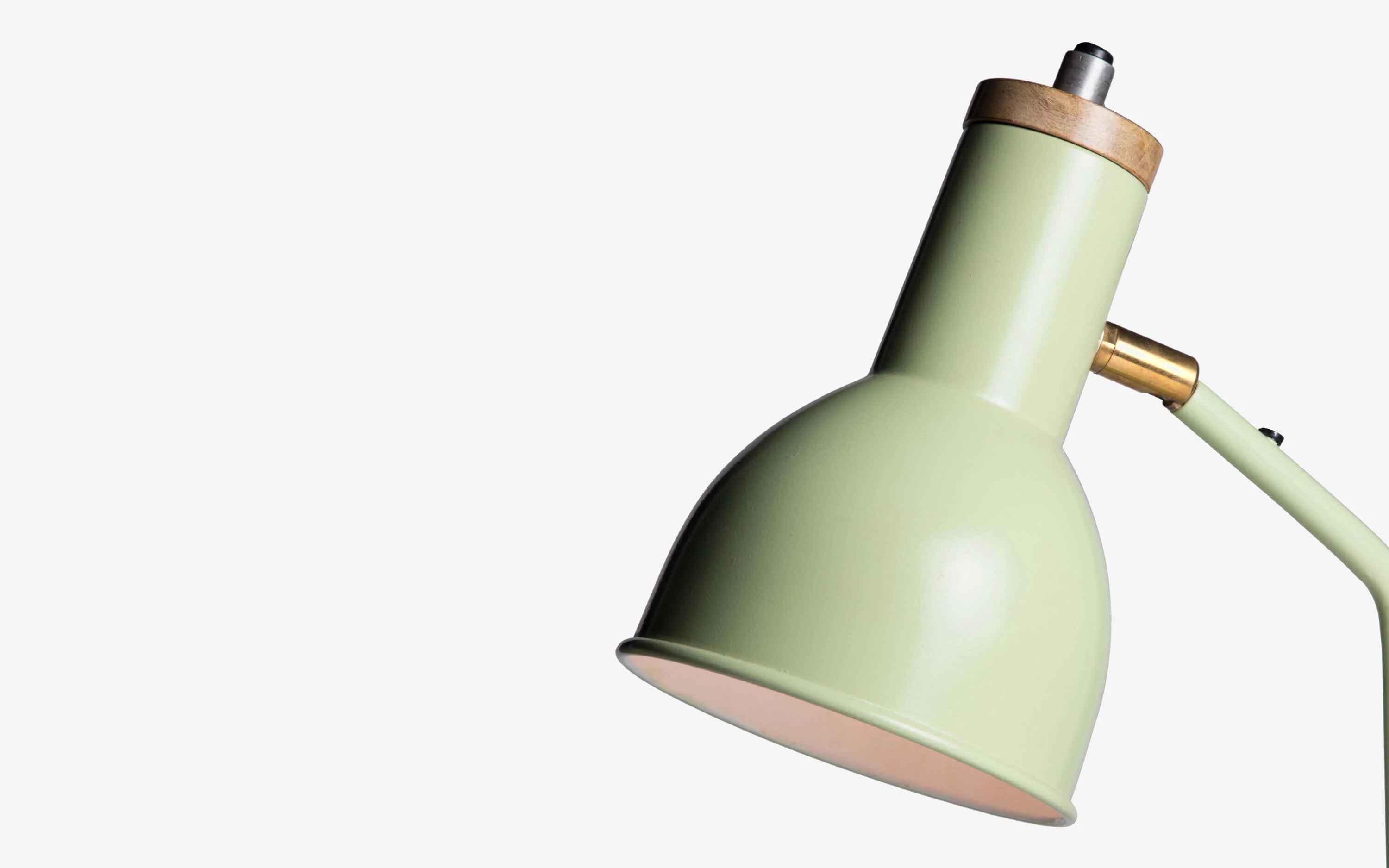 Lisa task lighting is sleek mint green-finished structure that directs light where it's needed thanks to its pivoting shade.