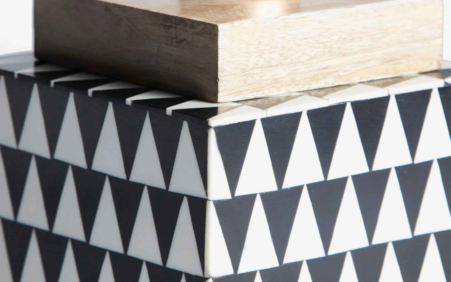 Inspired from the triangular tessellations on the façade of Esplanade, Singapore, the array of triangles forms the base of the Loko collection. The pattern looks beautiful from all angles and are done in White and Black resin to highlight the contrast. Pair it with the matching hanging lamps and table lamps for a coordinated look. "Depending on your screen settings and resolution on your device there may be a slight variance in fabric color and wood polish of the image and actual product. Wood grains will vary from product to product in case of solid wood furniture."